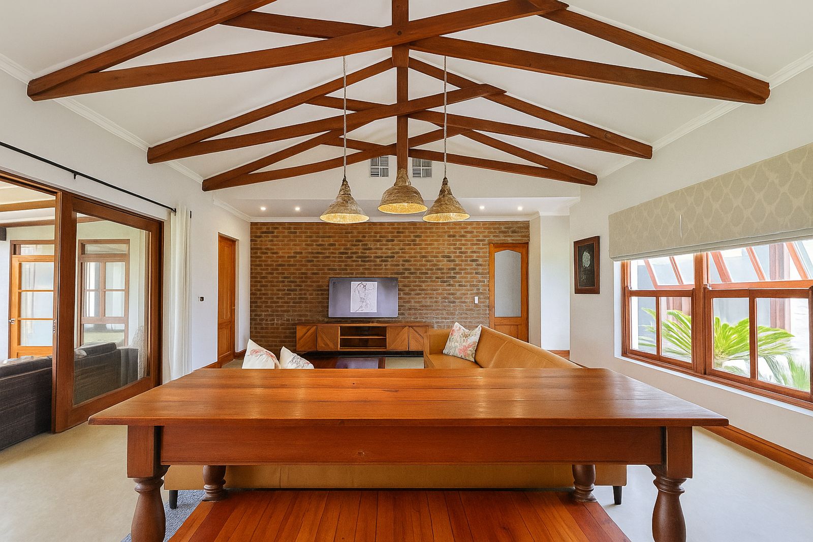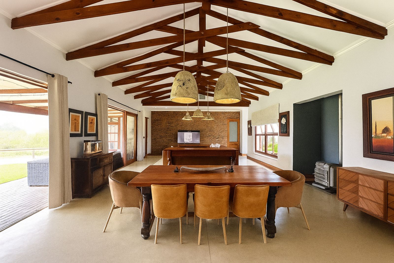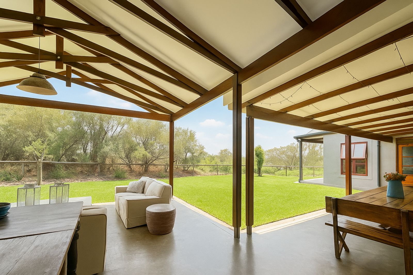Sustainability is at the heart of this home, with a 5kVA Victron inverter, 12 solar panels, a 10kWh backup battery, and three gas geysers ensuring energy efficiency. There is 30,000 litres of rainwater storage and automated irrigation for the lawns and garden. BreezeAir cooling and a Becker anthracite fireplace provide year-round comfort.