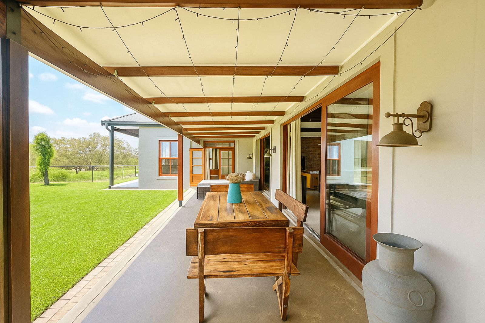 This contemporary home in Monaghan Farm blends clean modern design with the calm of country living. Thoughtfully designed around a private, grassed courtyard, it offers seamless indoor-outdoor flow, abundant natural light, and secure space for children and pets.