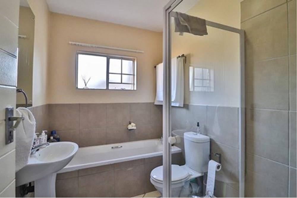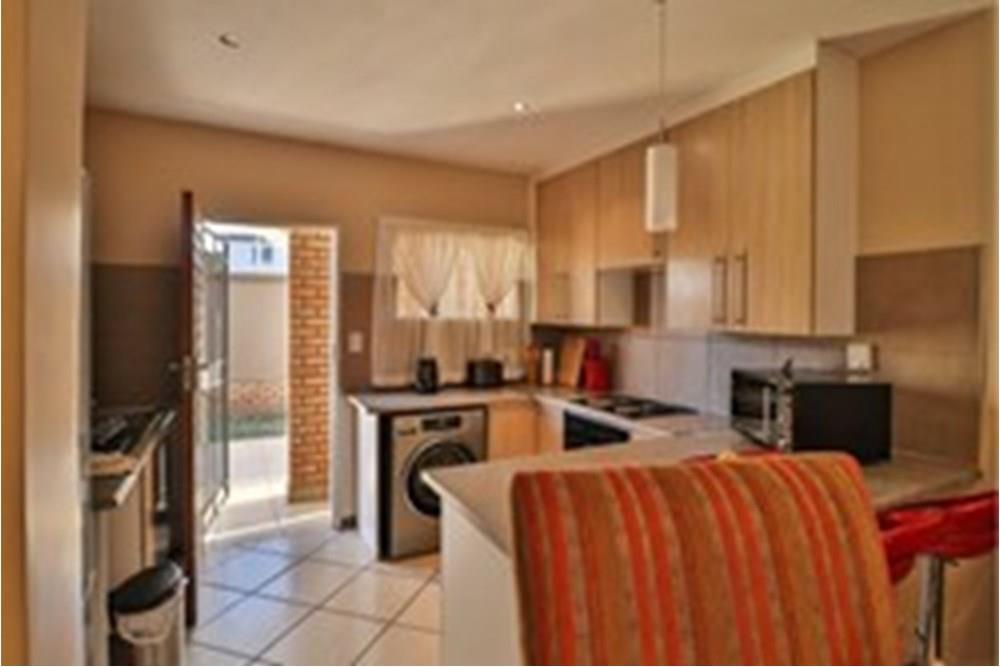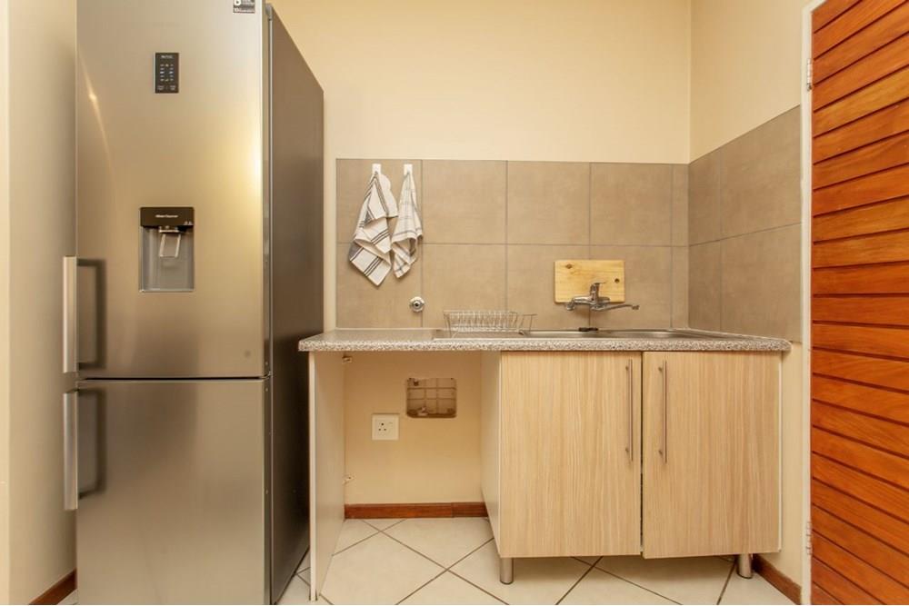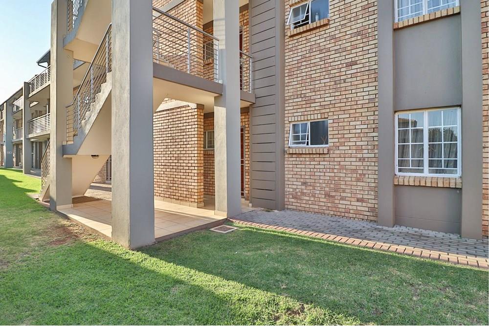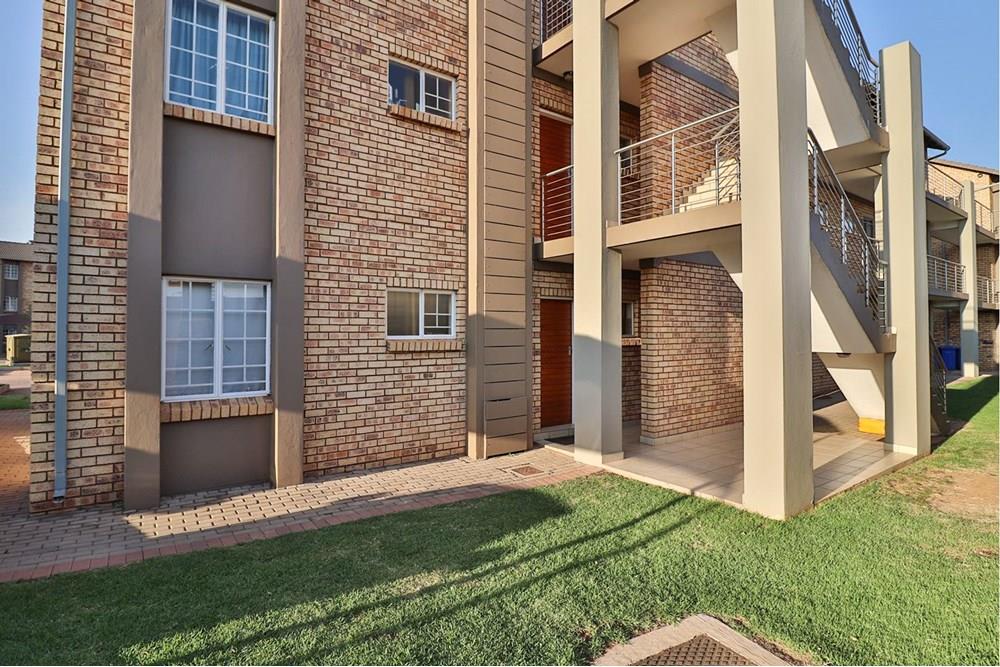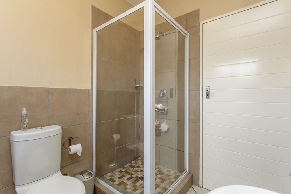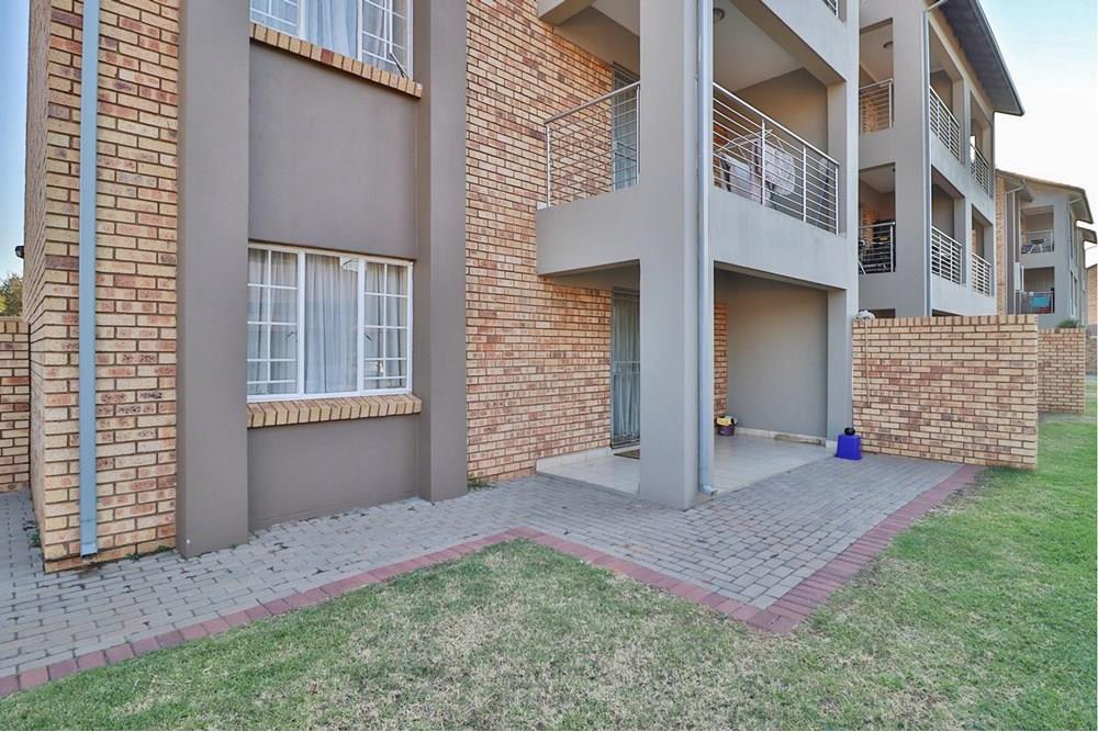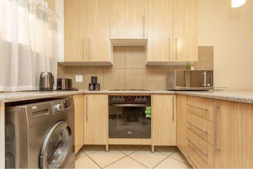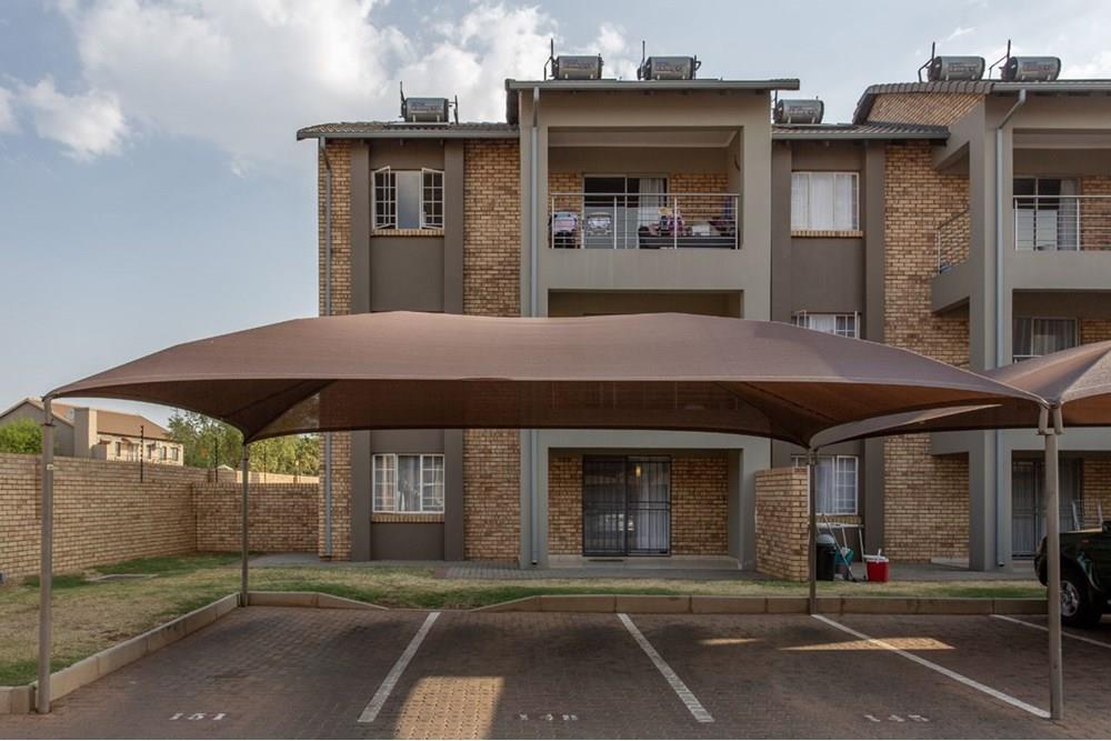 Modern Apartment with quality finishes, located in a complex within a security estate surrounded by friendly neighbors. Well-designed open plan kitchen with space for washing machine and dishwasher. The dining room and lounge lead out through glass sliding doors onto a covered patio and a communal garden ideal for outside entertainment on warm summer evenings. Both bedrooms are fitted with stylish built-in cupboards. One spacious full bathroom allows space for an additional cabinet and towel racks. The solar geyser saves electricity and supplies warm water despite load shedding. DSTV connection point conveniently installed. One covered carport per unit and ample open visitor parking. Enjoy walks and picnics with your children at the communal park. Sleep soundly with 24/7 manned security onsite.