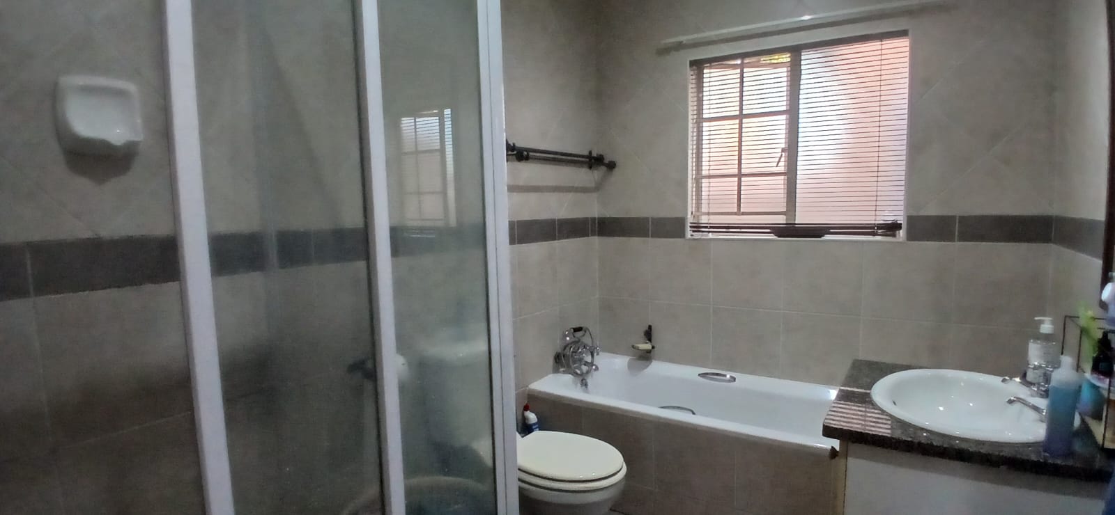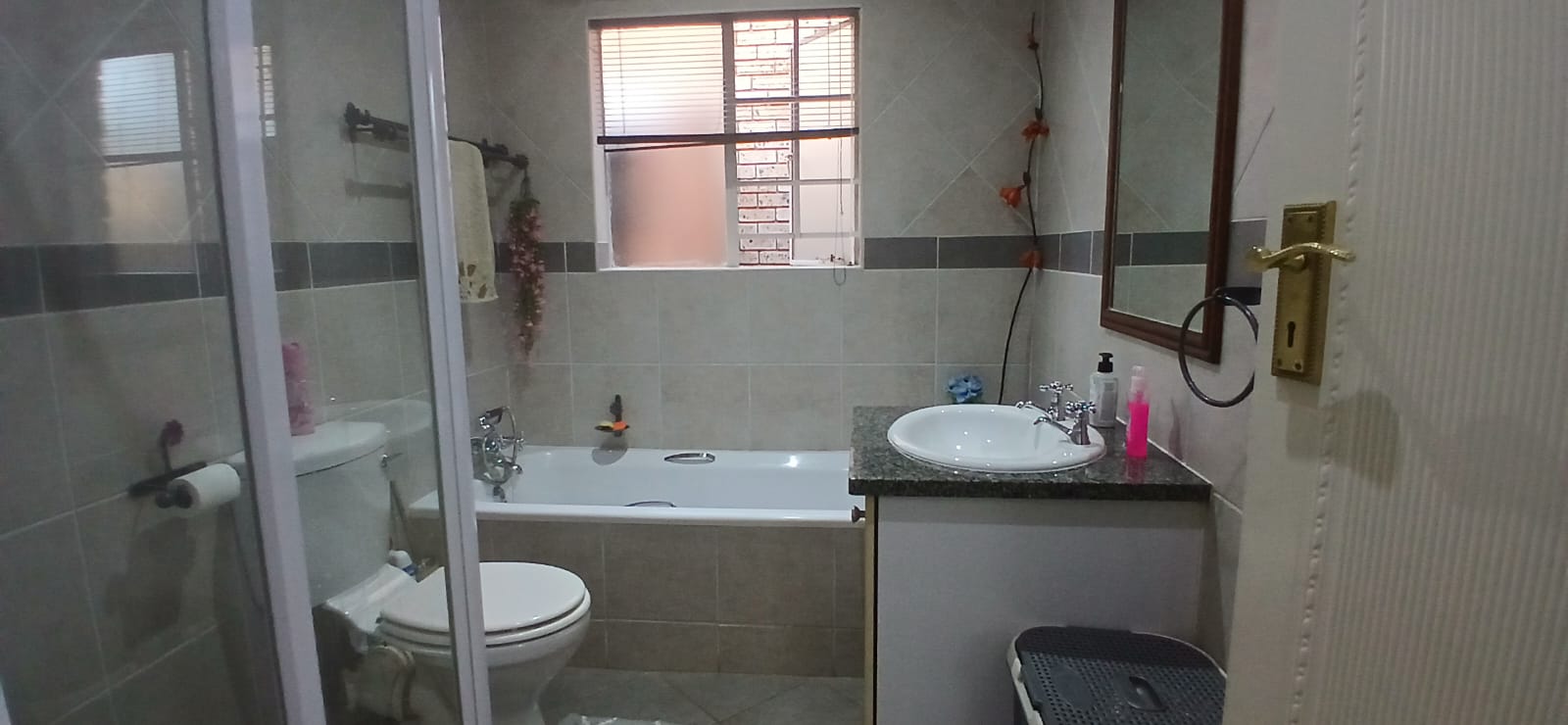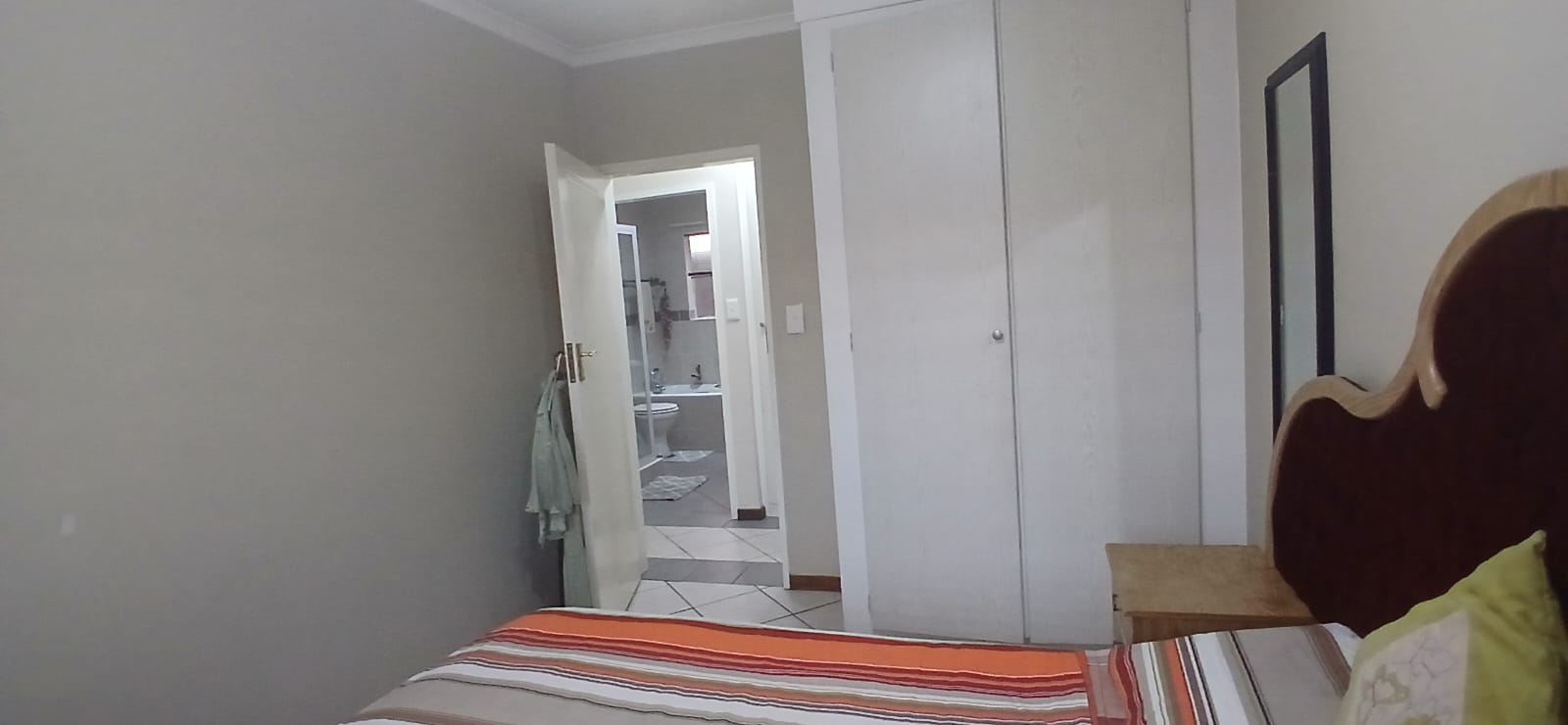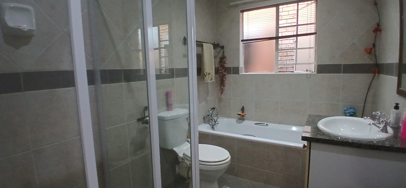 Nestled in a secure complex, this residence features two generously sized bedrooms with built-in cupboards, providing ample storage. Enjoy the convenience of two bathrooms, including a master en suite with a shower and a second bathroom, equipped with a relaxing bathtub and shower.