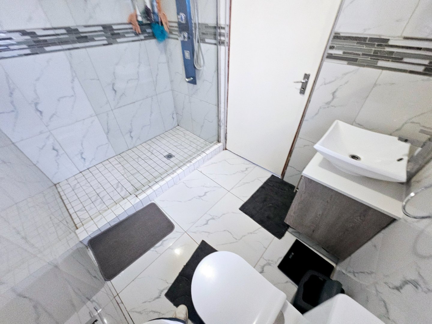 Walk in Shower Toilet and basin