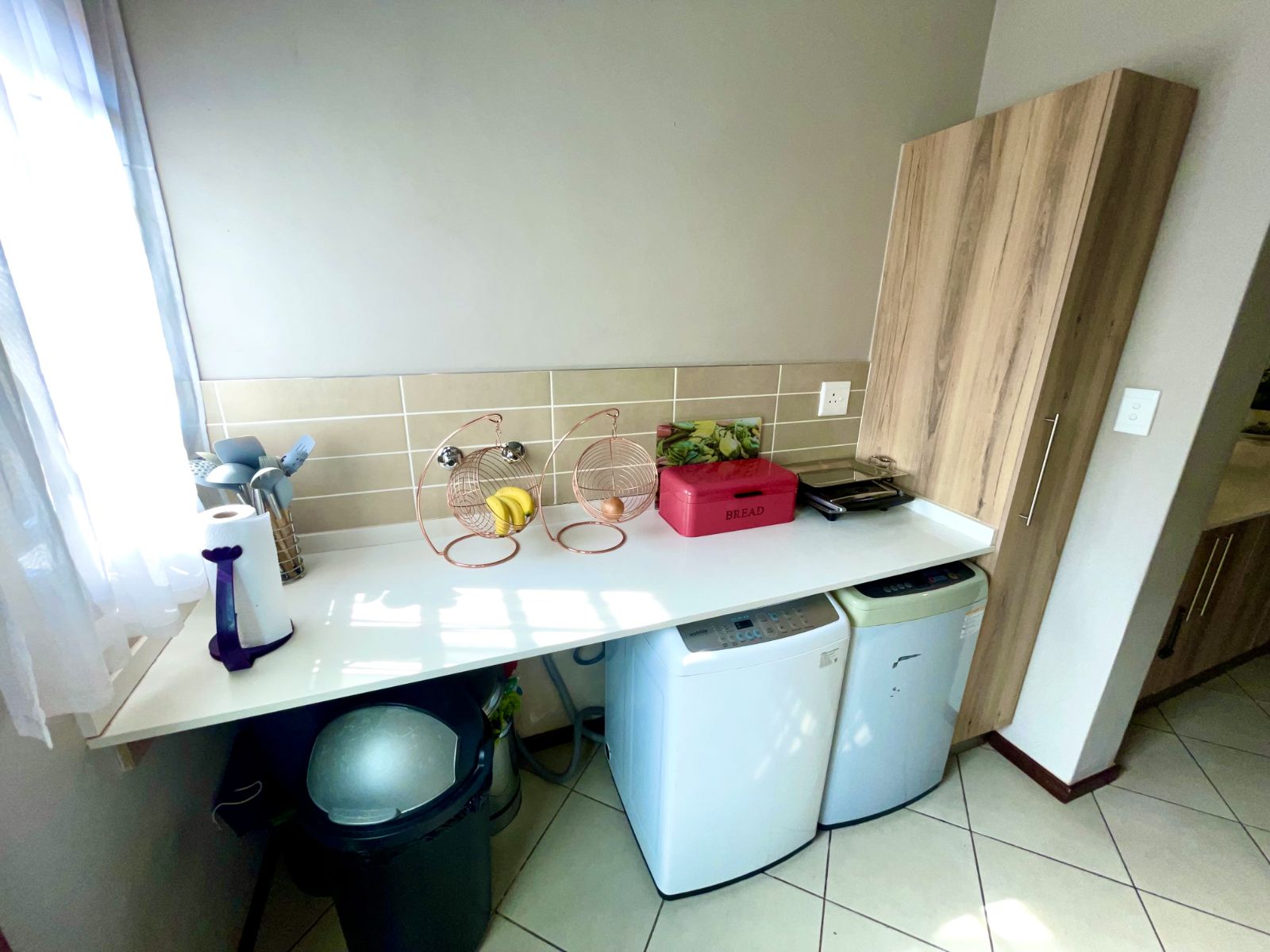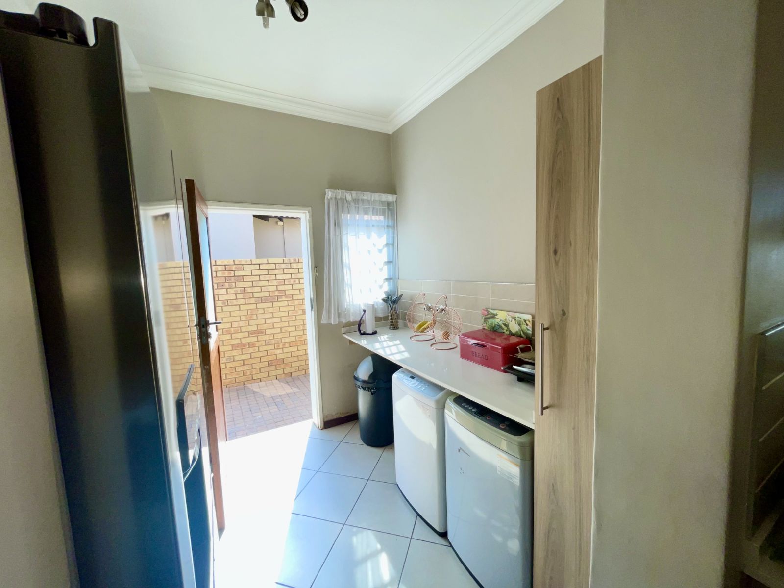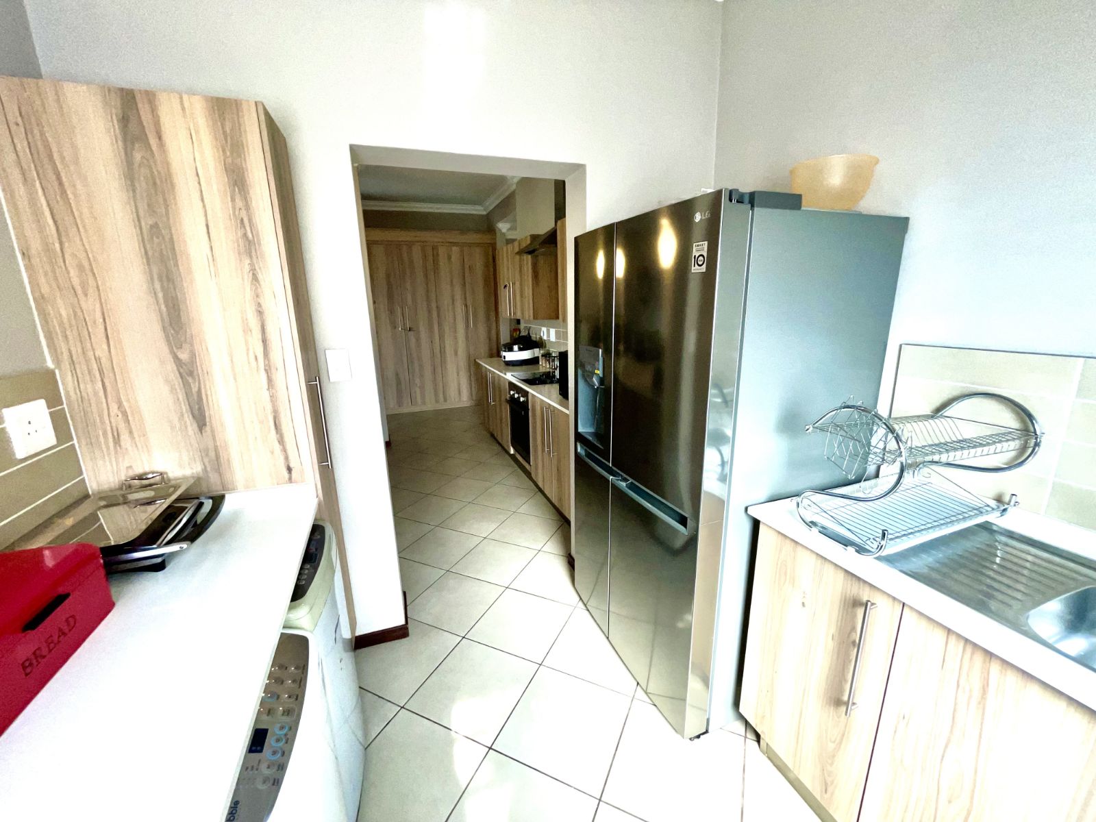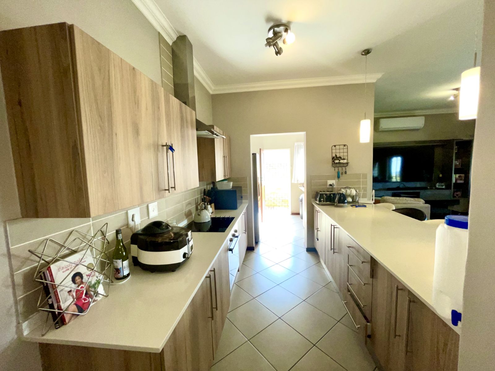 This well-designed residence offers three spacious bedrooms and two beautifully finished full bathrooms. The open-plan kitchen is both practical and contemporary, featuring a separate scullery with space for a double-door refrigerator and three undercover appliances—keeping the main kitchen neat and uncluttered.