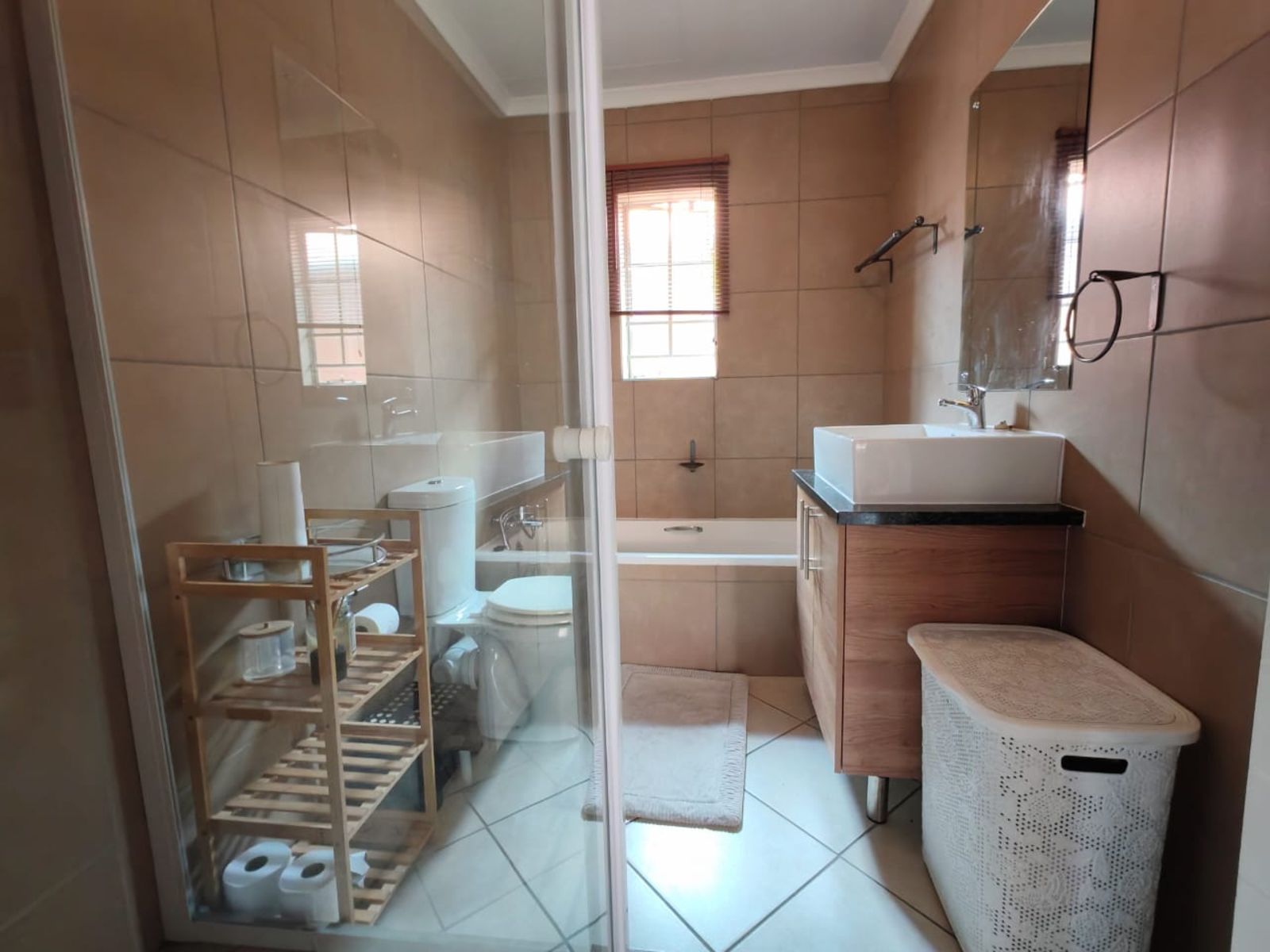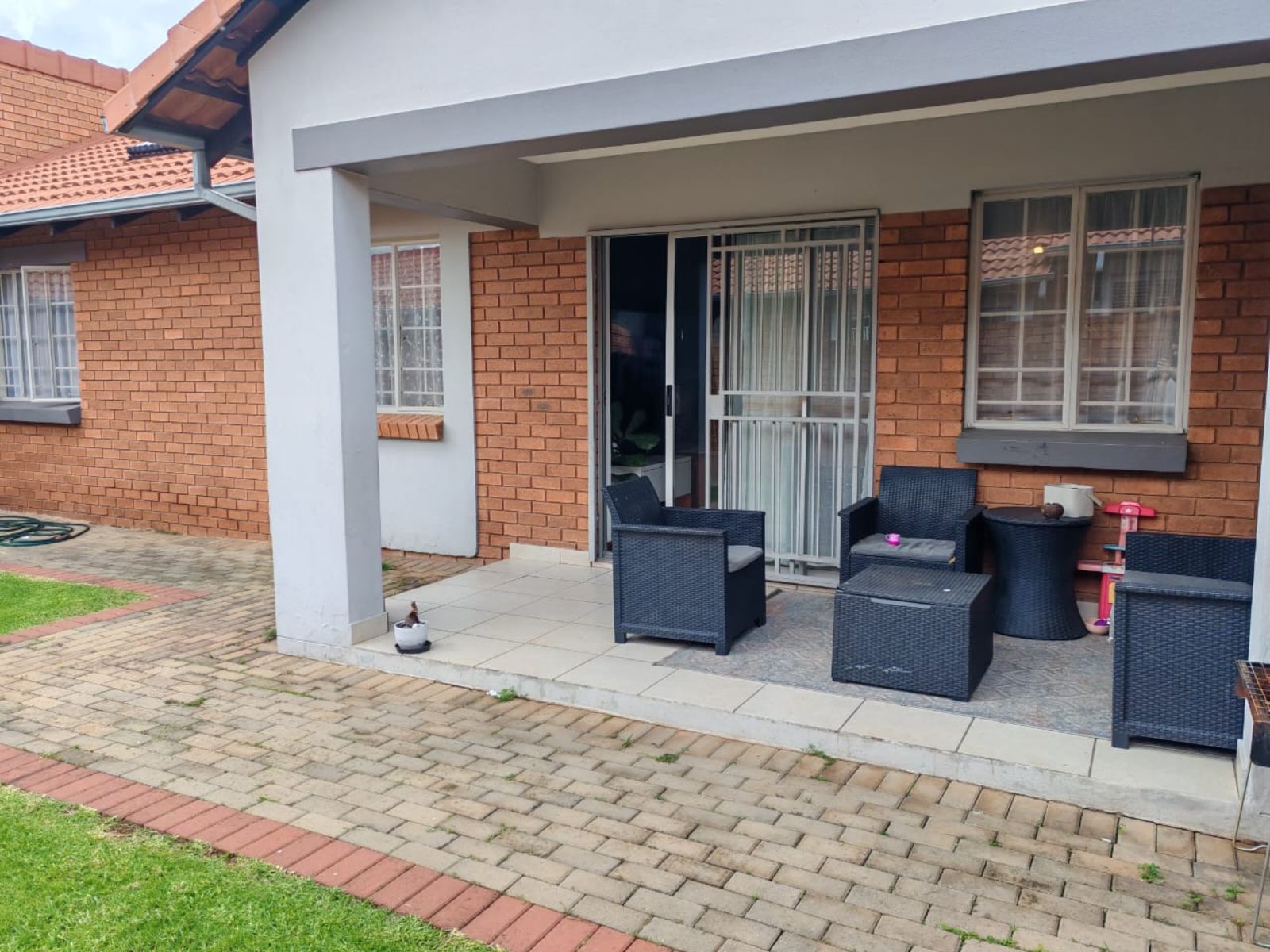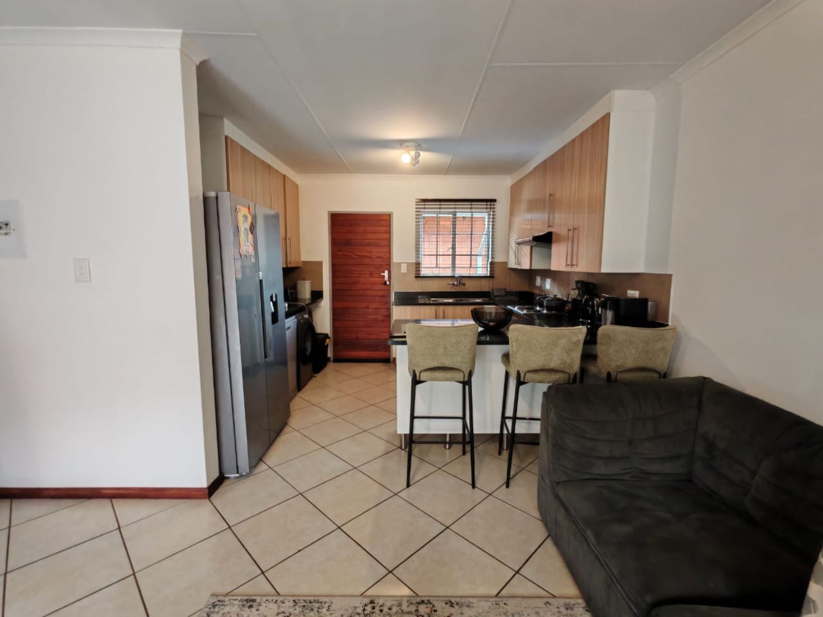 This modern and neat townhouse if now on the market. Situated within a gated security estate with 24 hour security. When entering the unit you are welcomed with open plan kitchen, space for two appliances and double fridge. Built in cupboards, granite tops and breakfast nook. Open plan living area leading onto the covered patio. Garden with garden services.