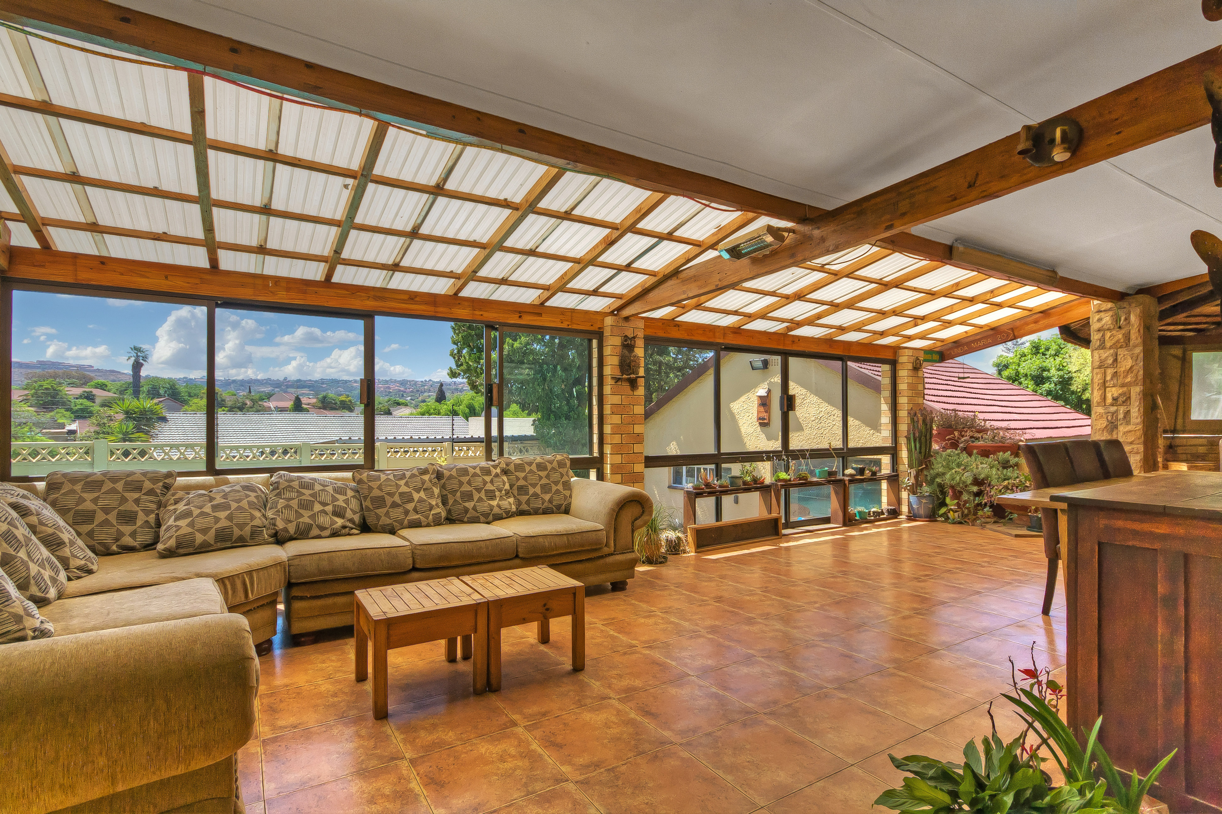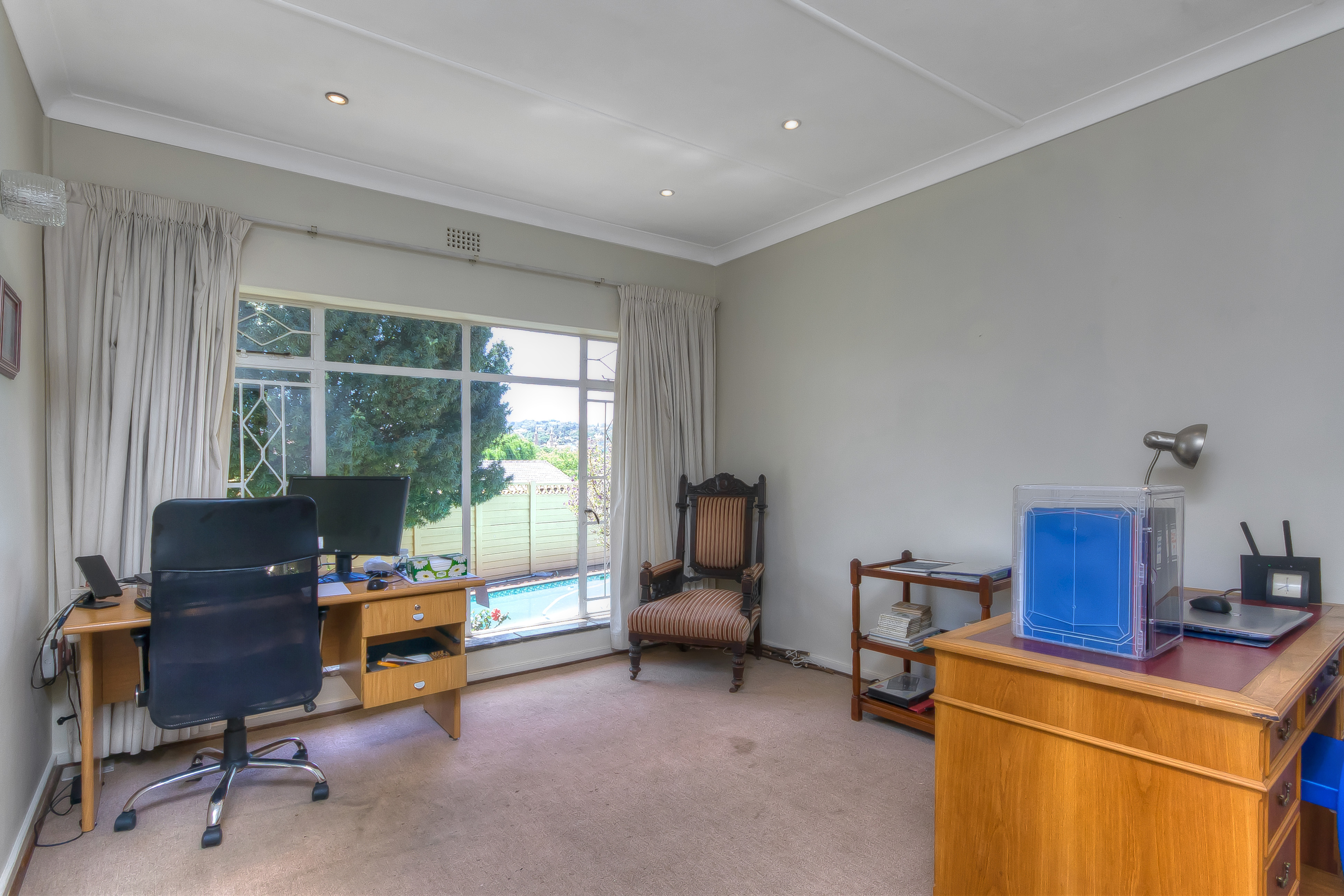 Neat as a pin. This lovely well maintained property is set in the heart of Mondeor. A Large Comfy lounge with a modern wood burner fireplace welcome you. This spacious Formal lounge leading out onto a sunshiny covered veranda. The veranda is enclosed with a built -in gas braai Ideal for all seasons entertainment and family living. Bright spacious dining room flows through to the lounge, ideal for big gatherings. Light and Bright kitchen with a pantry and separate scullery perfect for all the appliances. Plenty of cupboards with loads of convenient work areas. Three Large north facing (queen size) bedroom with BIC. Main bedroom en suite Modern bathroom with 8 BIC with mirror sliding doors. 2nd Bathroom has toilet separate. 2nd Private entrance off the main entrance to the house is a Study which can be perfect for work from home or can be used as a 2nd TV lounge. Ample Buildt in cupboards throughtout the house for extra comford for storage. There are Double garages with automated garage doors and a sliding door that goes through to the garden. Swimming pool. Solar Geyer and a rental solar system 8 Solar panels 2 batteries with a invertor. Alarm system CCTV and security beams around the property. Domestic room with a toilet and shower- potential garden cottage. Close to shopping centres to a large choice of Primary and Highschools and places of worship. Walking distance from The famous Klipriviersberg nature Reserve.
