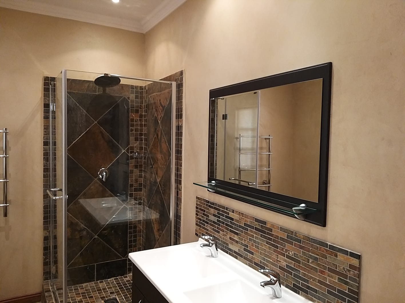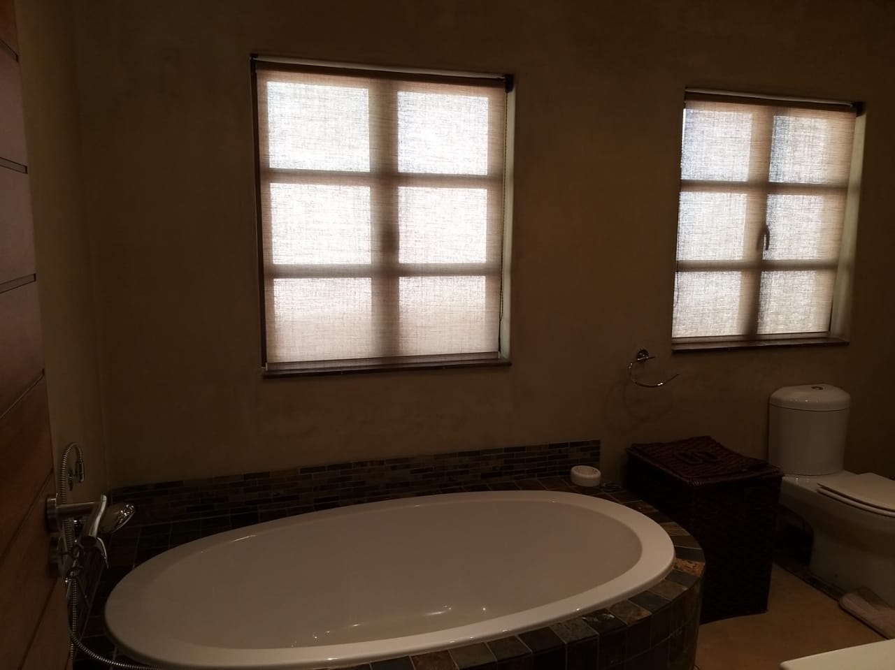 Unsuited with a vintage shower and guest bedroom has a bathtub.