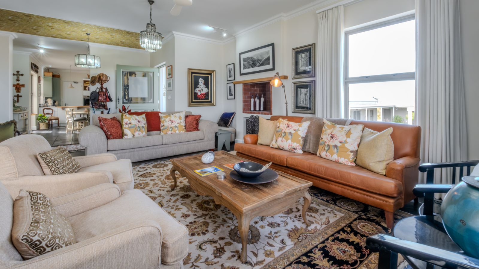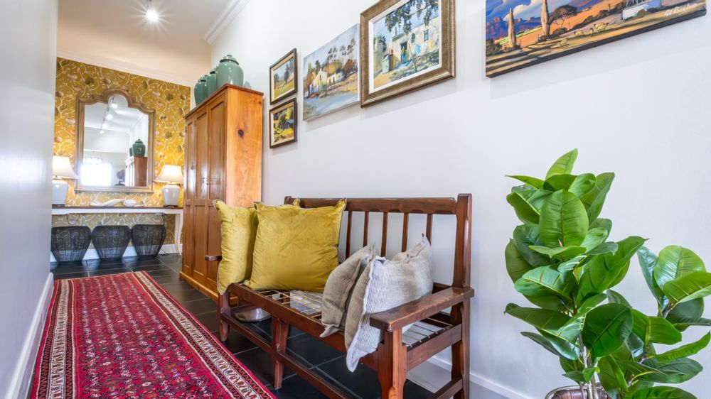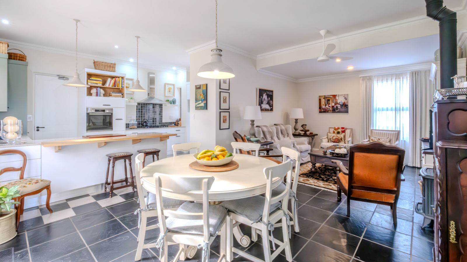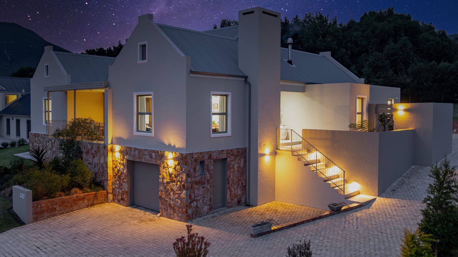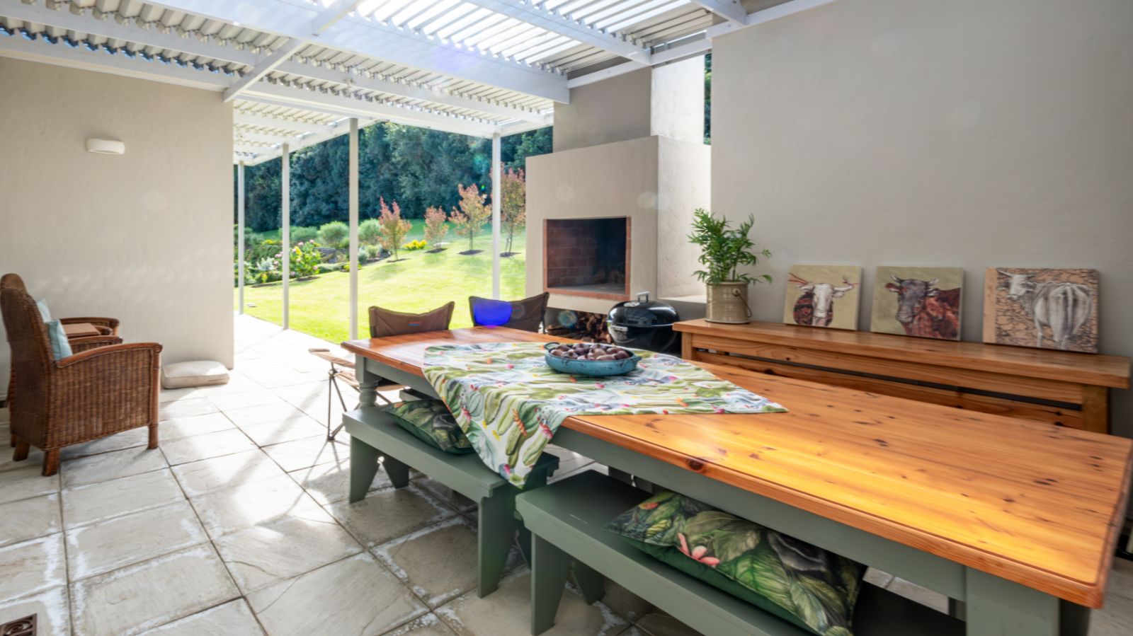 Ideal for families or remote professionals, the home features a flexible layout with 3 bedrooms, including a dedicated office/guest room and a charming hobby space with private garden access. 2 Full Bathrooms with 1 Guest Toilet. The open-plan living area, complete with wood-burning fireplace and built-in braai, flows seamlessly onto a covered patio where mountain vistas steal the show.