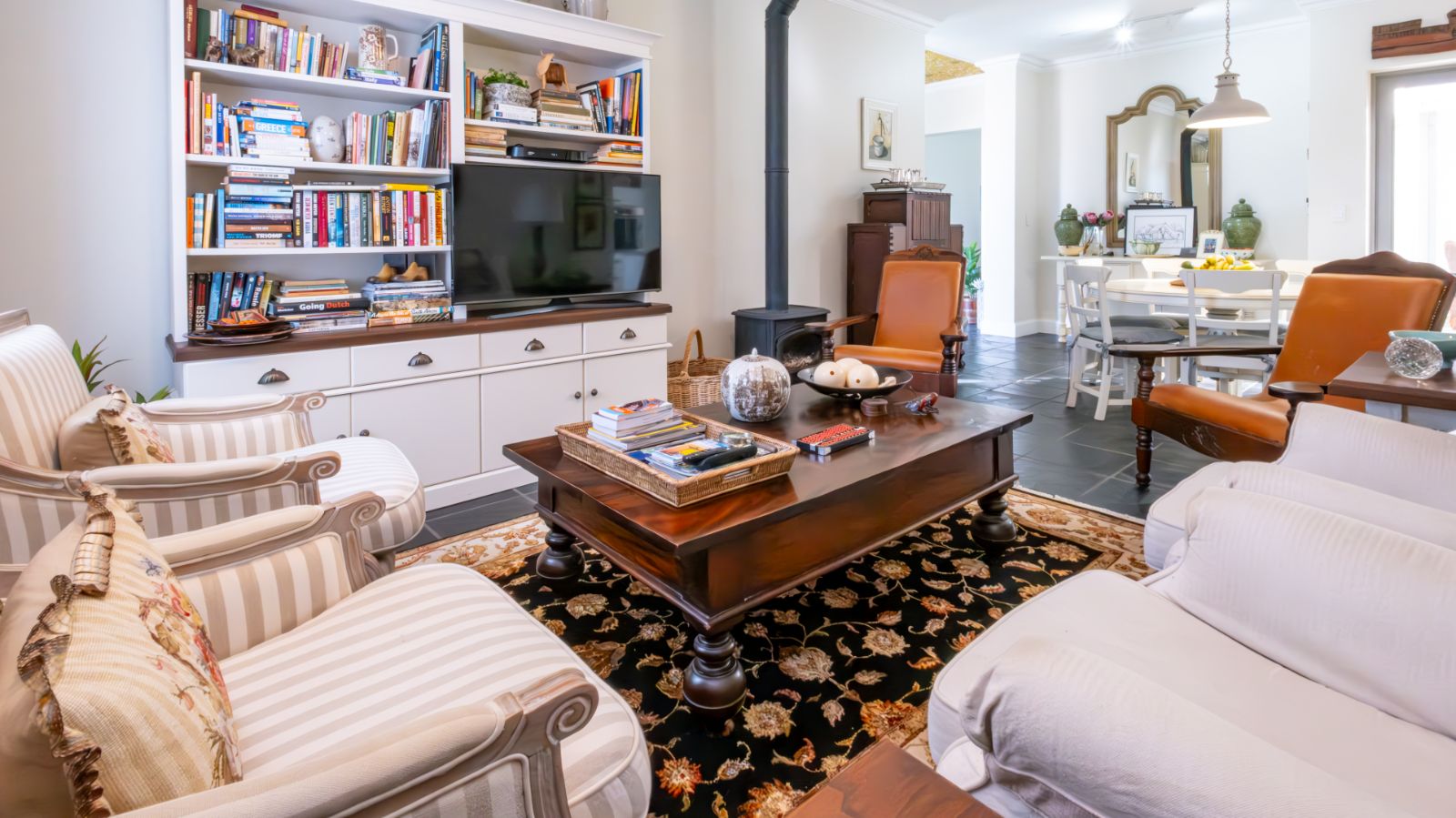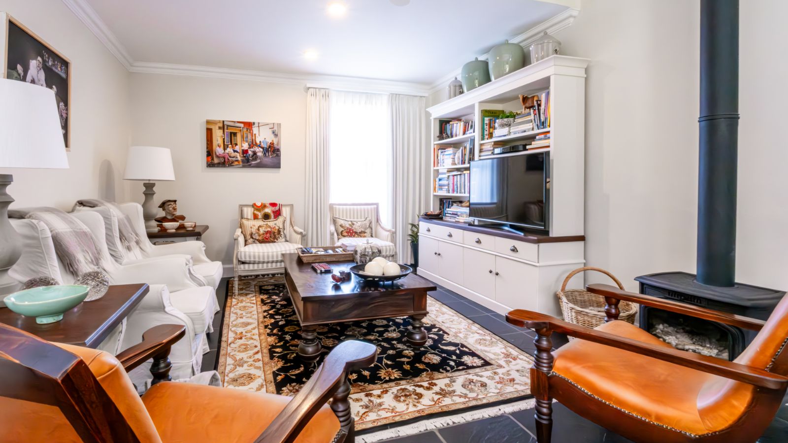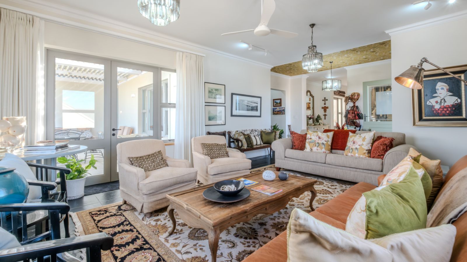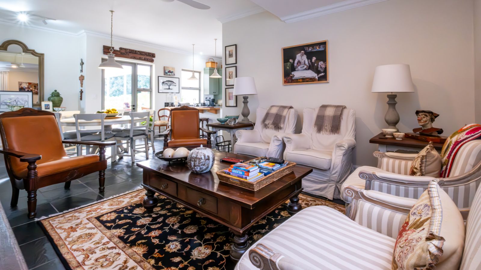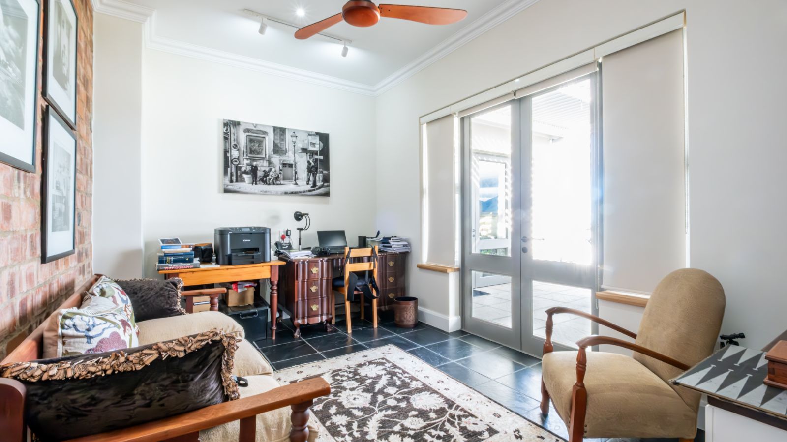 Ideal for families or remote professionals, the home features a flexible layout with 3 bedrooms, including a dedicated office/guest room and a charming hobby space with private garden access. 2 Full Bathrooms with 1 Guest Toilet. The open-plan living area, complete with wood-burning fireplace and built-in braai, flows seamlessly onto a covered patio where mountain vistas steal the show.
