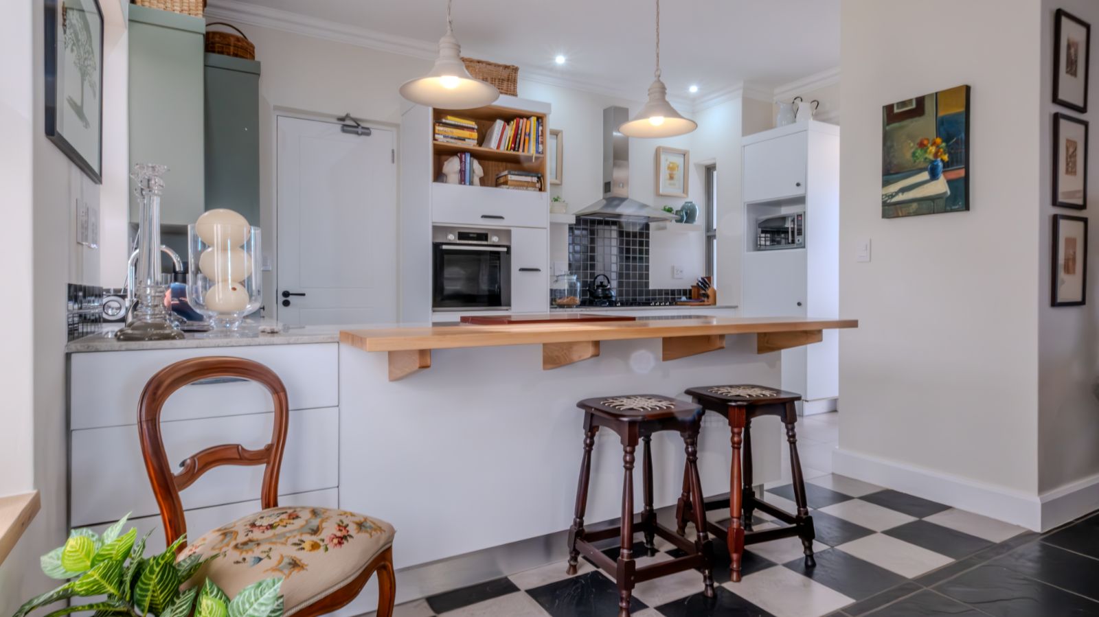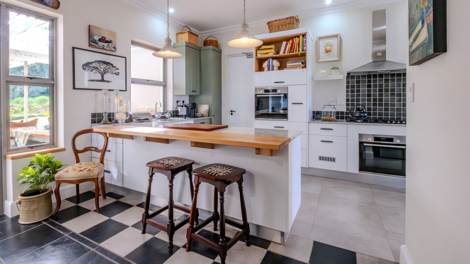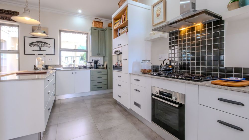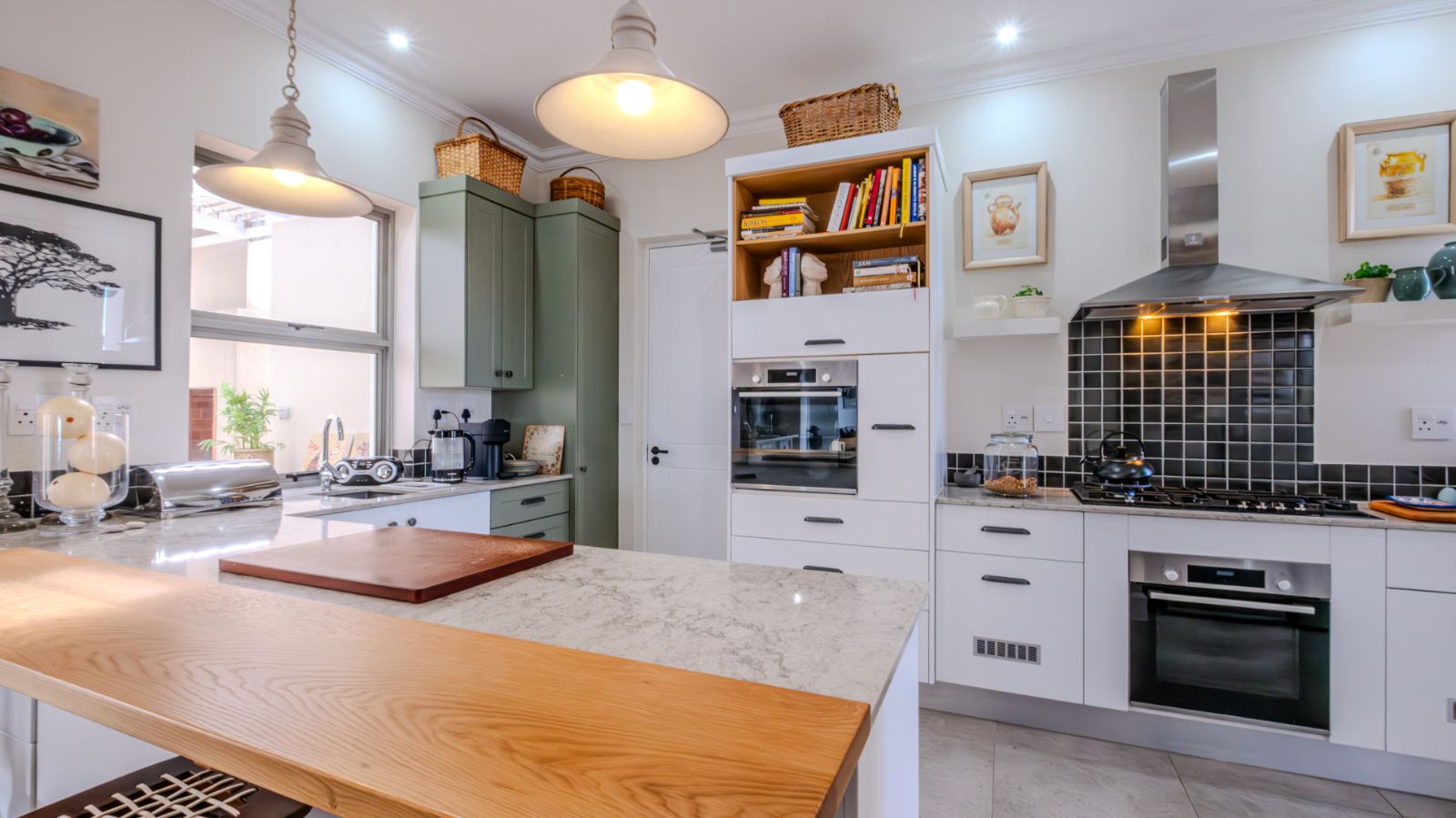 The kitchen is both functional and beautiful, with premium finishes, a scullery, and easy access to a second outdoor braai area – perfect for relaxed entertaining in any season. Real wood floors add warmth, while extras like a separate laundry, walk-in linen cupboard, and service yard ensure daily life runs smoothly.
