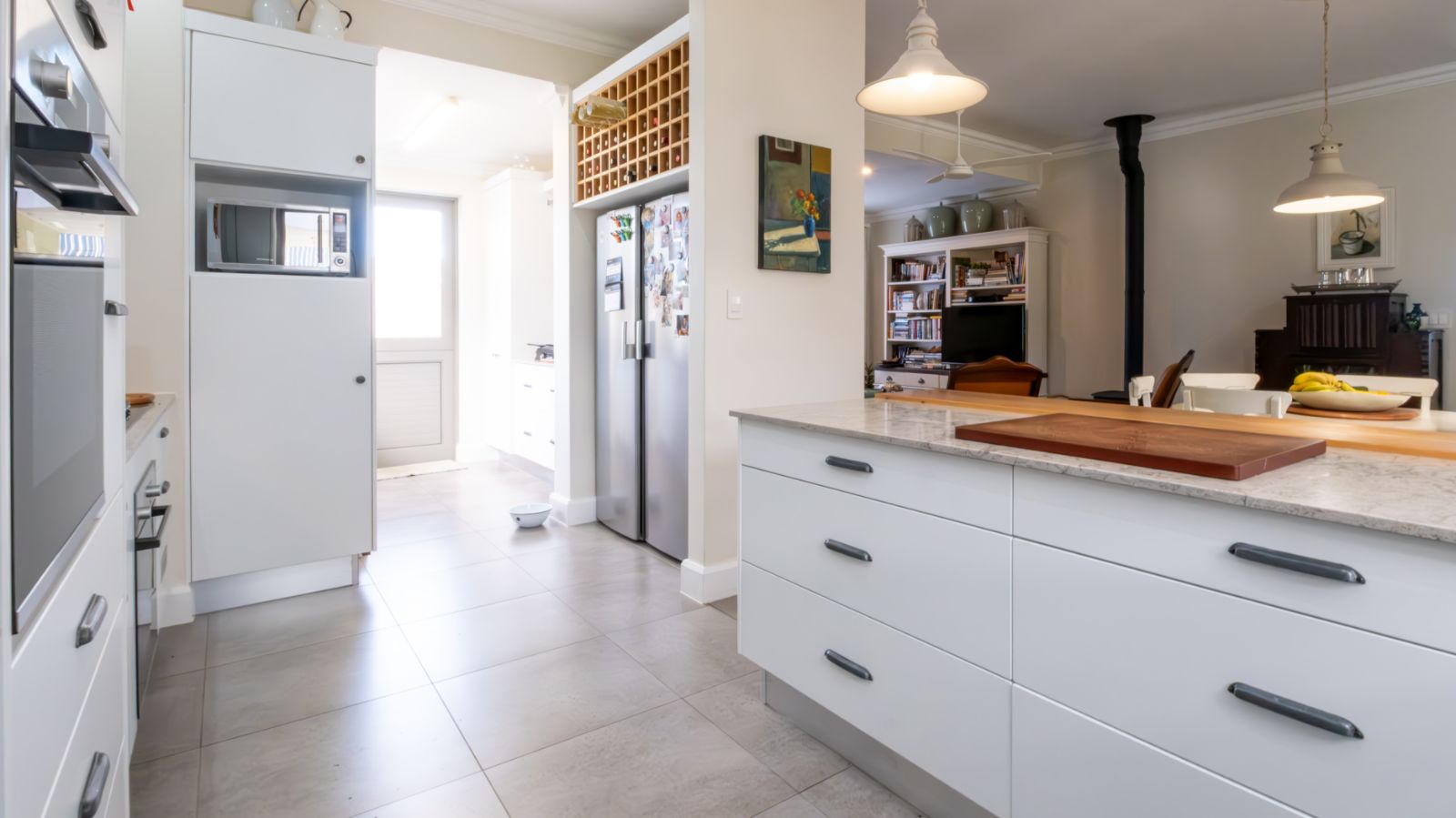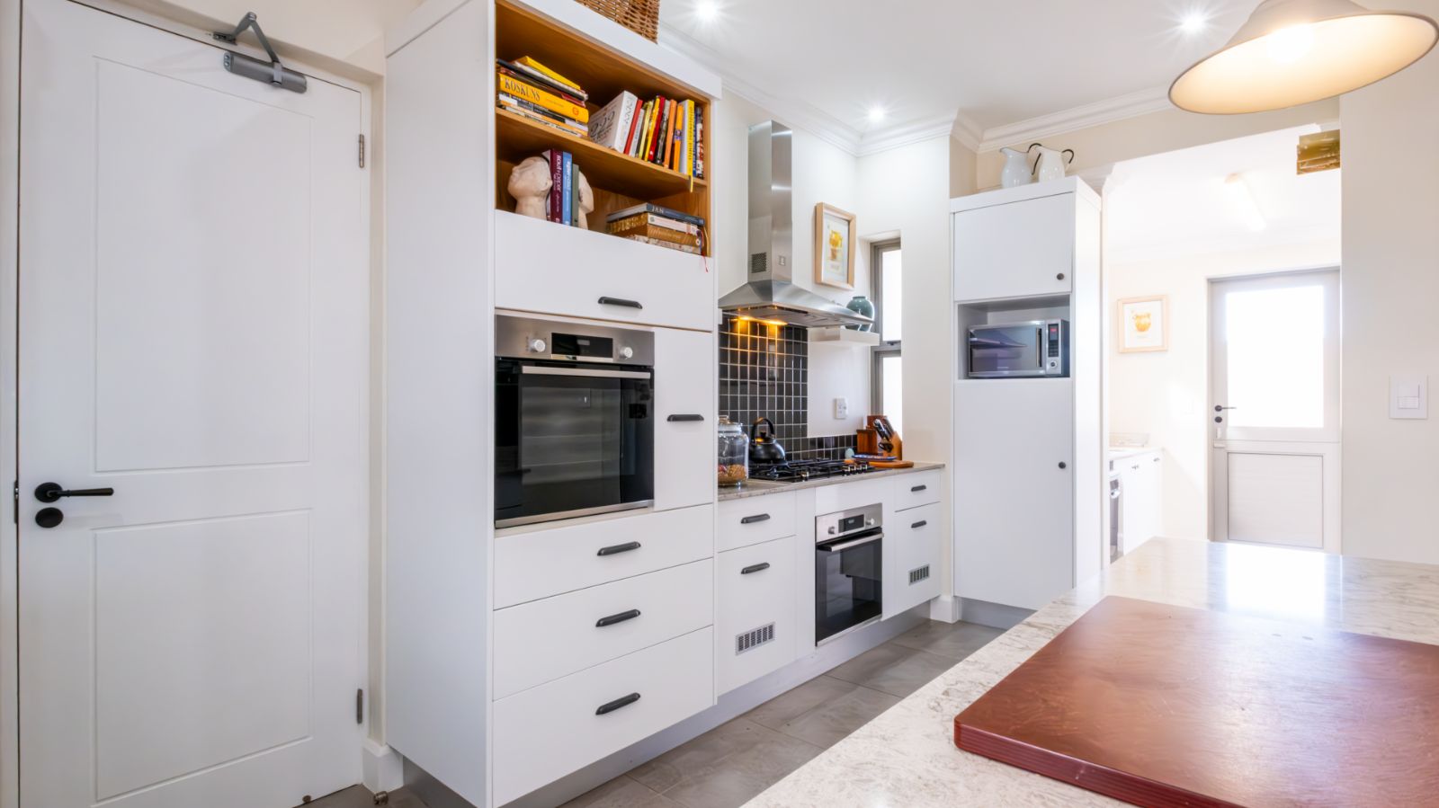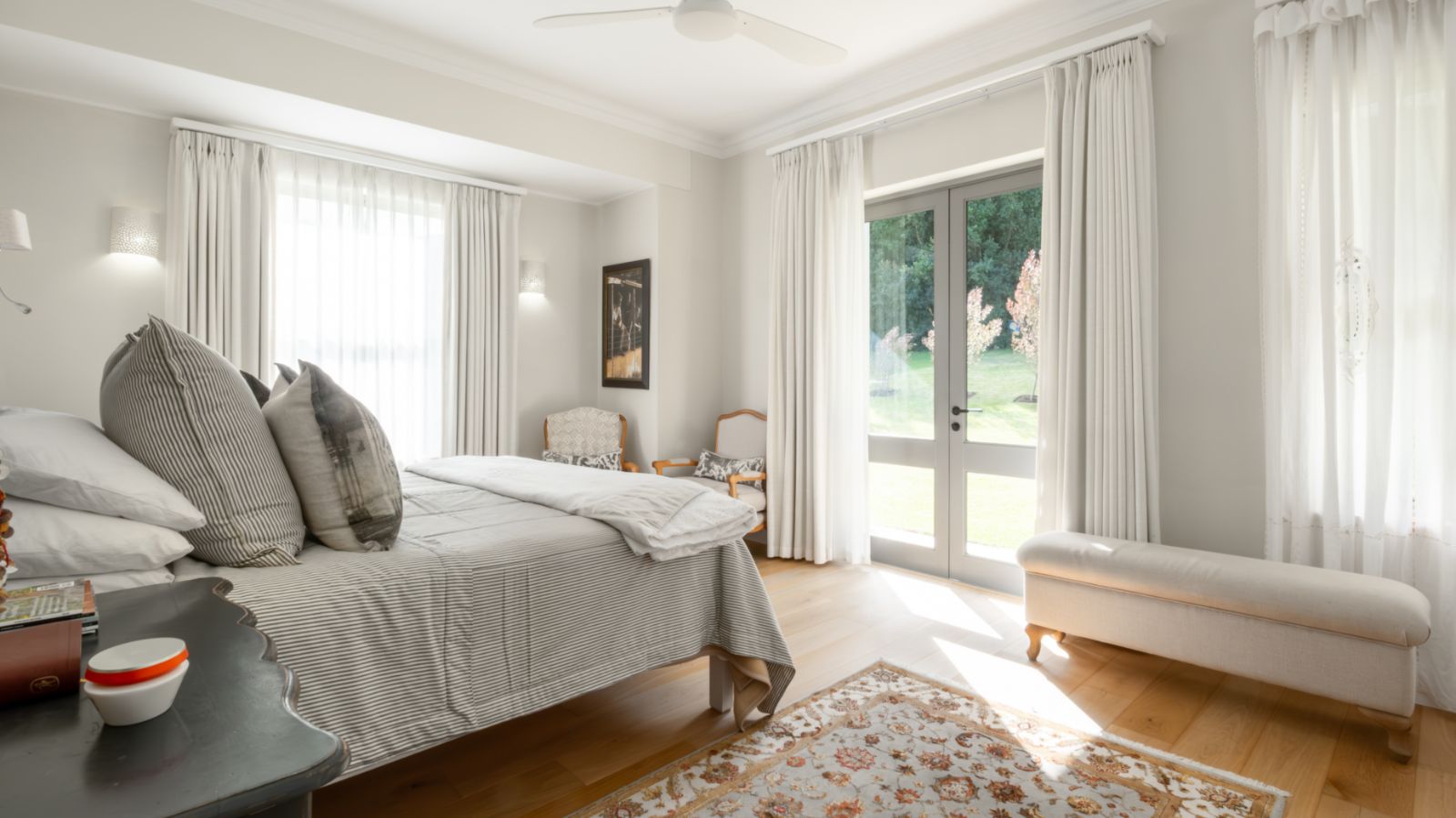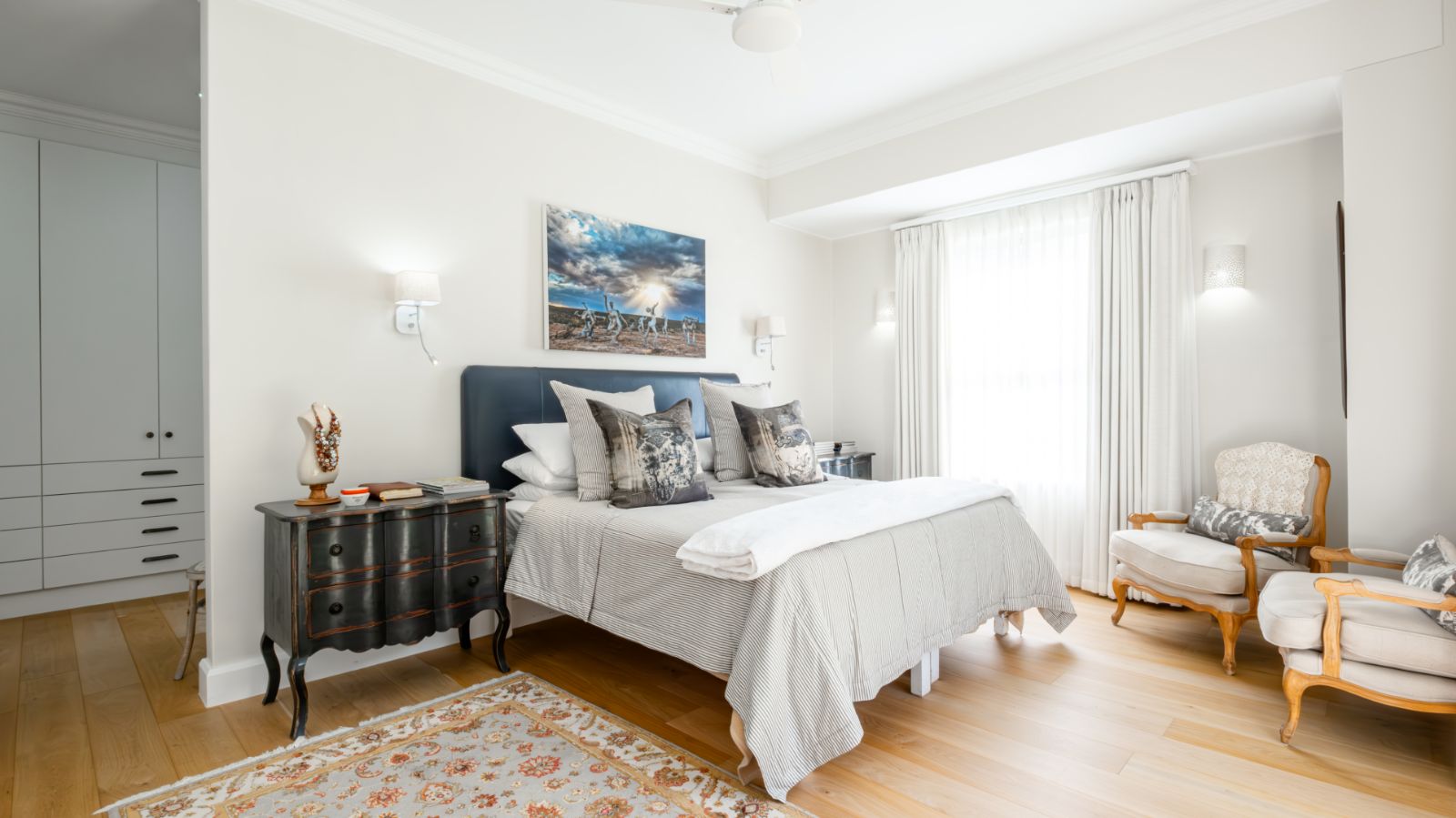 The kitchen is both functional and beautiful, with premium finishes, a scullery, and easy access to a second outdoor braai area – perfect for relaxed entertaining in any season. Real wood floors add warmth, while extras like a separate laundry, walk-in linen cupboard, and service yard ensure daily life runs smoothly.