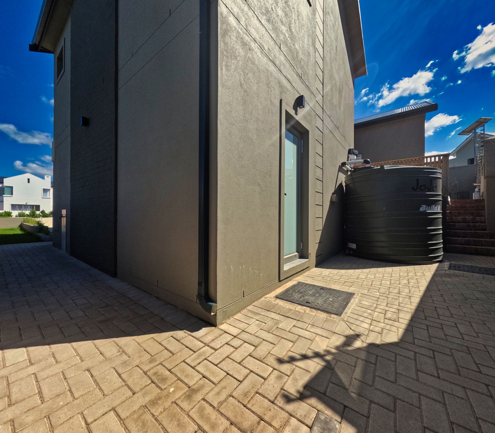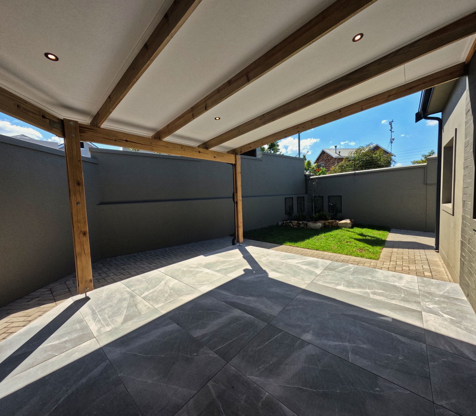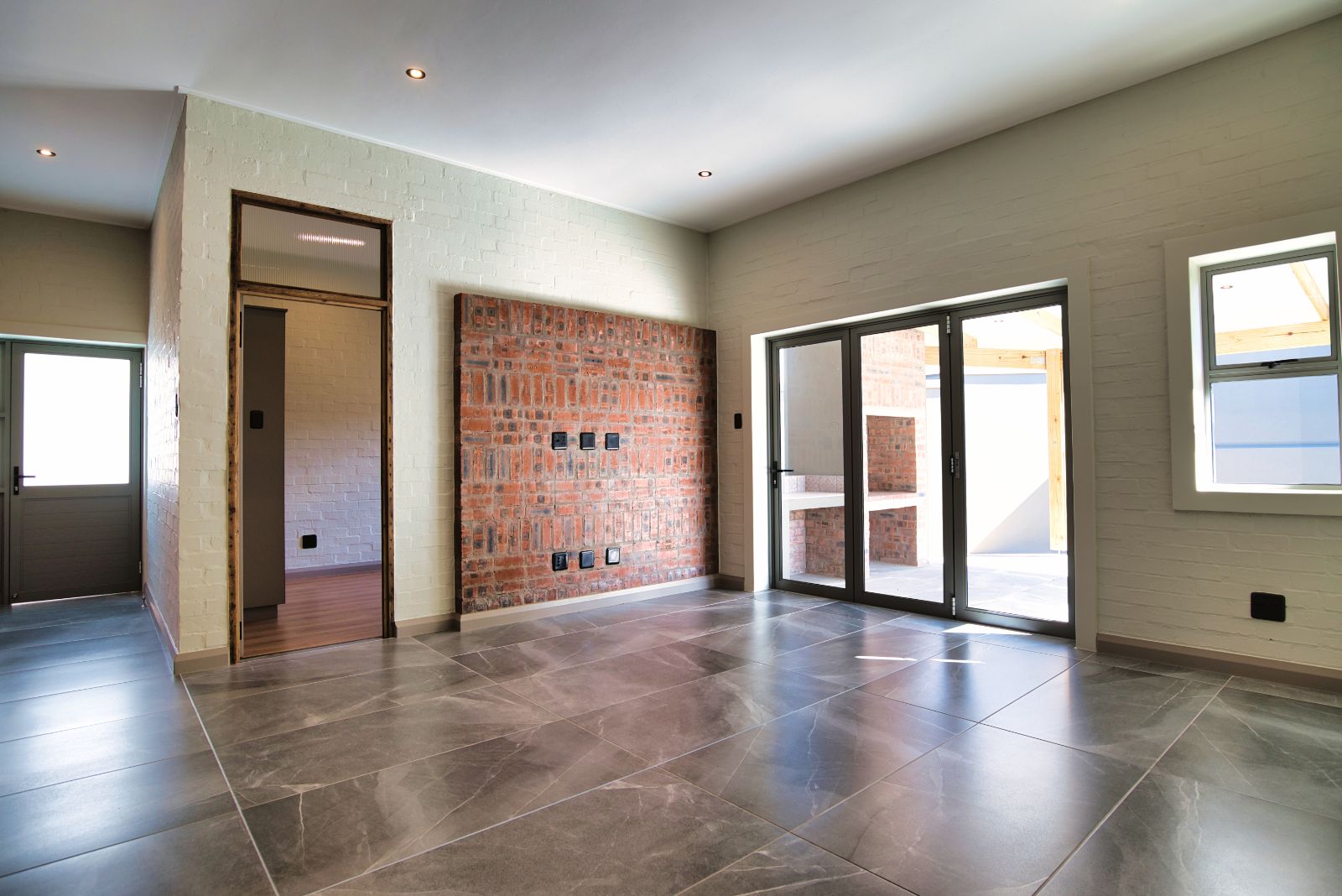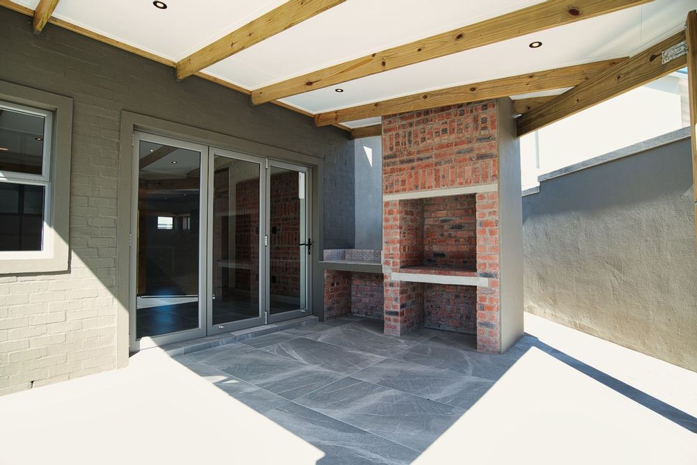 This modern newly built home offers comfortable estate living in the heart of Mont Fleur. Step inside and be welcomed by a spacious open-plan living area. To the right, you’ll find a contemporary kitchen with a separate scullery for convenience, while to the left, the family area features stacked doors that open seamlessly onto a covered patio with a built-in braai—perfect for entertaining.