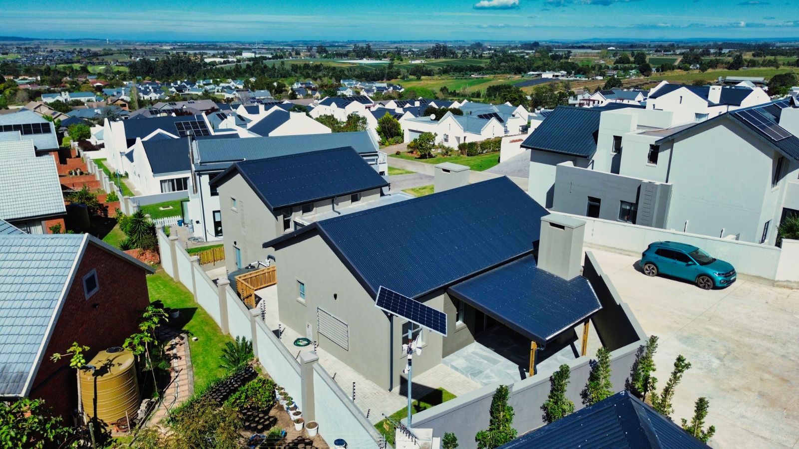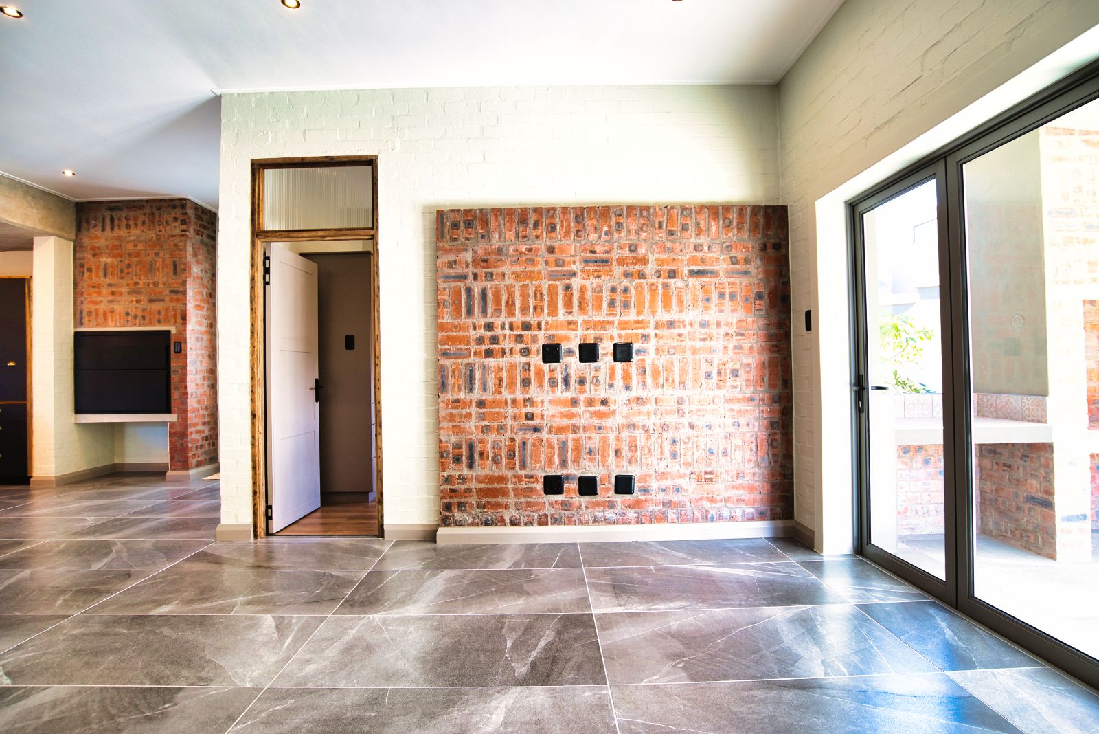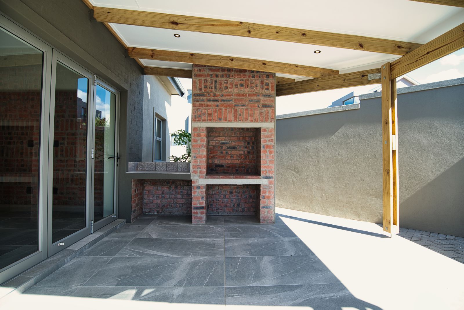 This modern newly built home offers comfortable estate living in the heart of Mont Fleur. Step inside and be welcomed by a spacious open-plan living area. To the right, you’ll find a contemporary kitchen with a separate scullery for convenience, while to the left, the family area features stacked doors that open seamlessly onto a covered patio with a built-in braai—perfect for entertaining.