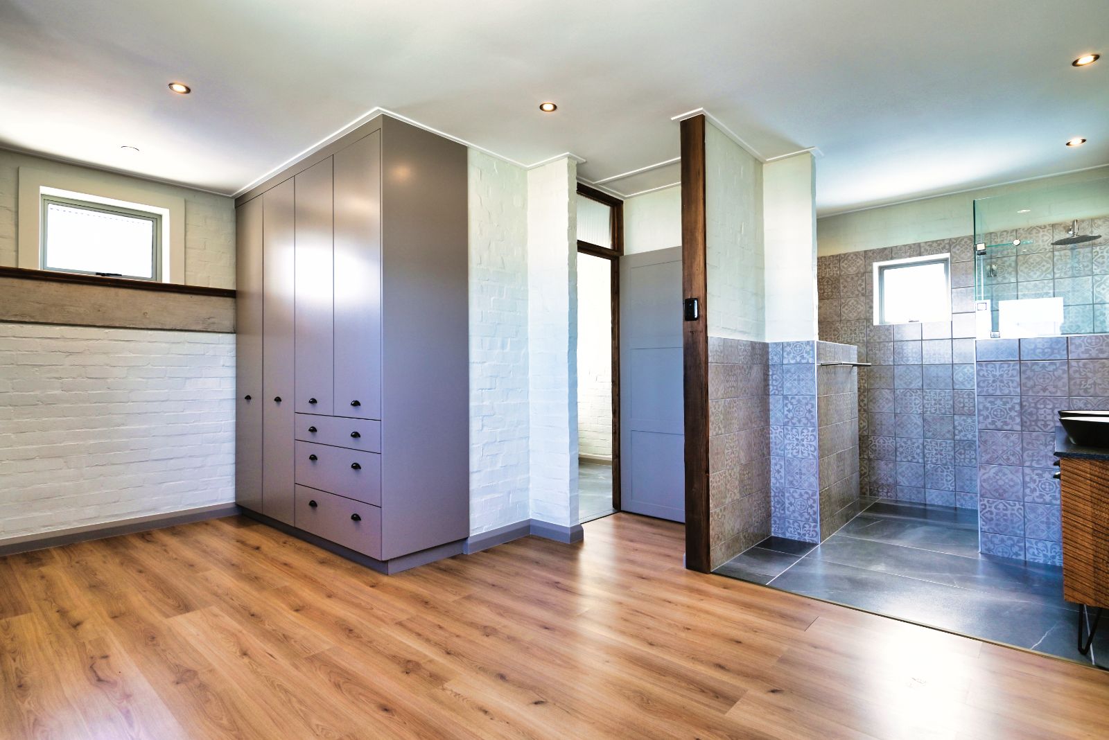 On either side of the family area are two well-sized bedrooms that share a stylish bathroom. From the kitchen, a short flight of steps leads to a private study area and the main bedroom, complete with an en-suite bathroom.