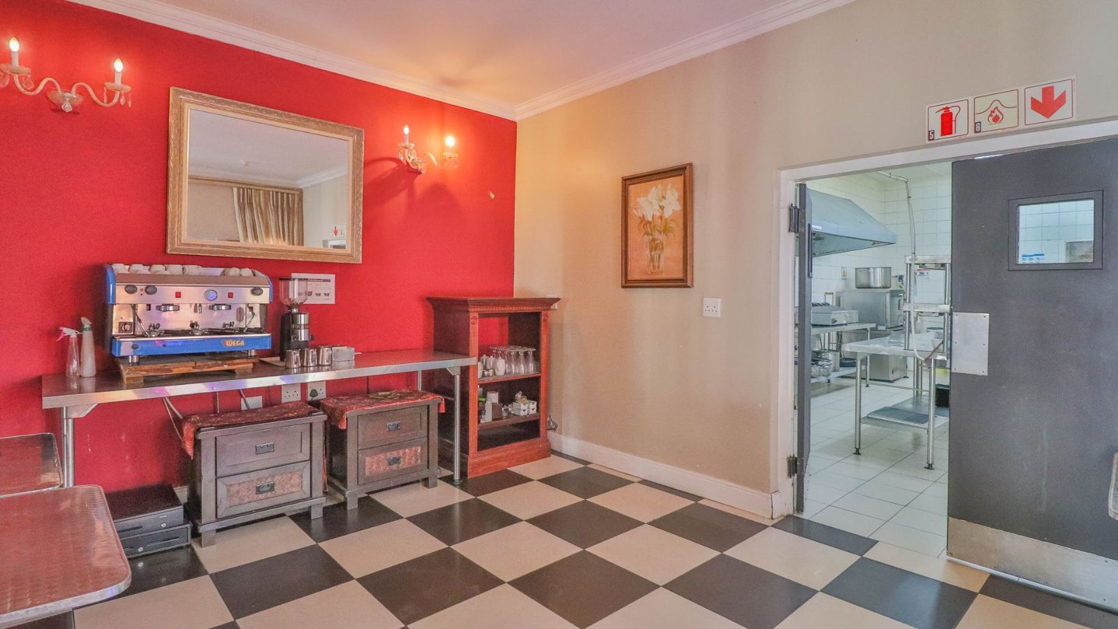 Elegance and charm with a Victorian feel welcome you as you enter the exquisitely tasteful restaurant with dazzling chandeliers. A coffee station is situated in the corner and air-conditioning is in place. The industrial kitchen is any chef's dream, with everything in place to get cooking, pronto! An intimate pub with classical features is situated next door.