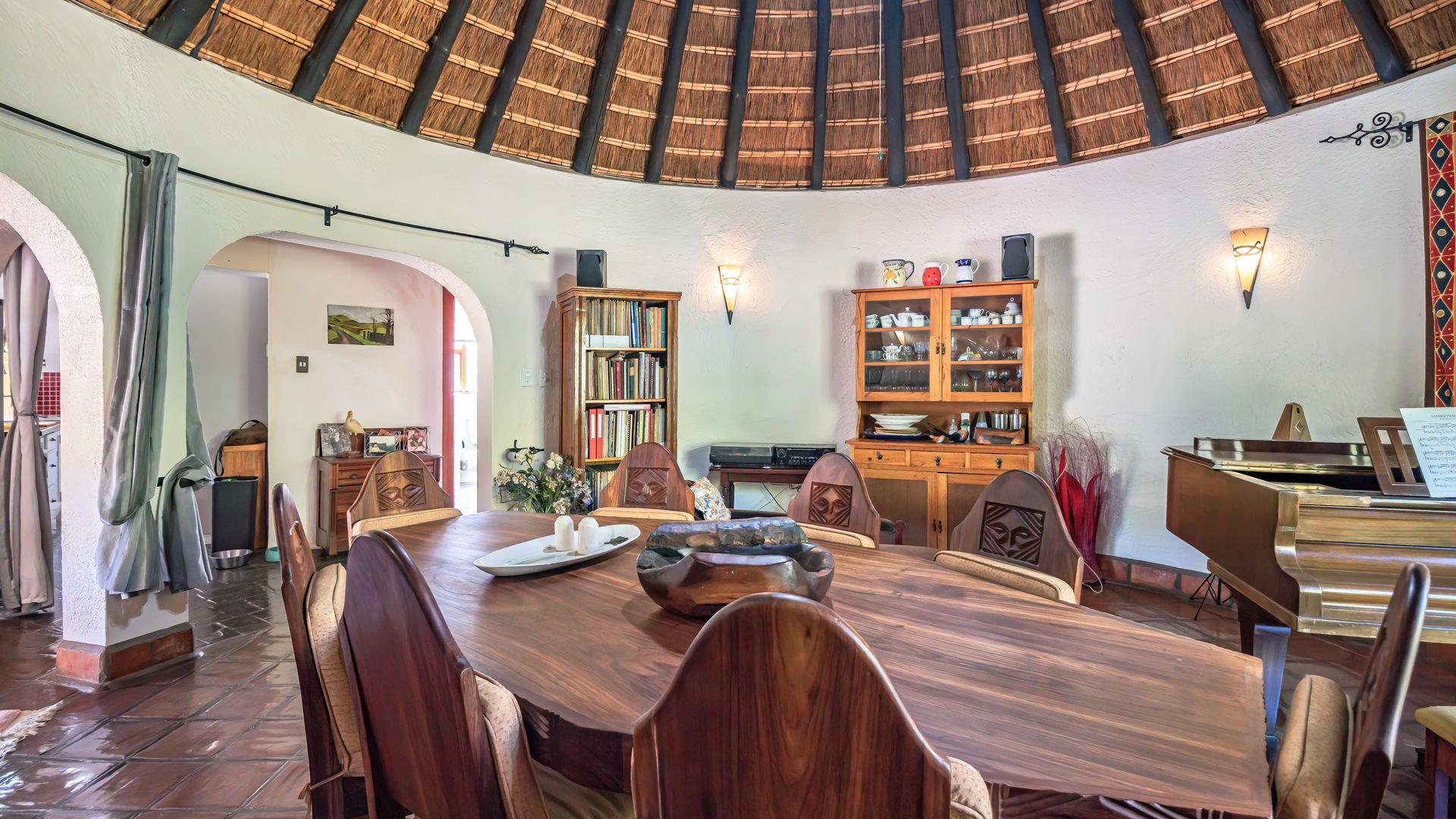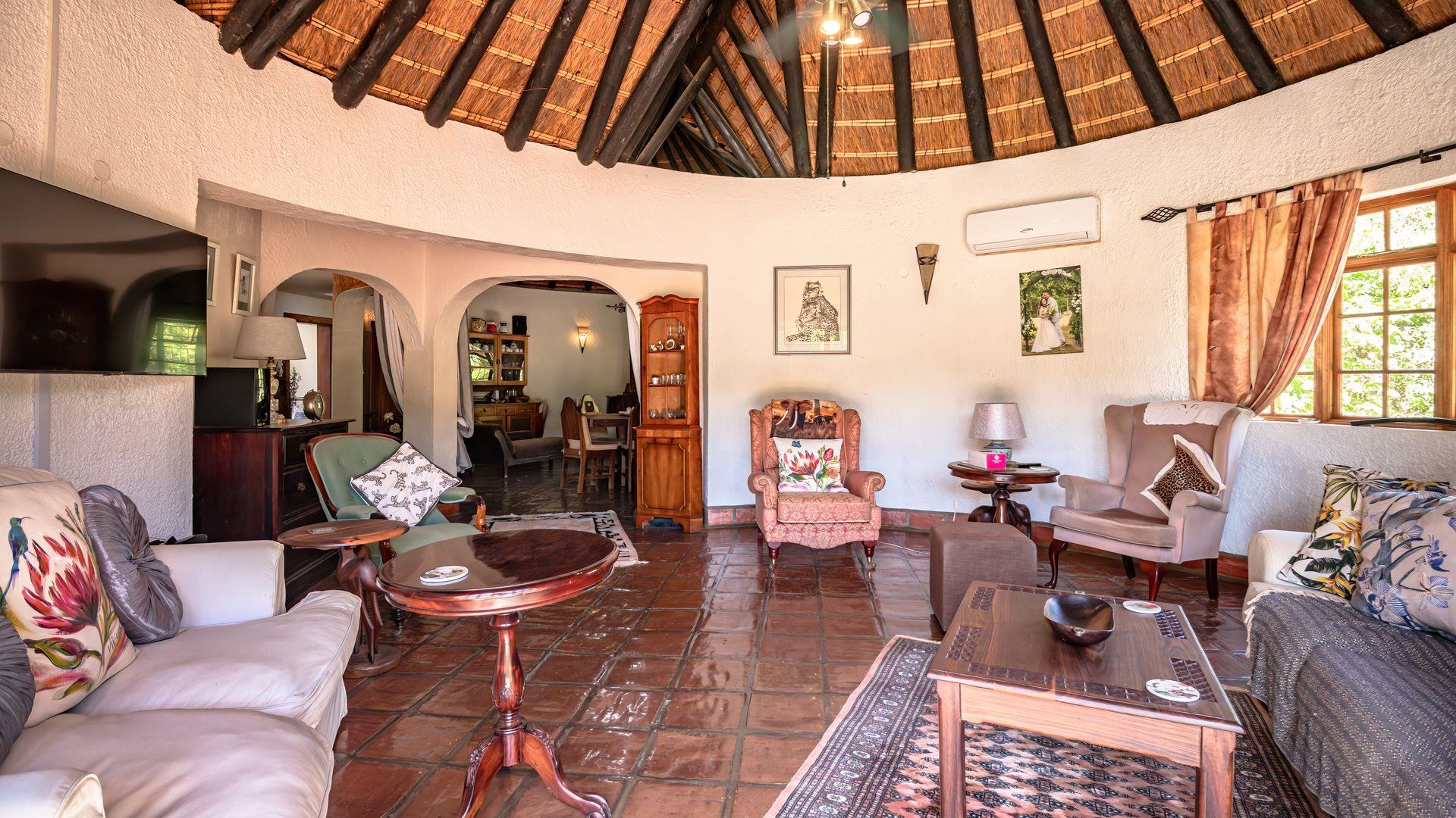 The main home is a charming rondavel-style house with a thatched roof, filled with warmth and character. Designed for relaxed living and easy entertaining, it offers: