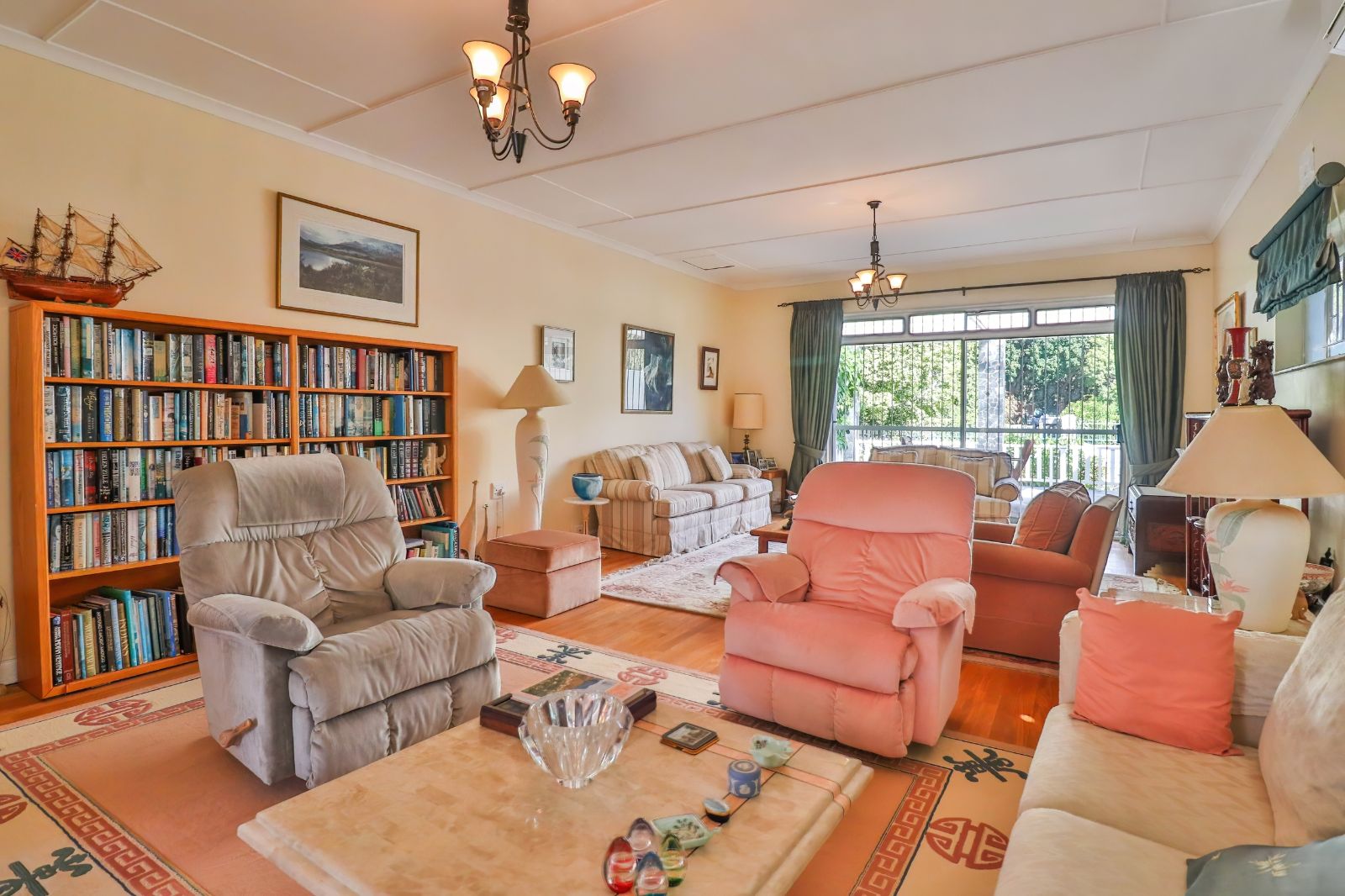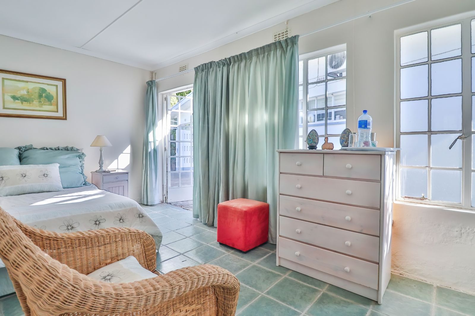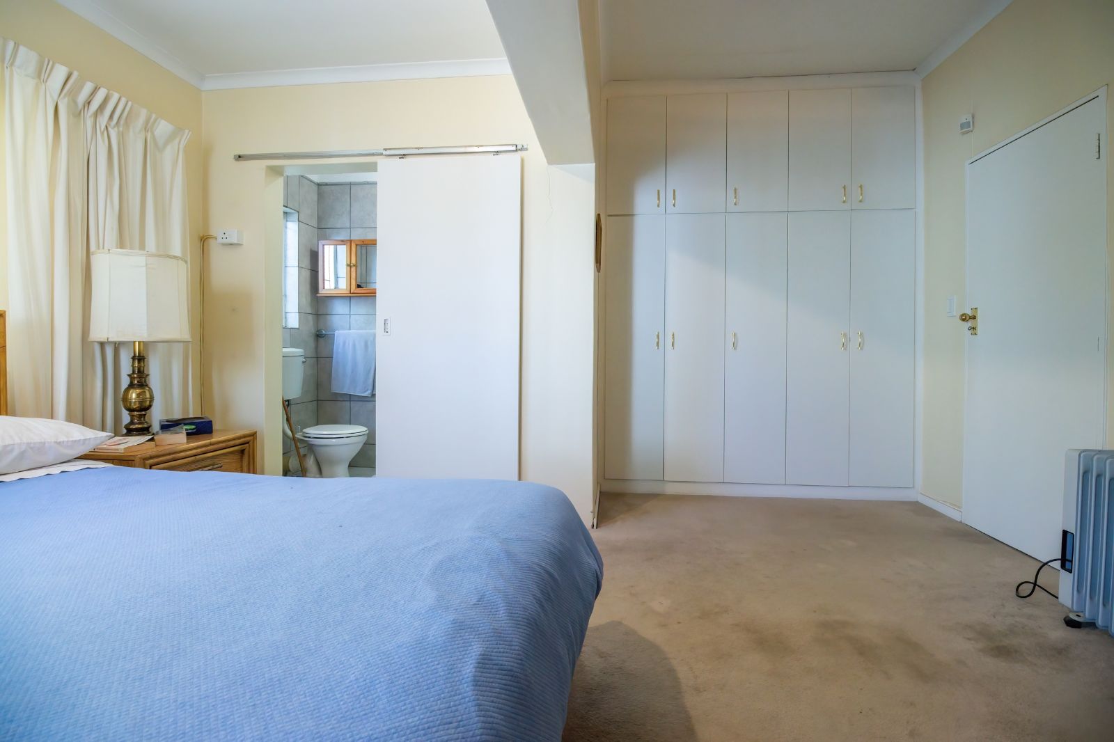 2 Bedrooms each boast an en-suite bathroom, built in cupboards and air-conditioning. One of these bedrooms open up to the beautiful back garden. The third bedroom has been converted into an office and is served by its own full family bathroom.