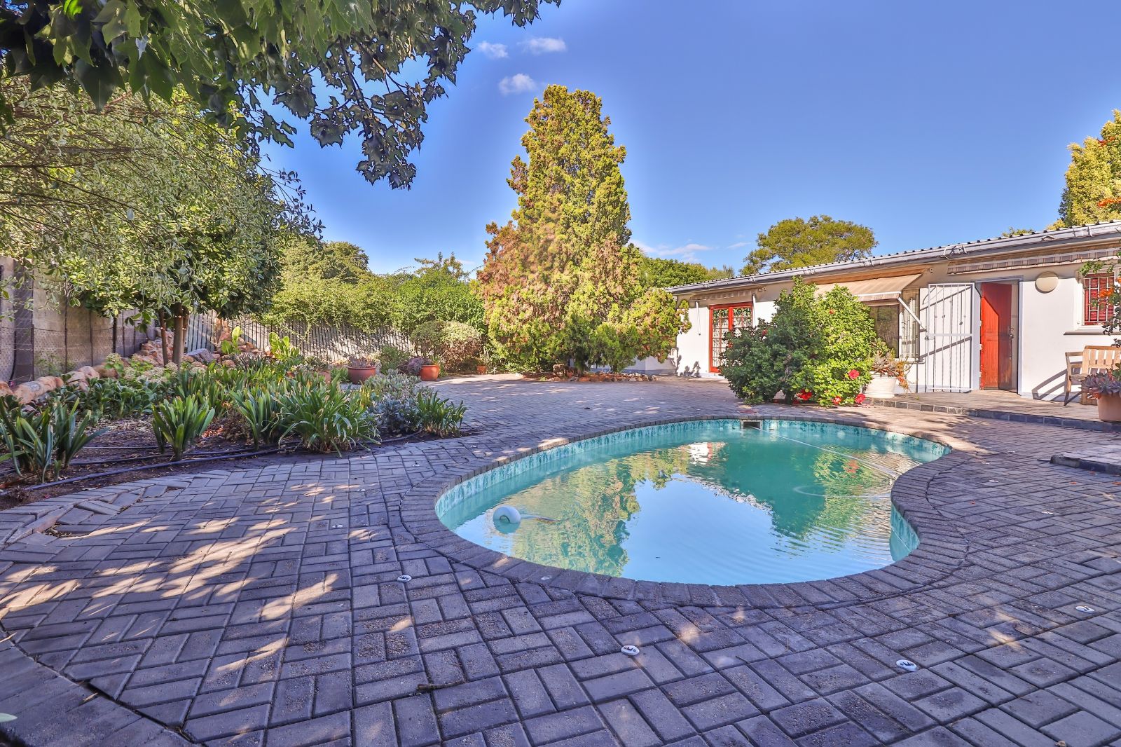 What's more, a separate room is situated outside the house with its own kitchenette, en-suite bathroom and entrance. The sparkly, azure swimming pool and entertainment area with a built in braai guarantees fun-filled quality time with loved ones.