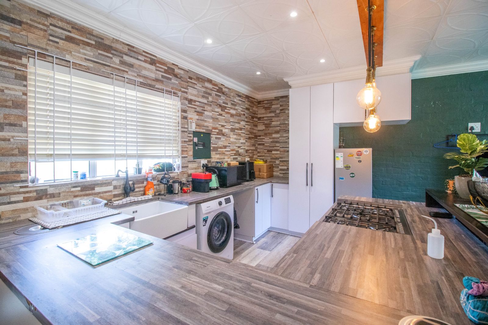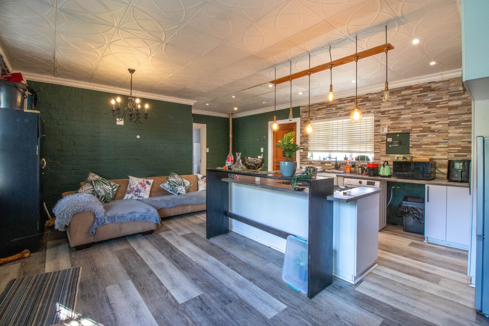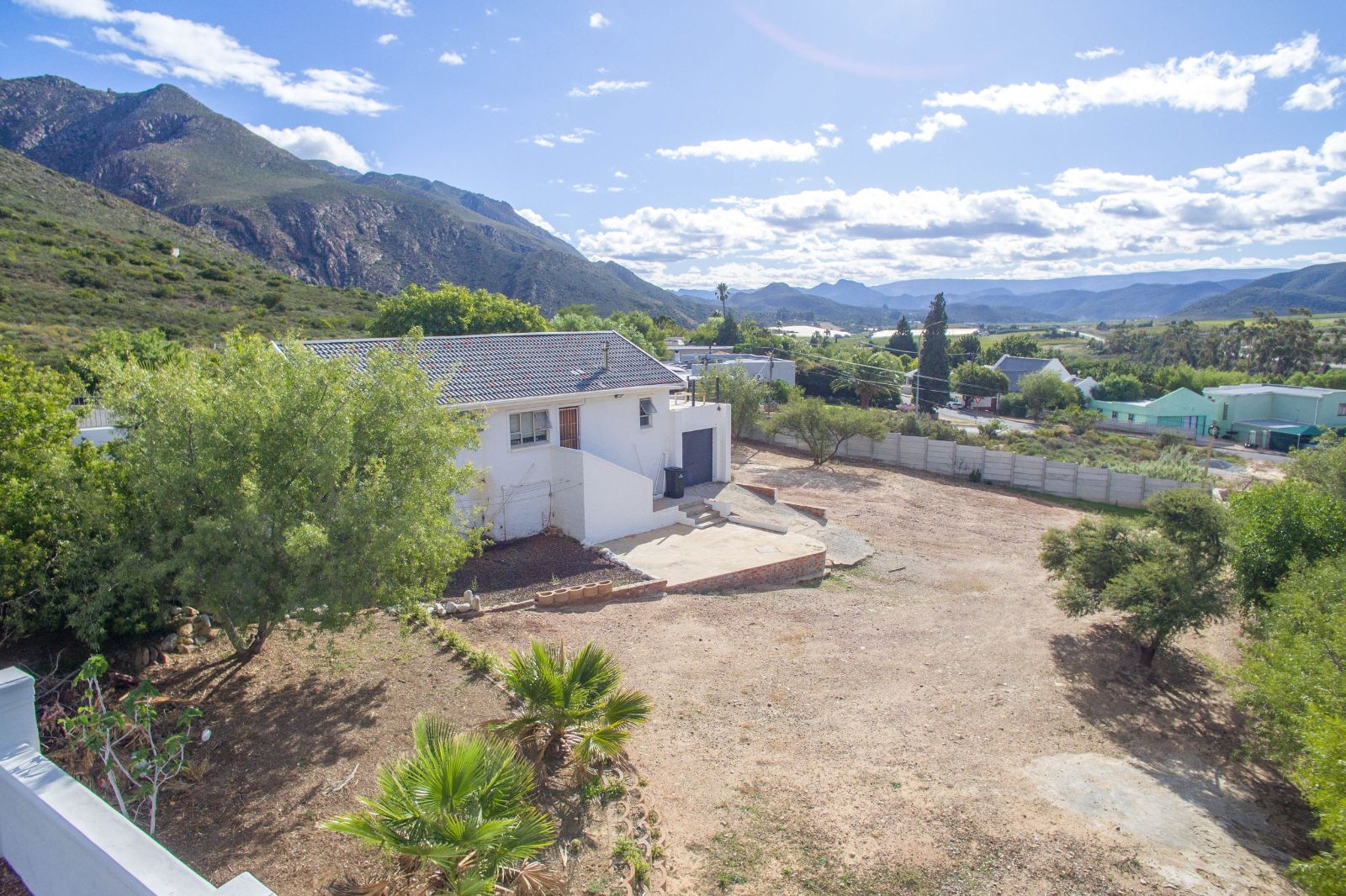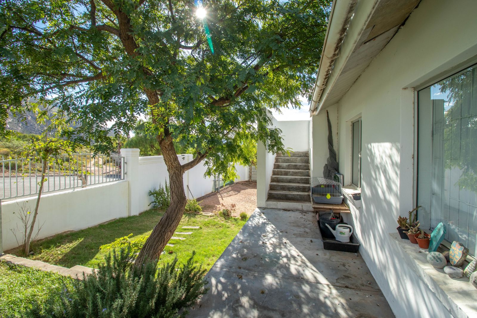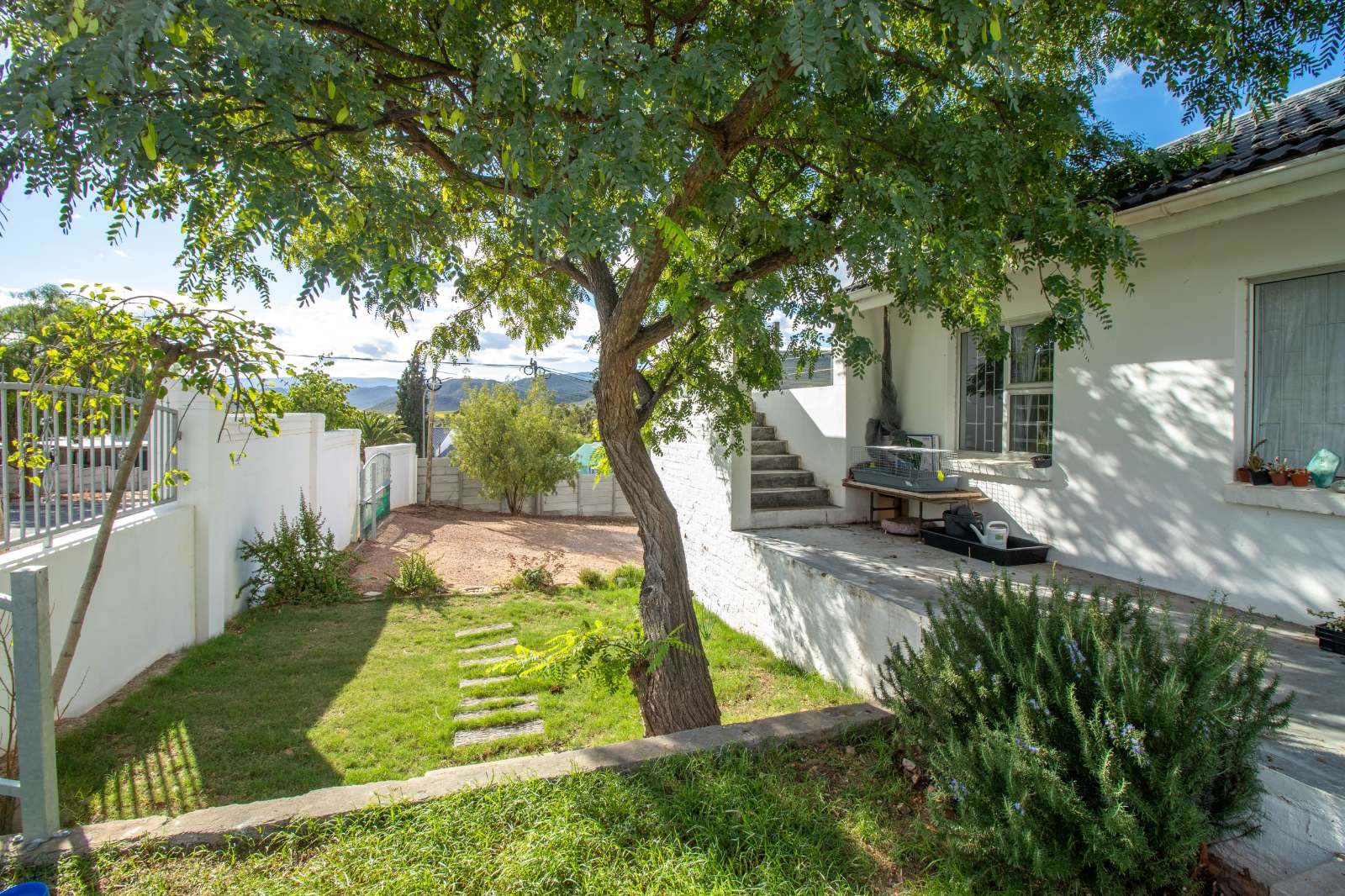 Outside, a vast area is available to enlarge your home. The possibilities are endless! The stairs lead to another patio, overlooking the marvelous mountain range. A single garage is situated at the back of the home. The property is fully fenced with