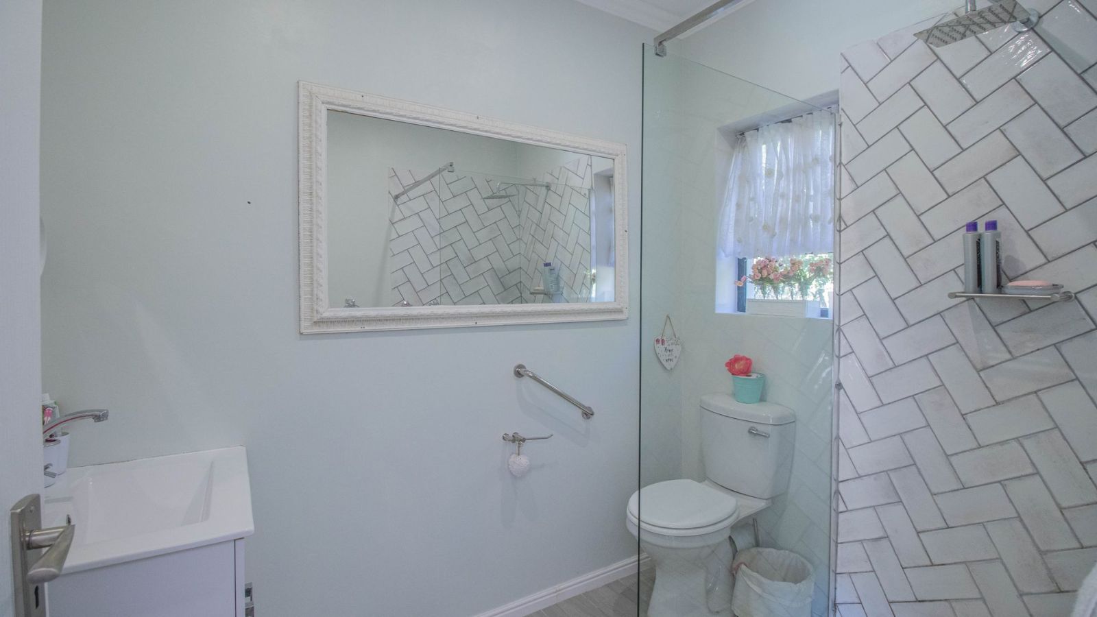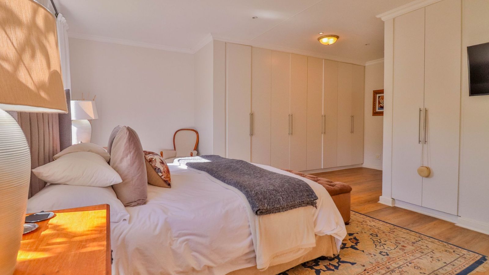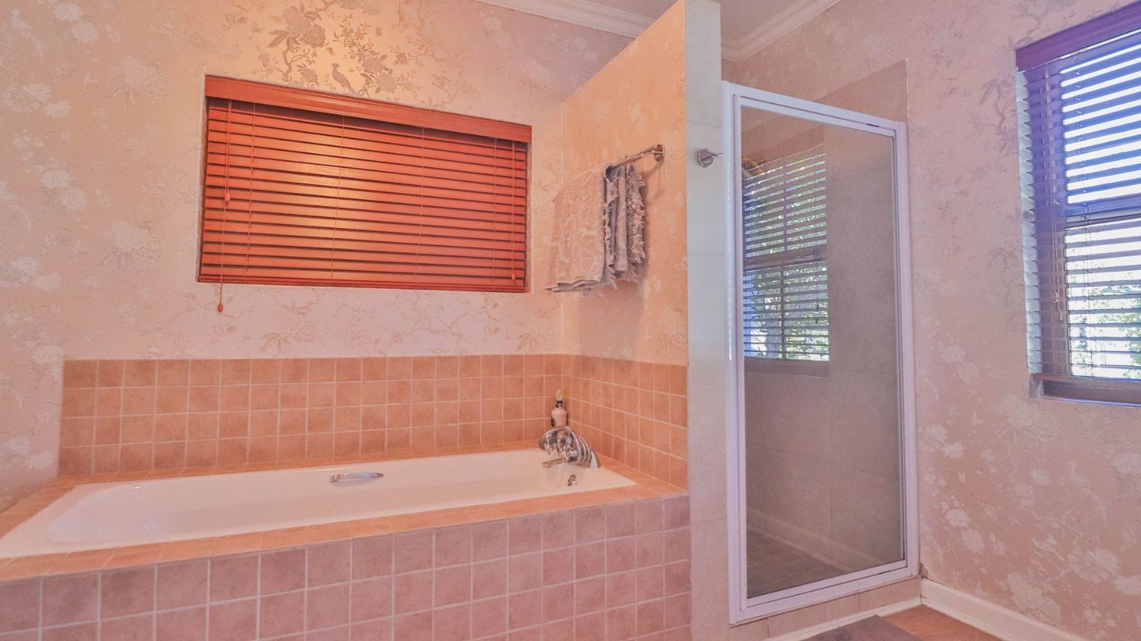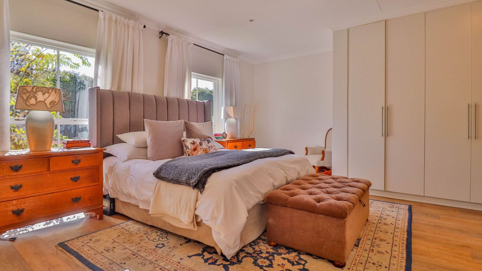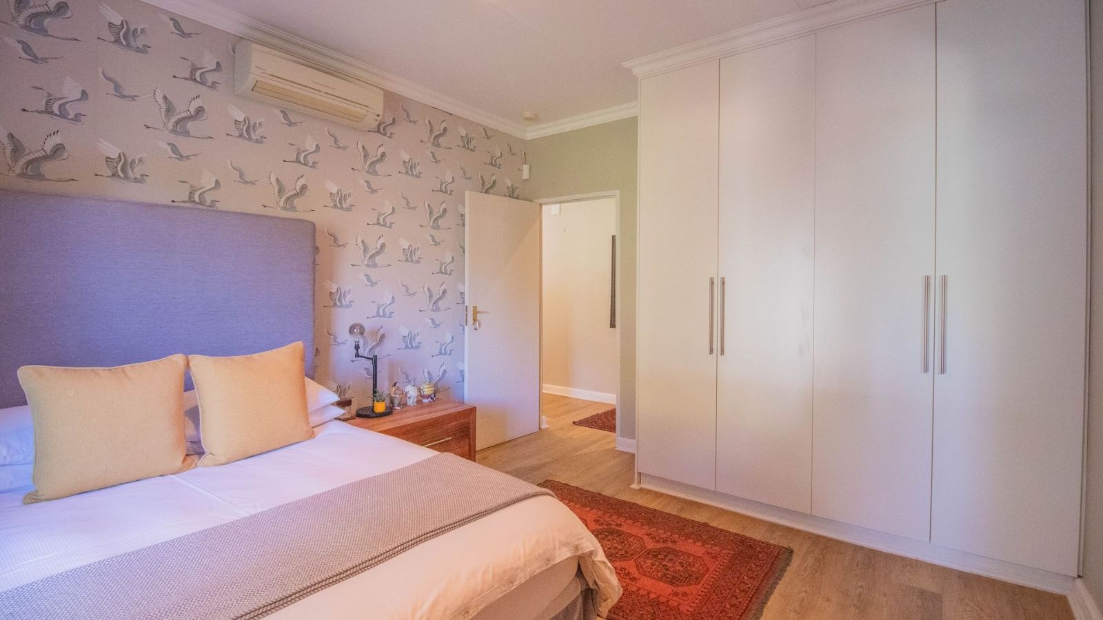 You are welcomed by a sunny, warm covered patio that leads to the free flowing, open plan family room, dining area and kitchen with a breakfast nook, ample cupboard space, work space, a separate pantry and scullery. The main dwelling boasts 3 bedrooms, each with an en-suite bathroom and built in cupboards. The study is spacious with built in cupboards, and a guest restroom serves all your visitors. An alluring, covered entertainment area with a built in braai overlooks the garden and swimming pool.