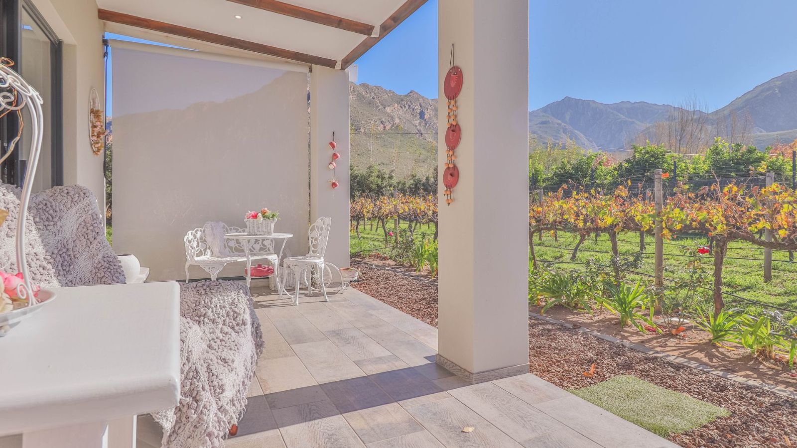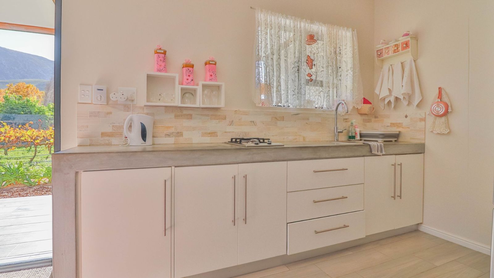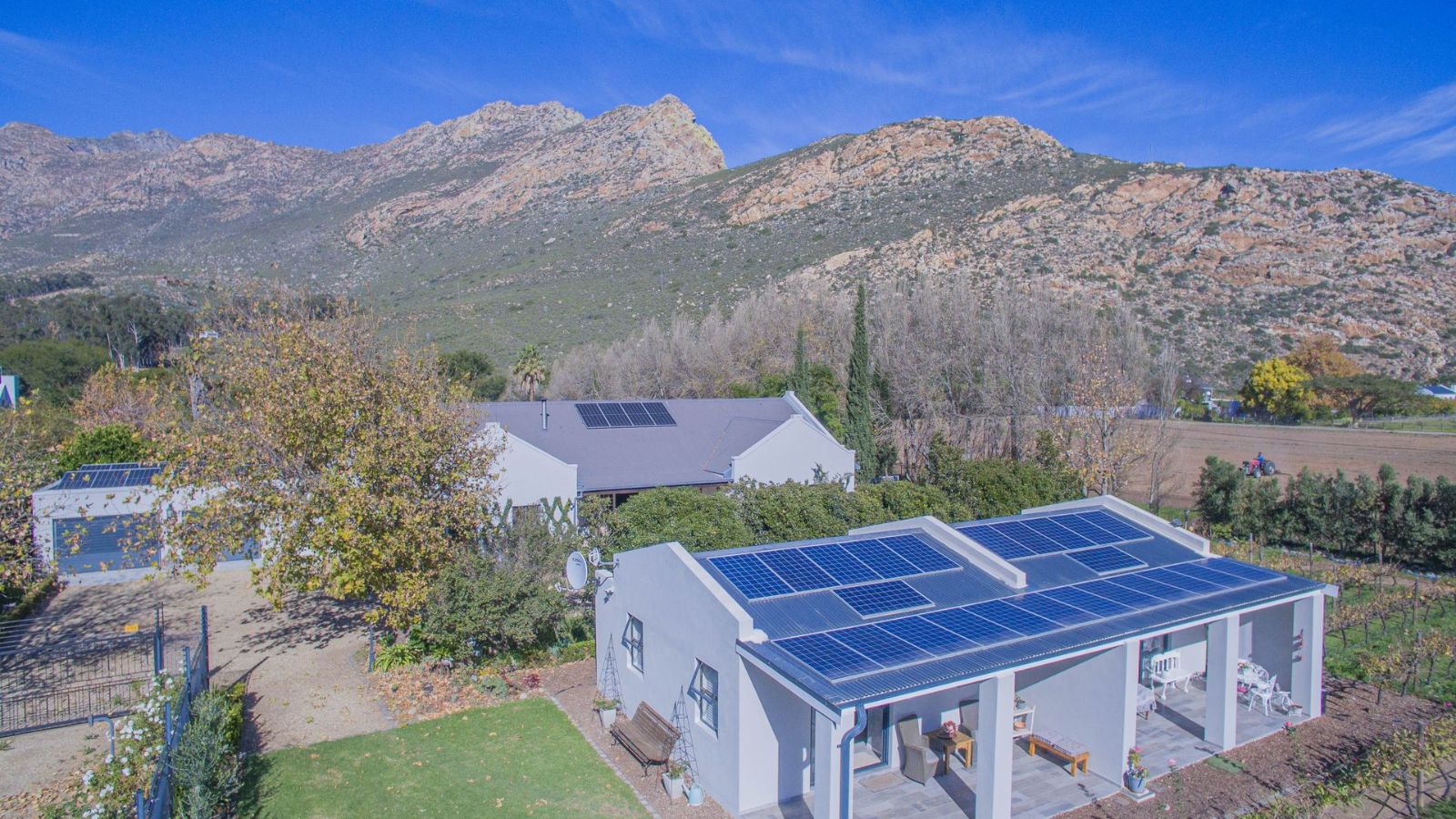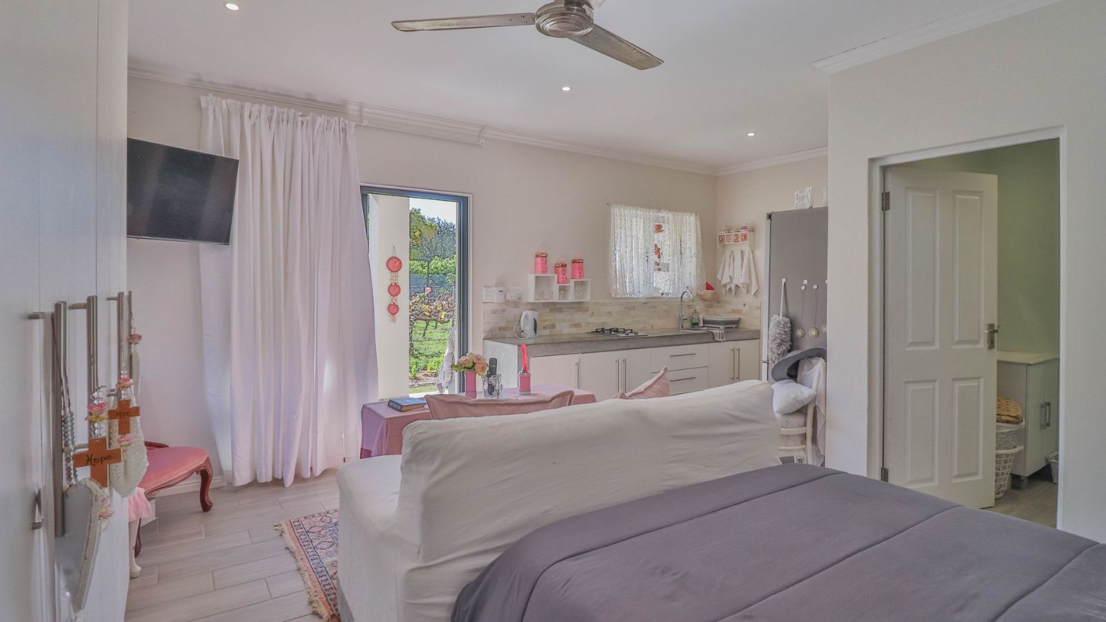 Two separate bachelor garden cottages overlook the vineyard and breathtaking, picturesque village landscapes. Each flatlet has an en-suite bathroom, kitchenette, a separate entrance, a 5 kW inverter and solar panels.