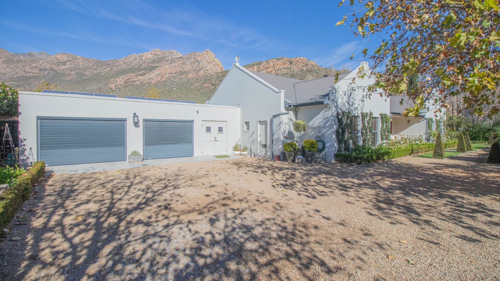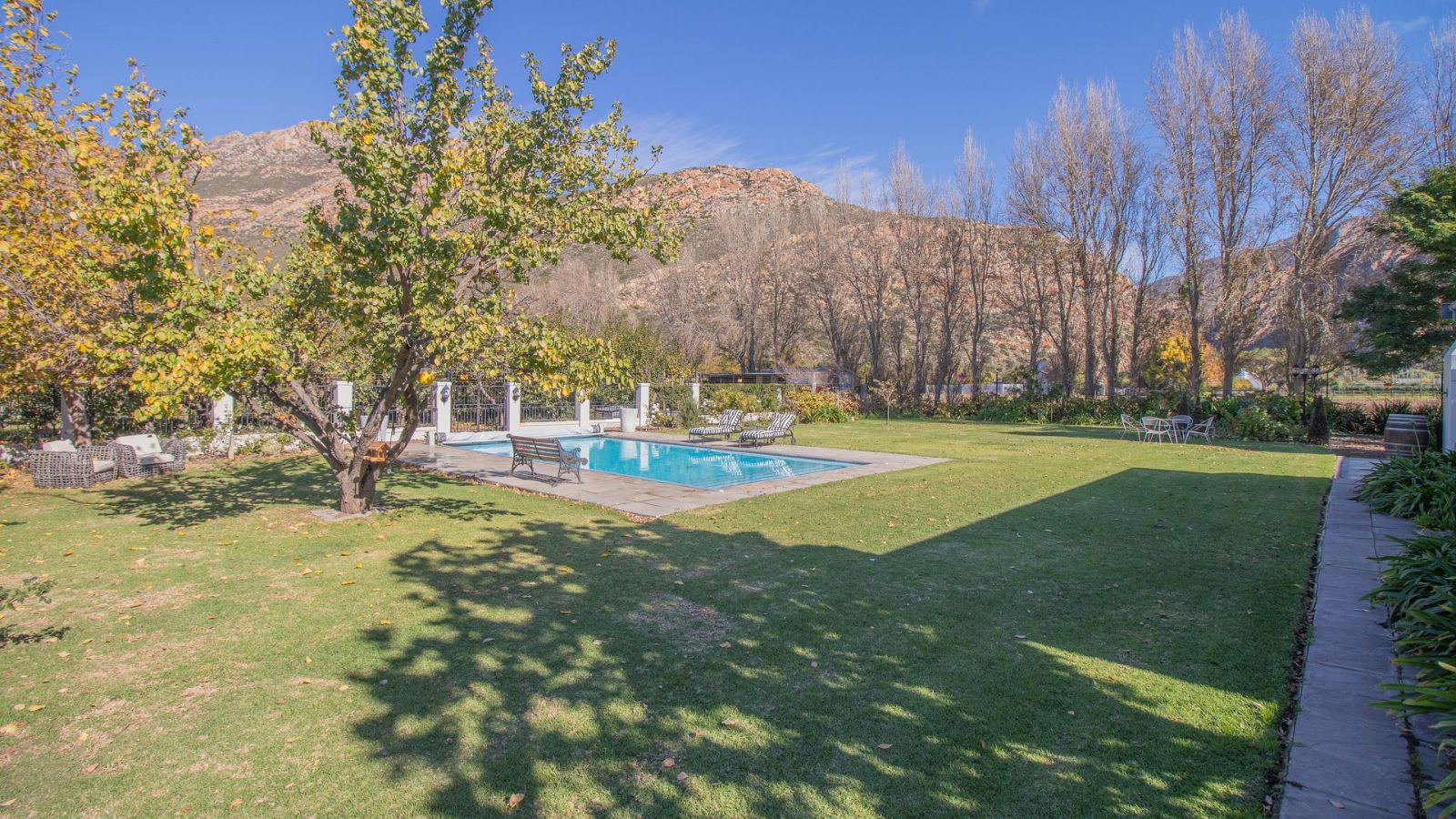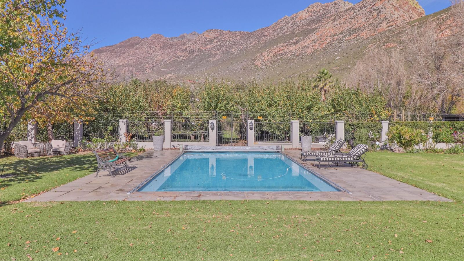 A lush, manicured garden boasts a large, crystal clear swimming pool, along with a vineyard and landscaped area where your green fingers can dig into the rich soil - waiting to become your hidden oasis. This is the self-sufficient homesteader's dream! Automated irrigation and bountiful water nurtures and quenches the garden: 1 ha CBR water and 2 hours of leiwater once a week.
