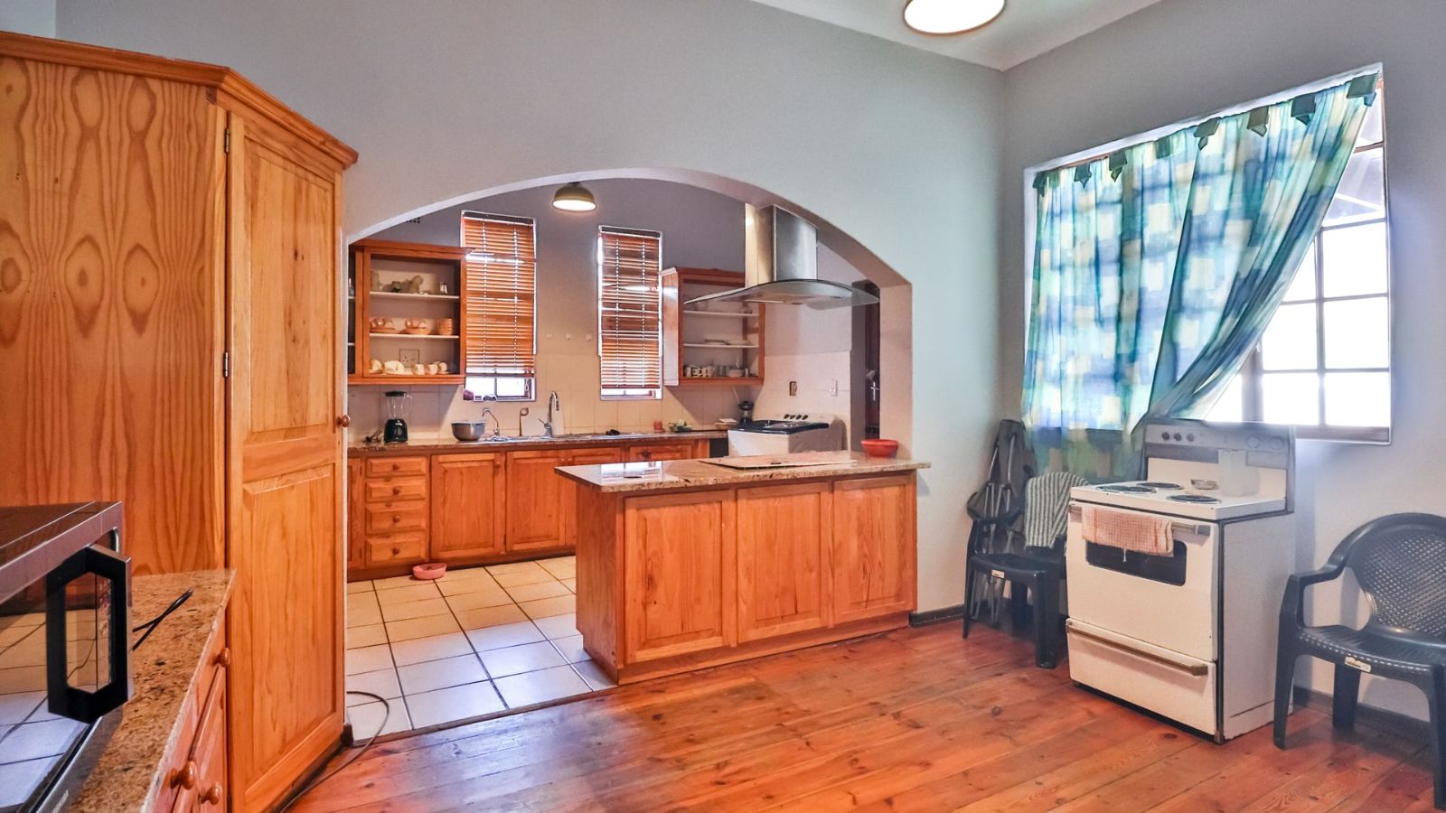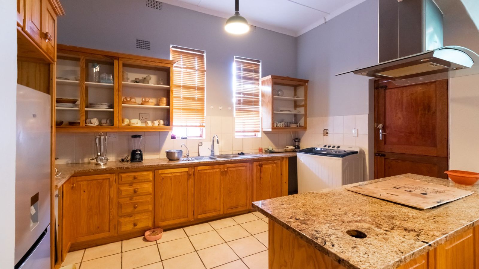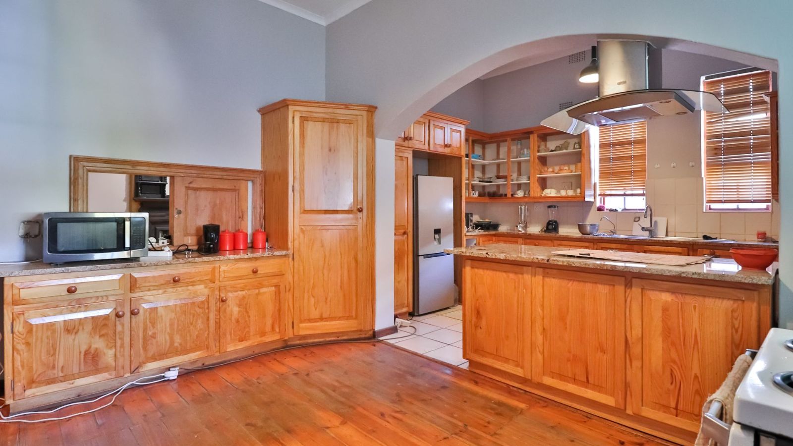 A spacious kitchen with ample cupboard space and work surfaces guarantees scrumptious meals made with love. 6 bedrooms are served by 2 bathrooms and 2 guest restrooms for visitors. An entertainment area is ideally situated at the back of the property. An easy flow is created to your semi-covered private patio that overlooks your garden and with an azul swimming pool. This is a green finger or homesteader's haven!