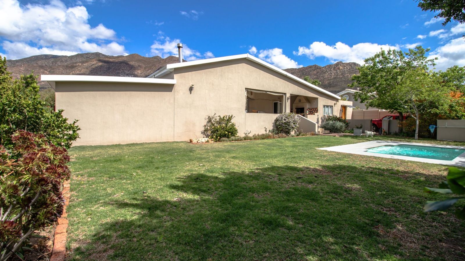 Enjoy quality time entertaining loved ones and making fun-filled memories on the North-facing covered porch, where you can enjoy a braai, have cozy conversations and take a dip in the pool.