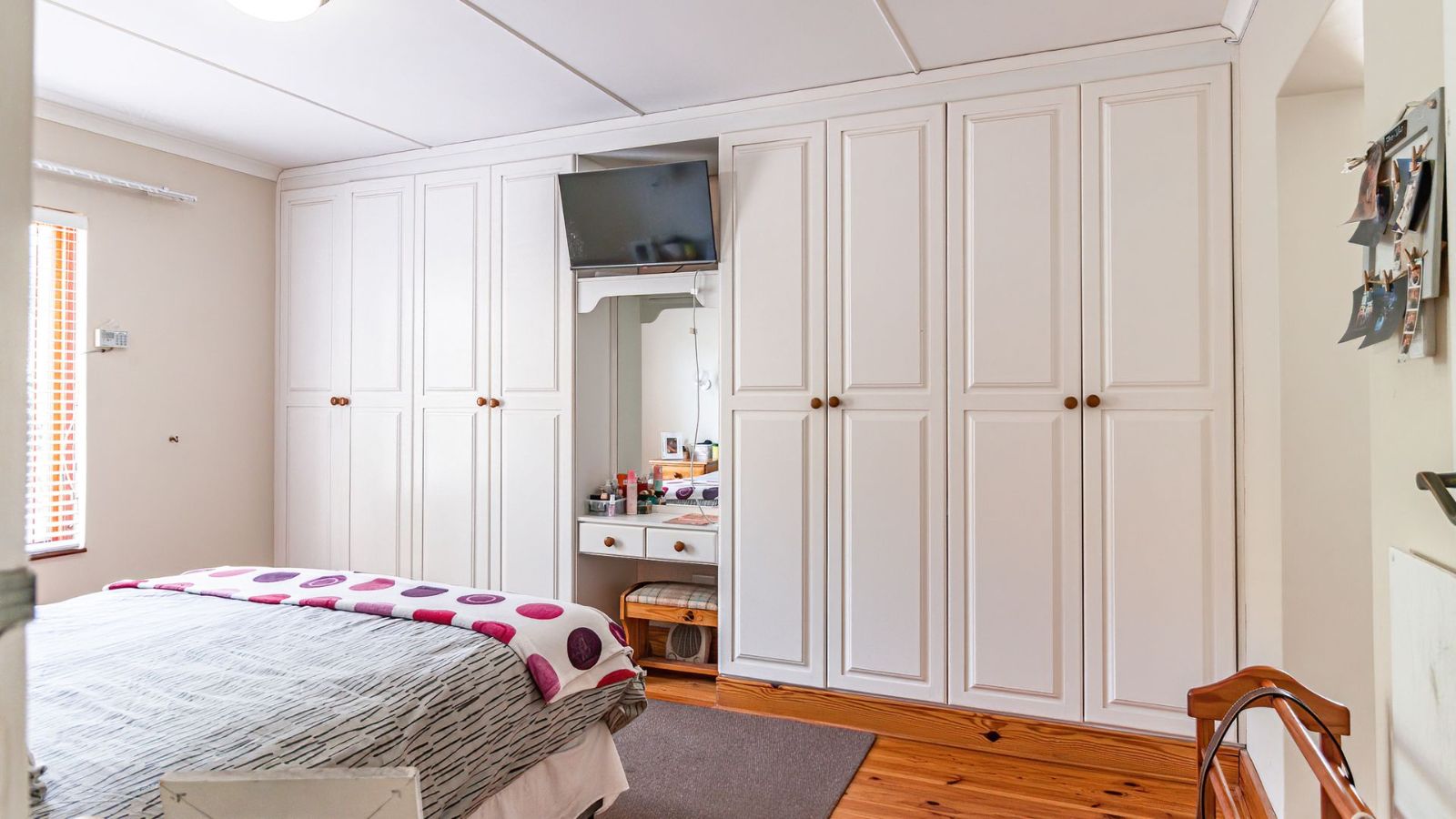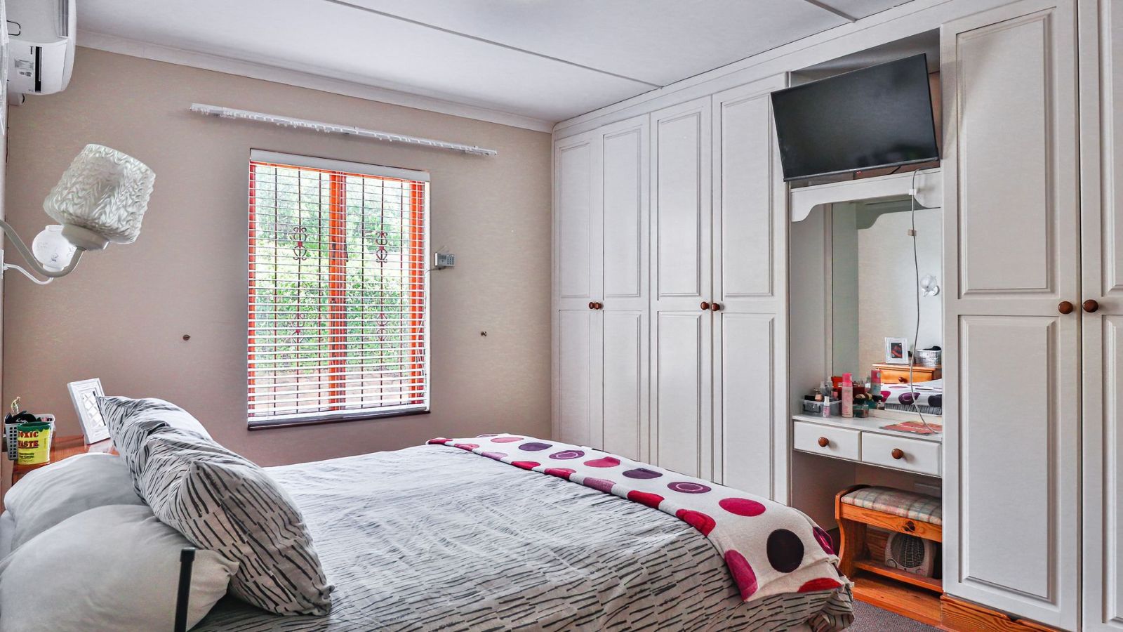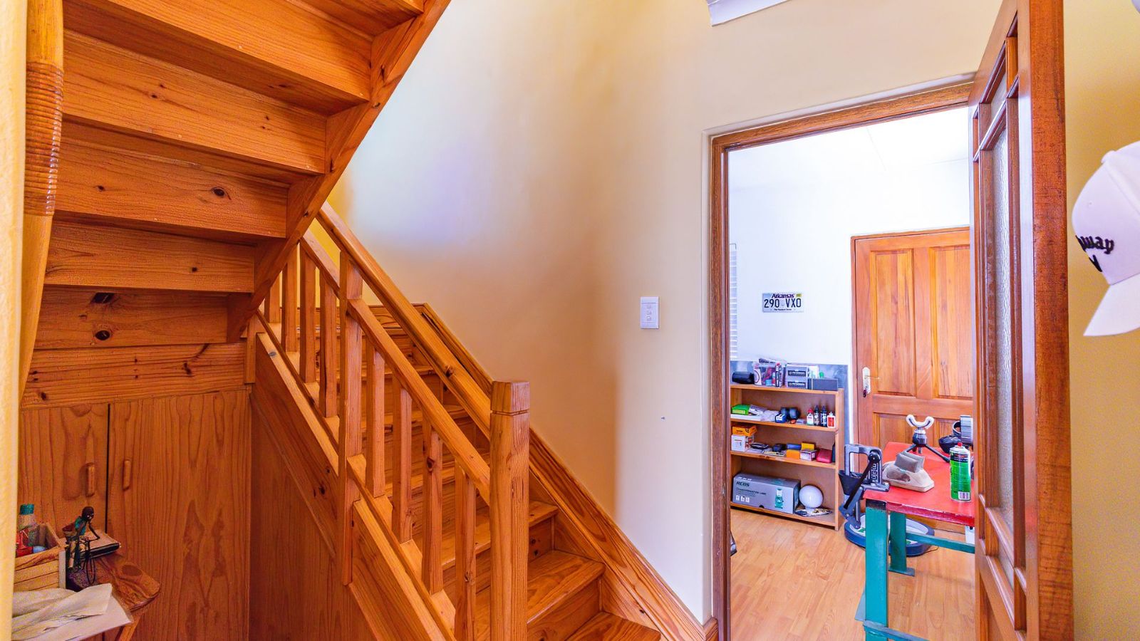 The lower part of this double story home boasts 2 bedrooms with built-in cupboards and 2 bathrooms, of which the master bedroom has an en-suite bathroom. The 3rd bedroom has been converted into a study, situated next to the staircase.