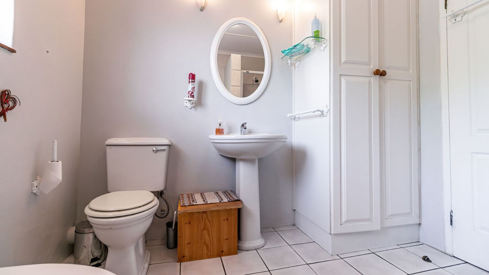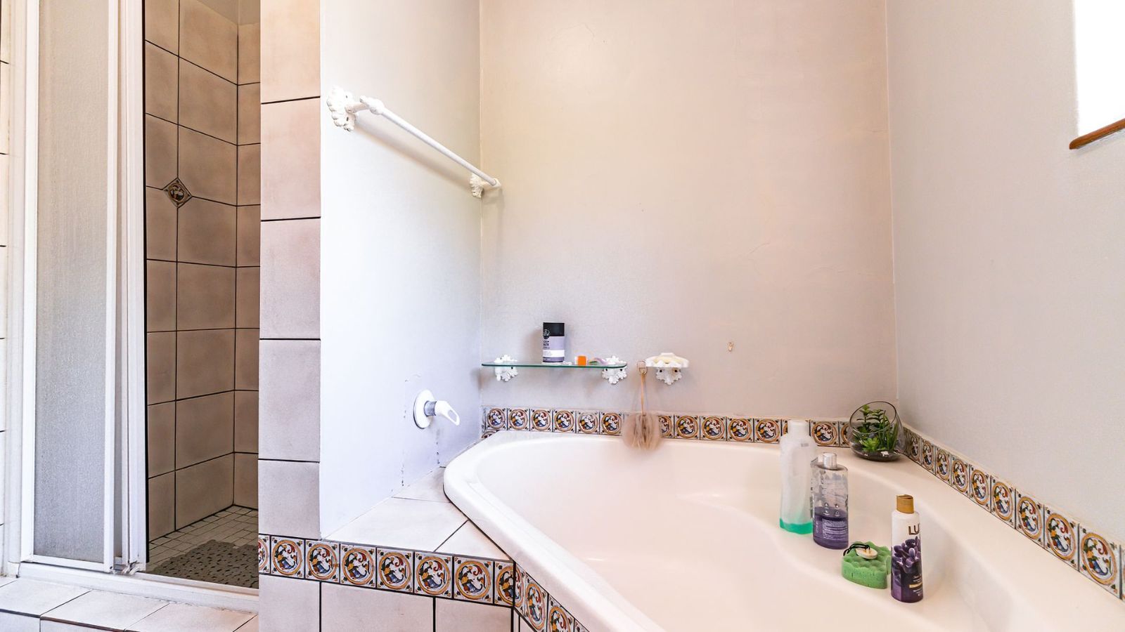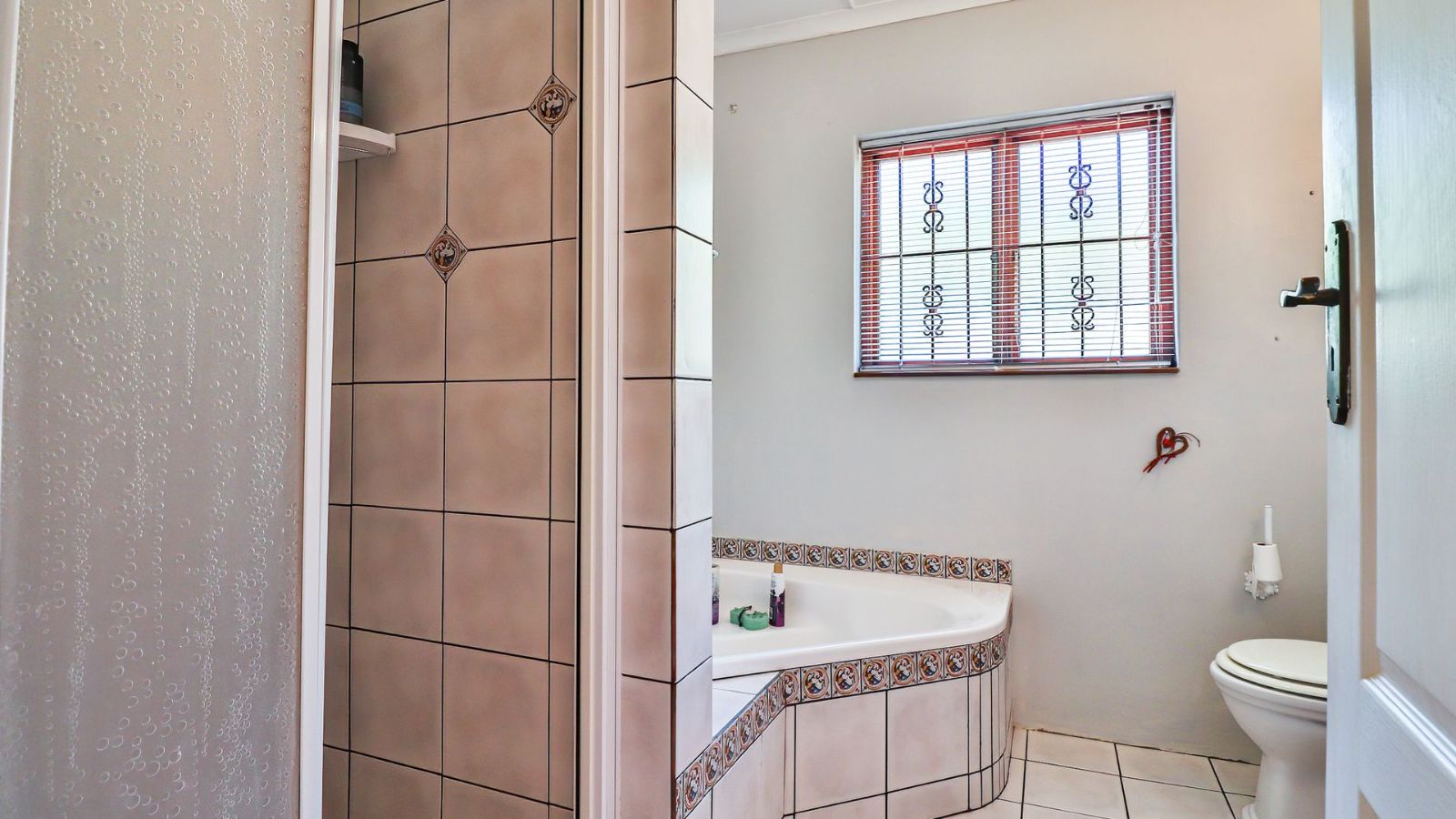 The lower part of this double story home boasts 2 bedrooms with built-in cupboards and 2 bathrooms, of which the master bedroom has an en-suite bathroom. The 3rd bedroom has been converted into a study, situated next to the staircase.