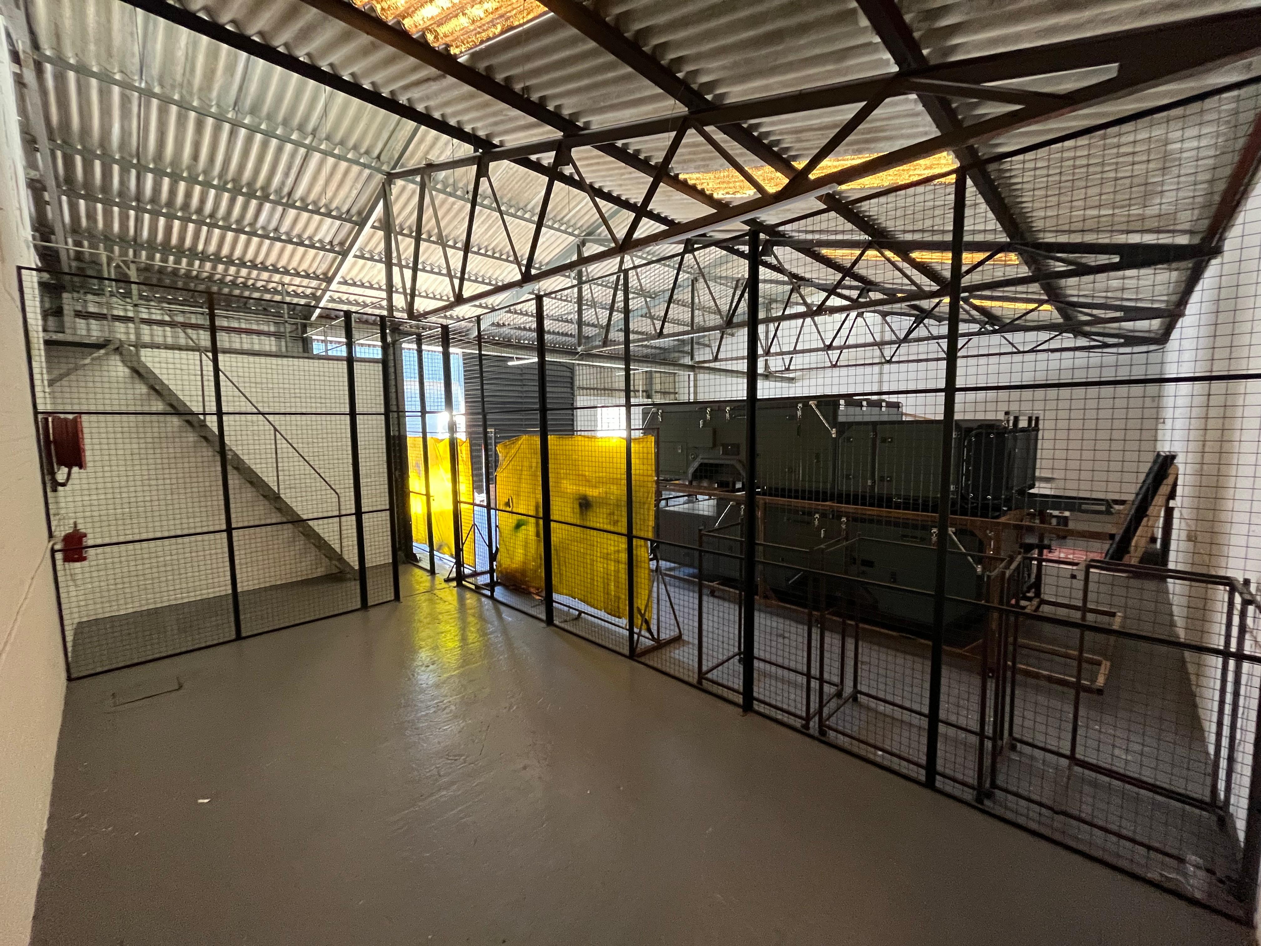 The warehouse features a 4m-high roller shutter door for easy loading and unloading, 4m+ high eaves offering great vertical space, and a caged-off secure storage area. Inside, the unit includes two bathrooms and a small kitchenette, ensuring practicality for day-to-day operations.
