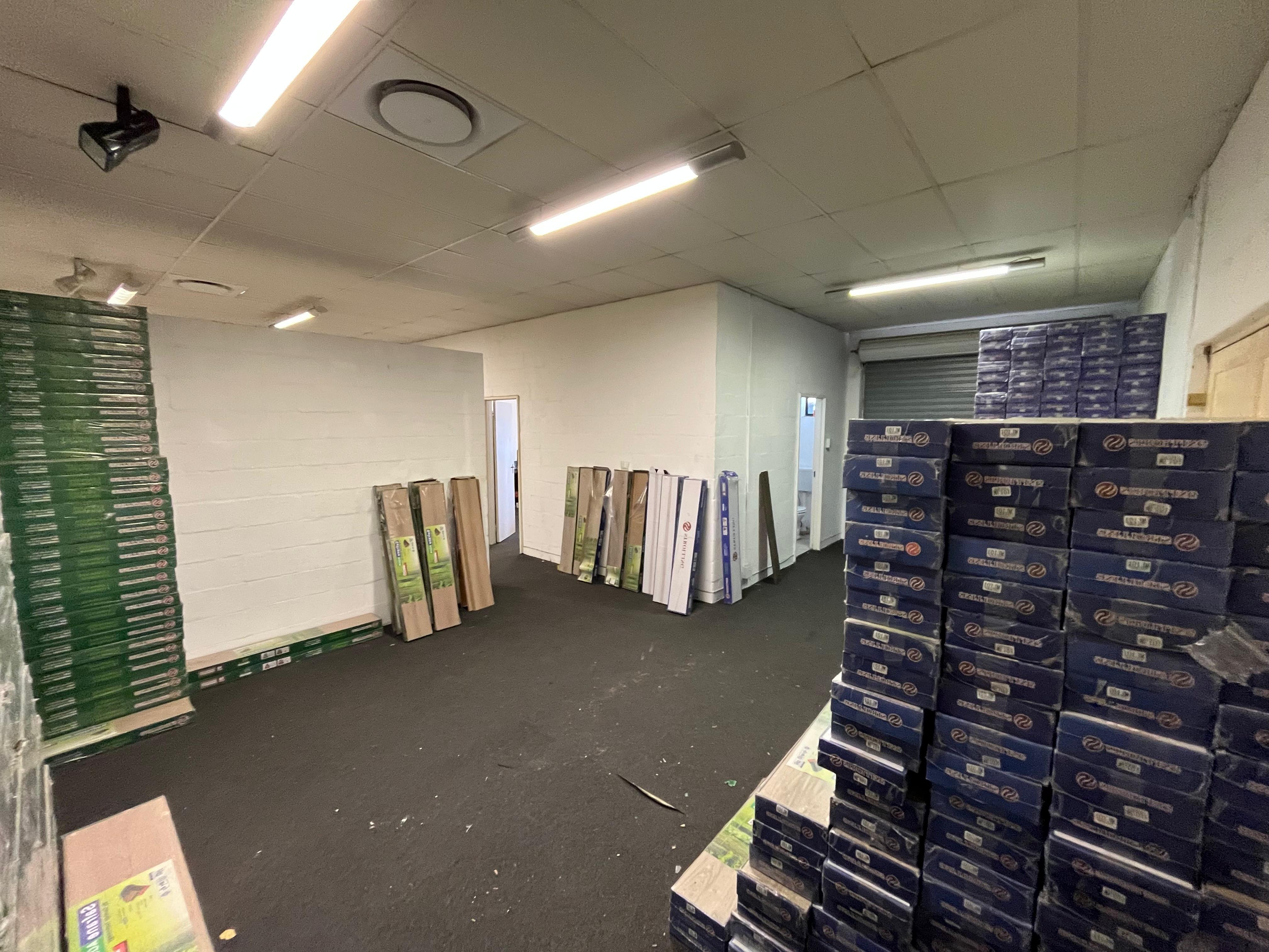 The warehouse features a 2m roller shutter door allowing for smooth loading and dispatch, complemented by a practical internal layout that can be configured for office, showroom, or operational use. Two bathrooms add convenience, including one located in the main walk-in area with a kitchenette, while a second bathroom services the warehouse floor. The unit also offers the option of air-conditioning for added comfort.