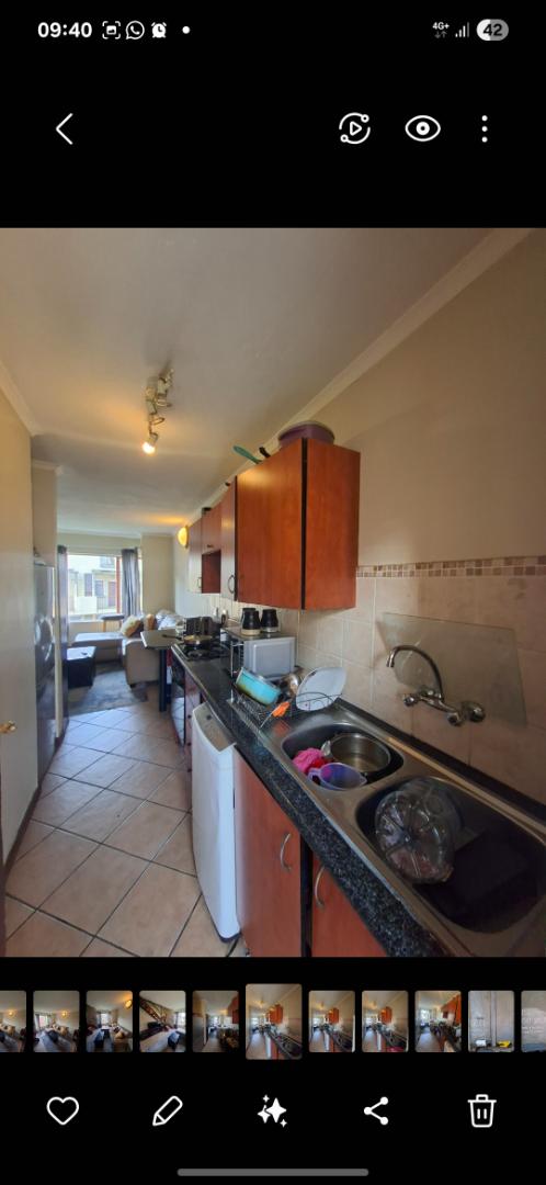 Kitchen fitted with built-in cupboards with granite tops and washing machine space