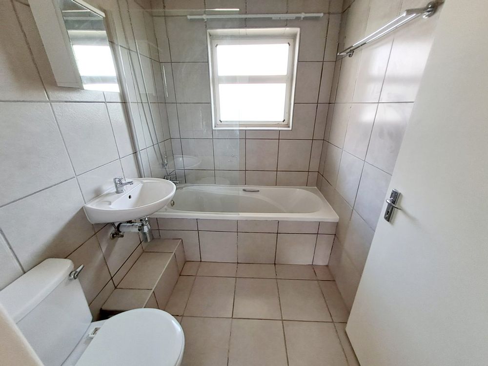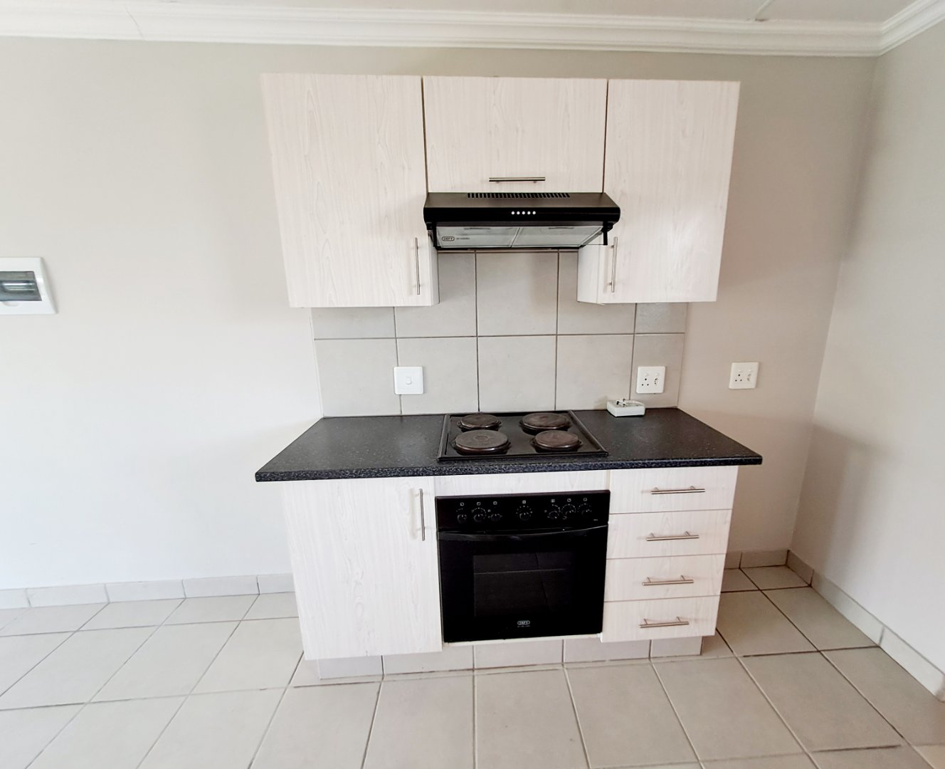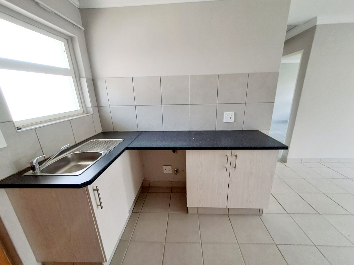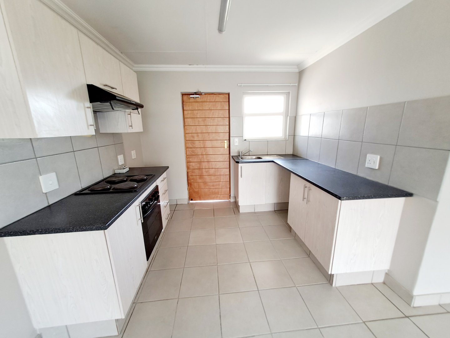 This charming 2-bedroom flat, located on the first floor of Thornbury Gardens in Montana, offers a comfortable and practical living space. The open-plan lounge seamlessly flows into a private balcony that features a built-in braai, perfect for outdoor entertaining and relaxation. The modern kitchen is well-equipped with an extractor fan, oven, hob, and space for a washing machine, providing both functionality and convenience.