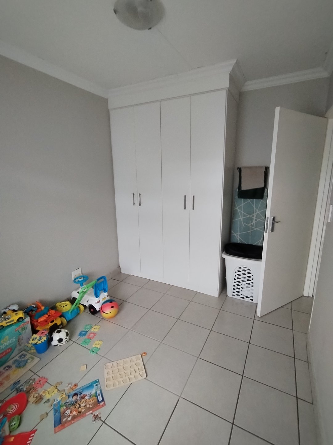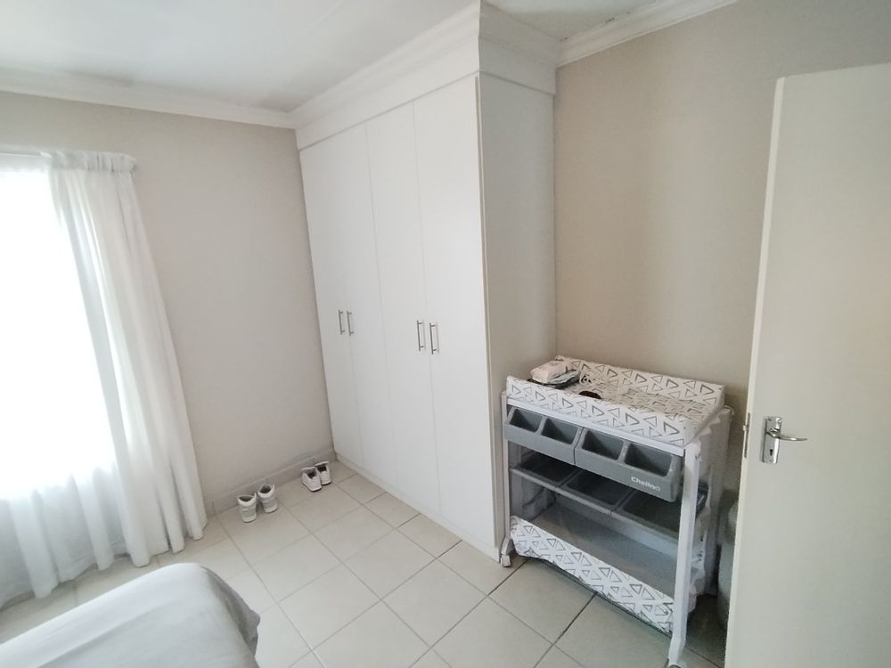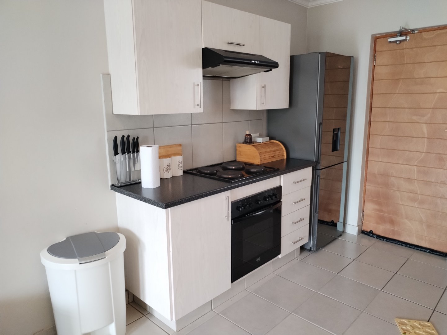 This charming 2-bedroom flat, located on the first floor of Thornbury Gardens in Montana, offers a comfortable and practical living space. The open-plan lounge seamlessly flows into a private balcony that features a built-in braai, perfect for outdoor entertaining and relaxation. The modern kitchen is well-equipped with an extractor fan, oven, hob, and space for a washing machine, providing both functionality and convenience.