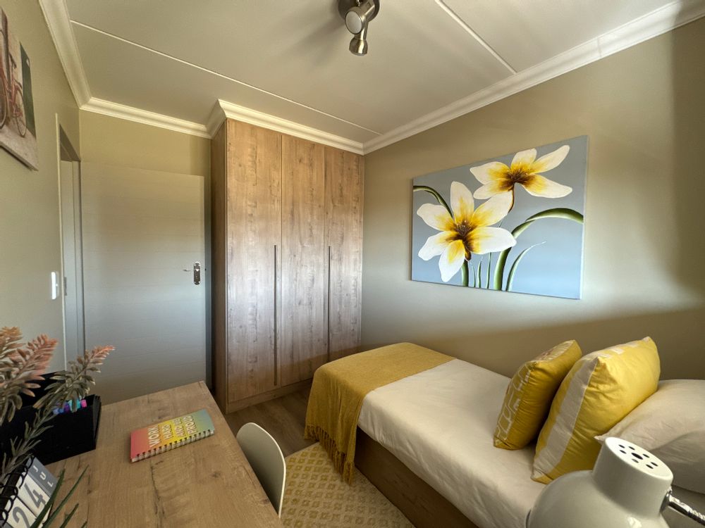 Discover modern living at its finest in this spacious 3-bedroom apartment, situated in the secure and eco-friendly Roodepark Eco City 2. Designed for comfort and style, this home features an open-plan kitchen and lounge, creating a seamless flow that's perfect for both everyday living and entertaining. The kitchen is equipped with modern finishes and plenty of storage, making meal preparation a delight. It opens up to the spacious lounge area, where you can relax and unwind in a bright and airy space. Step out onto the small balcony, a versatile area perfect for having a small barbecue, sipping your morning coffee and enjoying quiet moments year-round. This cozy outdoor space offers a private retreat within your home. Set within a secure and eco-friendly environment, this apartment offers peace of mind and access to the community's amenities, making it an ideal choice for modern living. Don't miss out on the opportunity to own this stylish and convenient apartment.