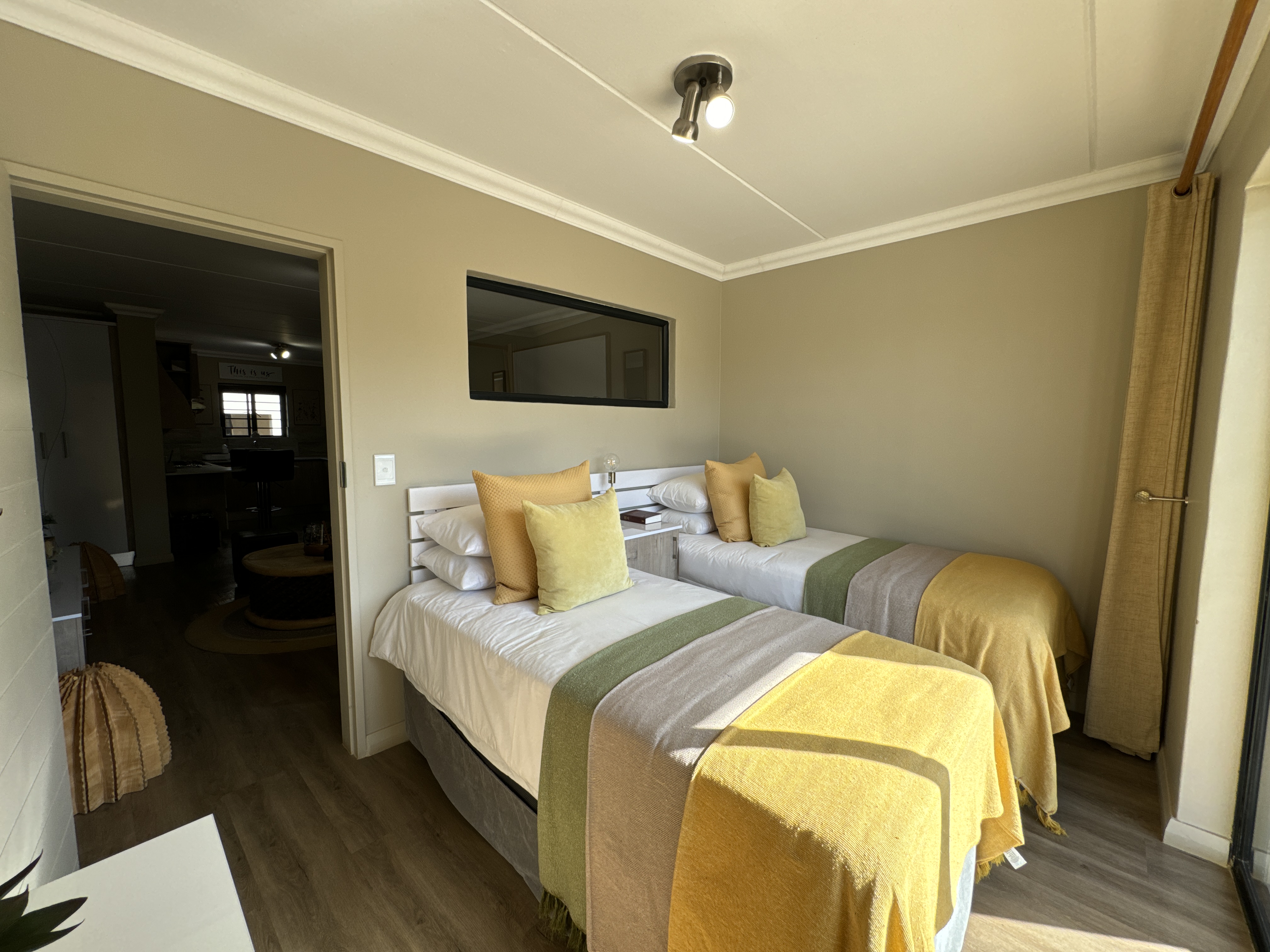 Discover modern living at its finest in this spacious 3-bedroom apartment, situated in the secure and eco-friendly Roodepark Eco City 2. Designed for comfort and style, this home features an open-plan kitchen and lounge, creating a seamless flow that's perfect for both everyday living and entertaining. The kitchen is equipped with modern finishes and plenty of storage, making meal preparation a delight. It opens up to the spacious lounge area, where you can relax and unwind in a bright and airy space. Step out onto the small balcony, a versatile area perfect for having a small barbecue, sipping your morning coffee and enjoying quiet moments year-round. This cozy outdoor space offers a private retreat within your home. Set within a secure and eco-friendly environment, this apartment offers peace of mind and access to the community's amenities, making it an ideal choice for modern living. Don't miss out on the opportunity to own this stylish and convenient apartment.