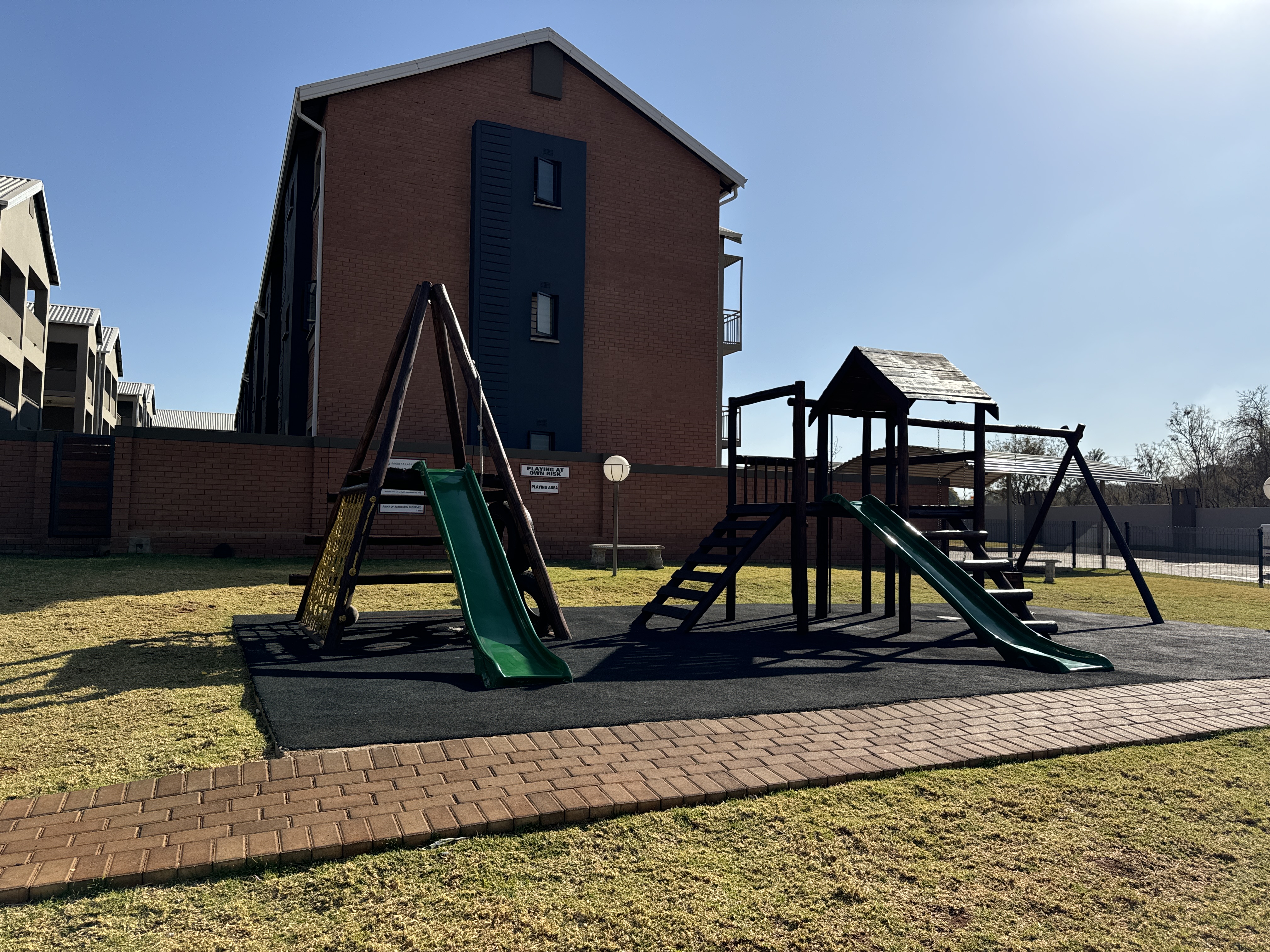 -Green play areas with communal braais & jungle gym.