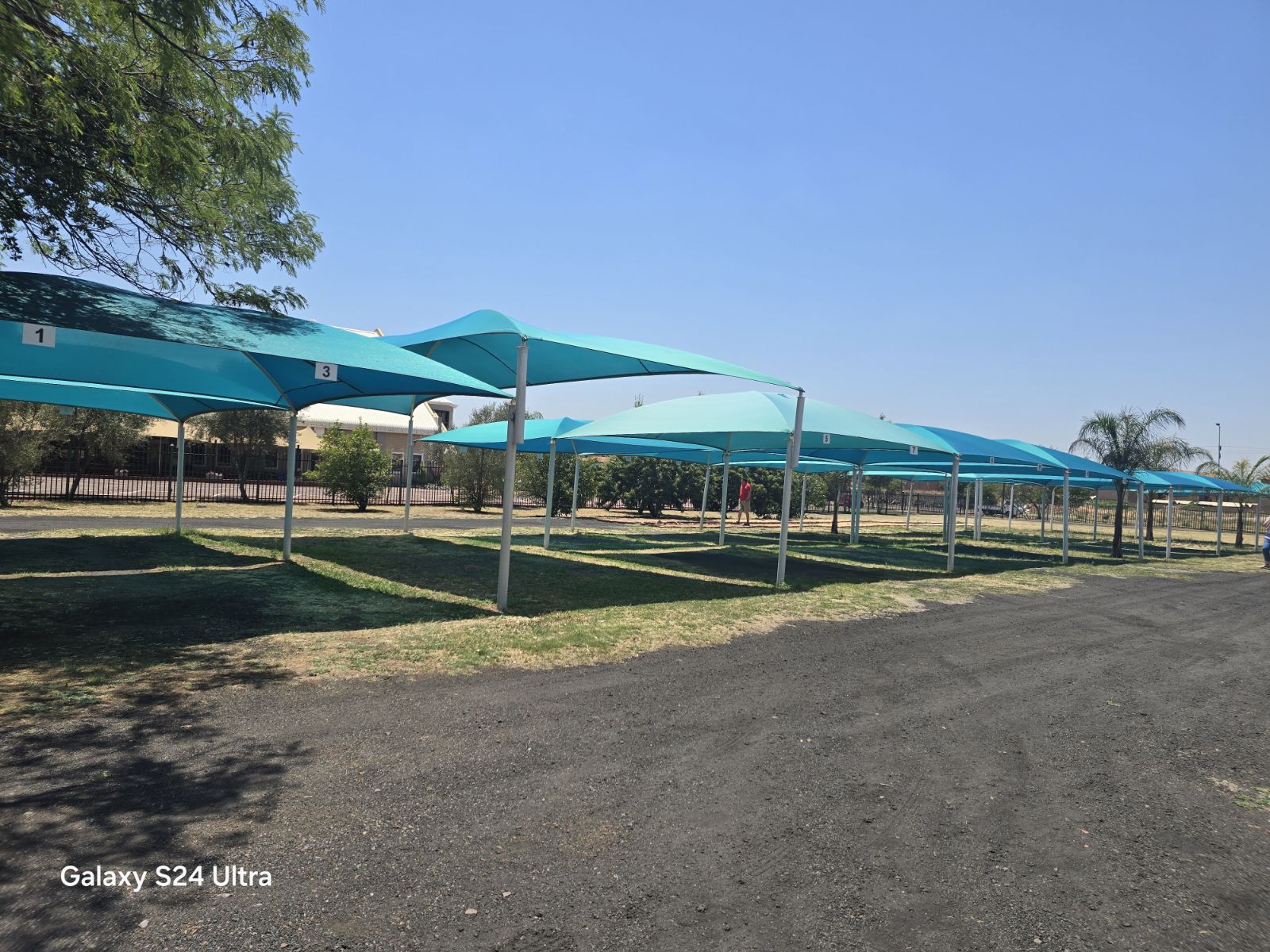 The building includes shaded carports in the parking area, providing shelter for employee vehicles from sun and weather.