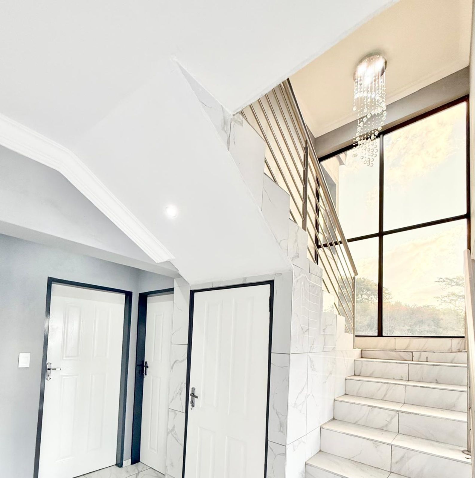 -Upstairs you are welcomed by classy chandelier which takes you to the four bedrooms and bathrooms upstairs.