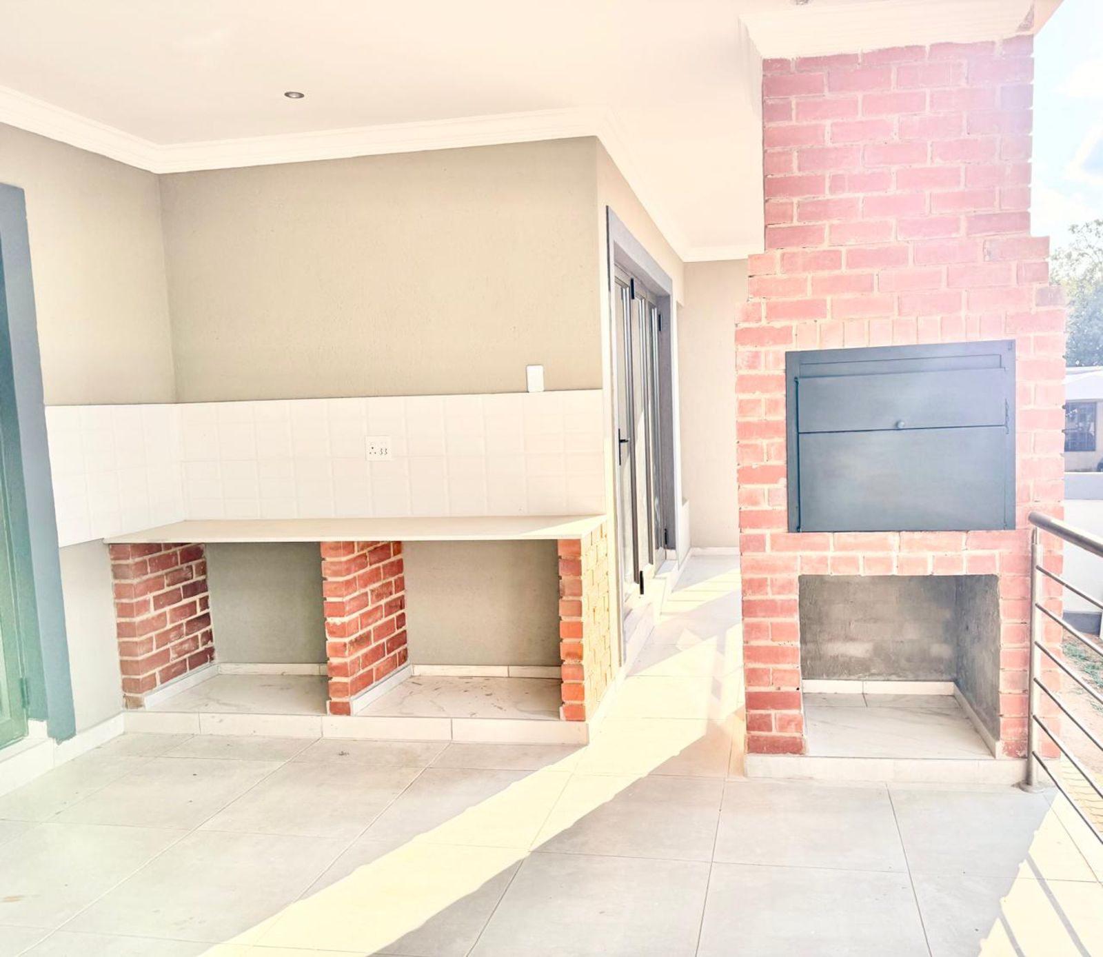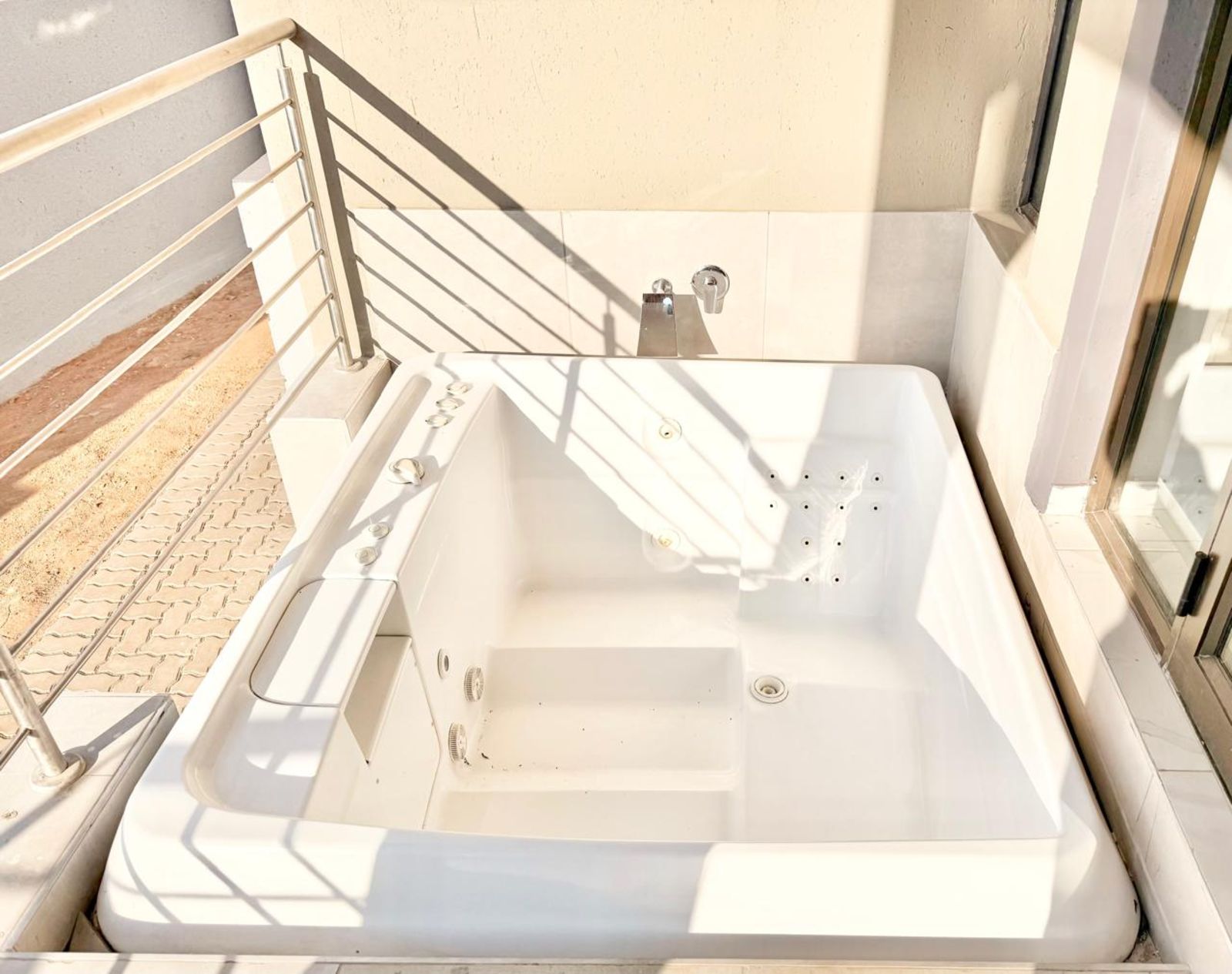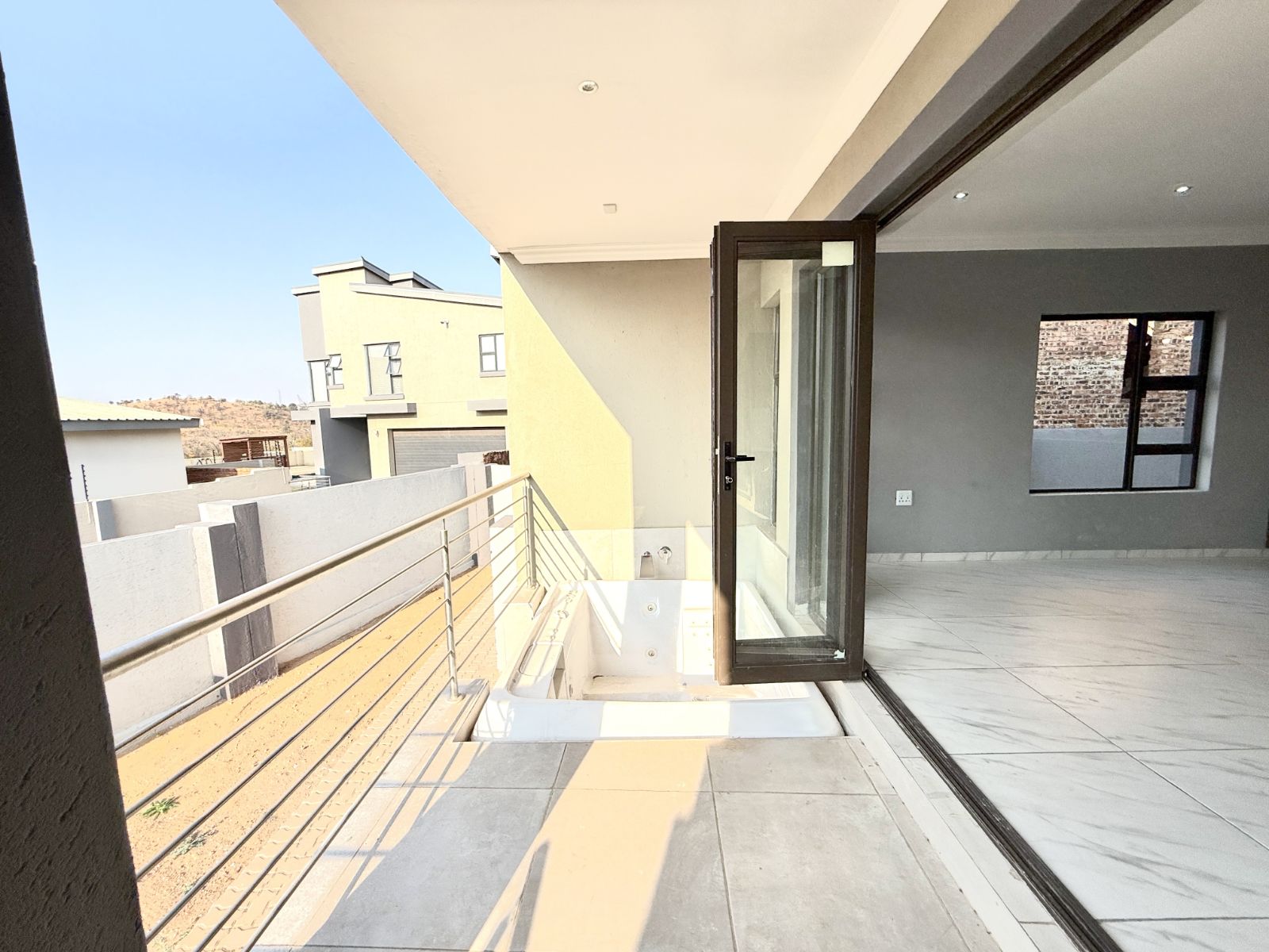 -As you open the sliding doors of your lounge you are welcomed with a jacuzzi on the one sliding door and a braai place on the other.