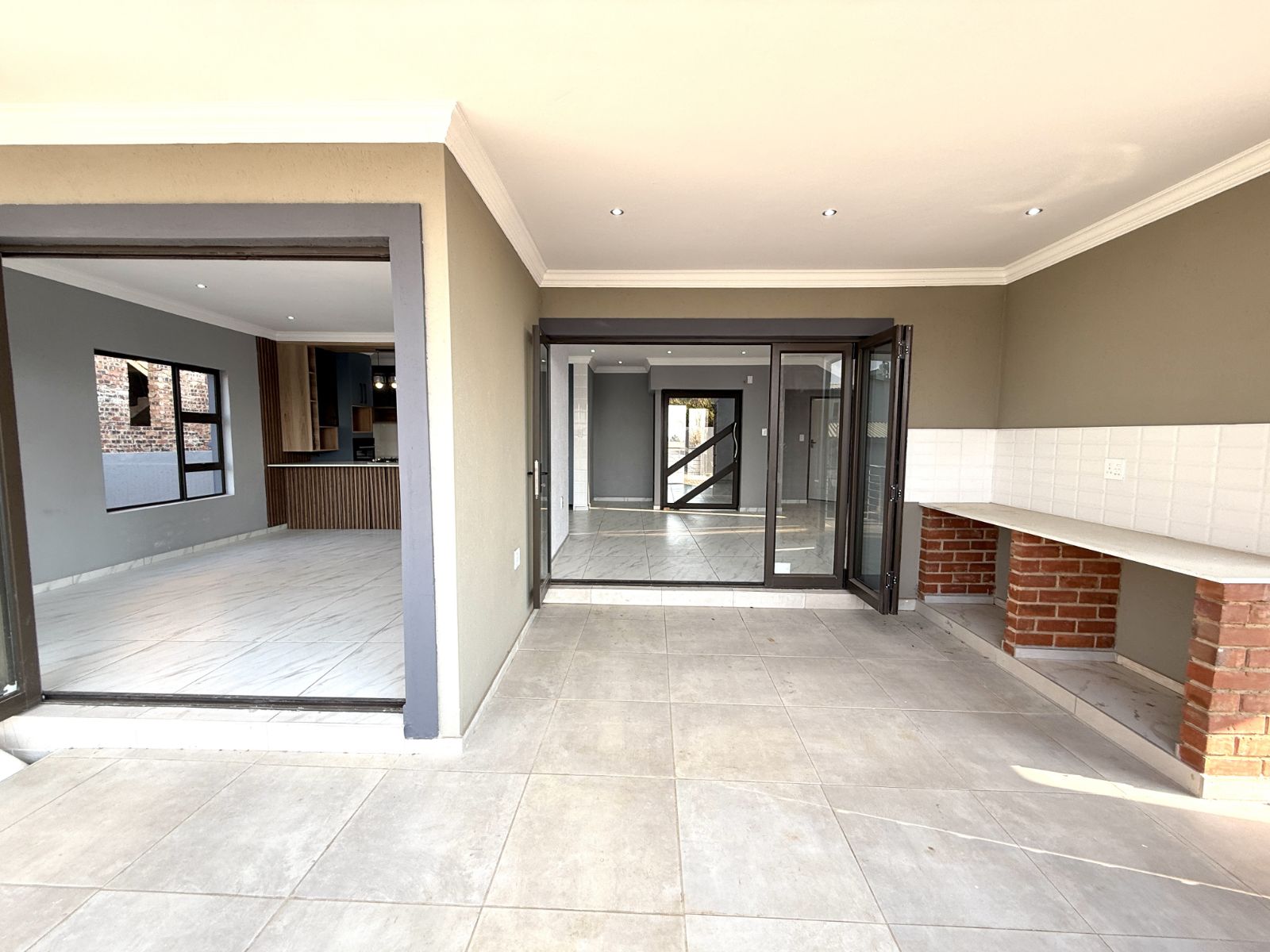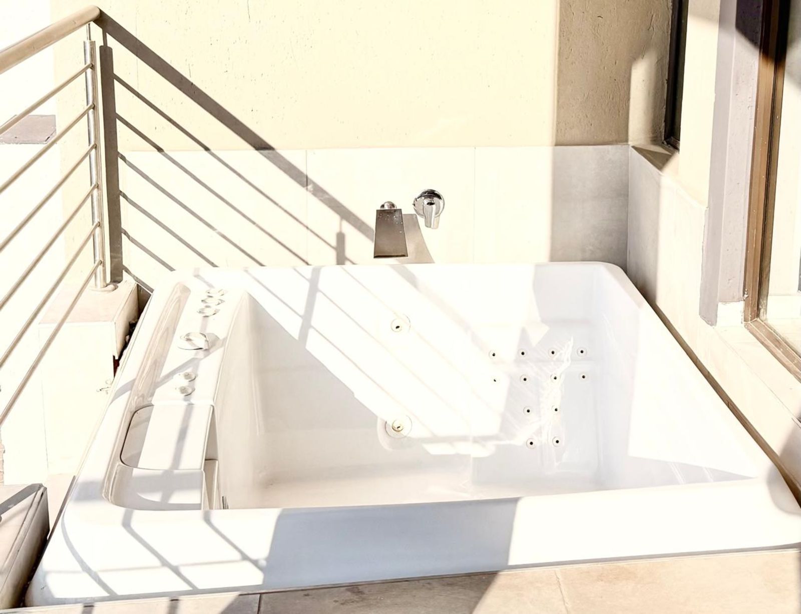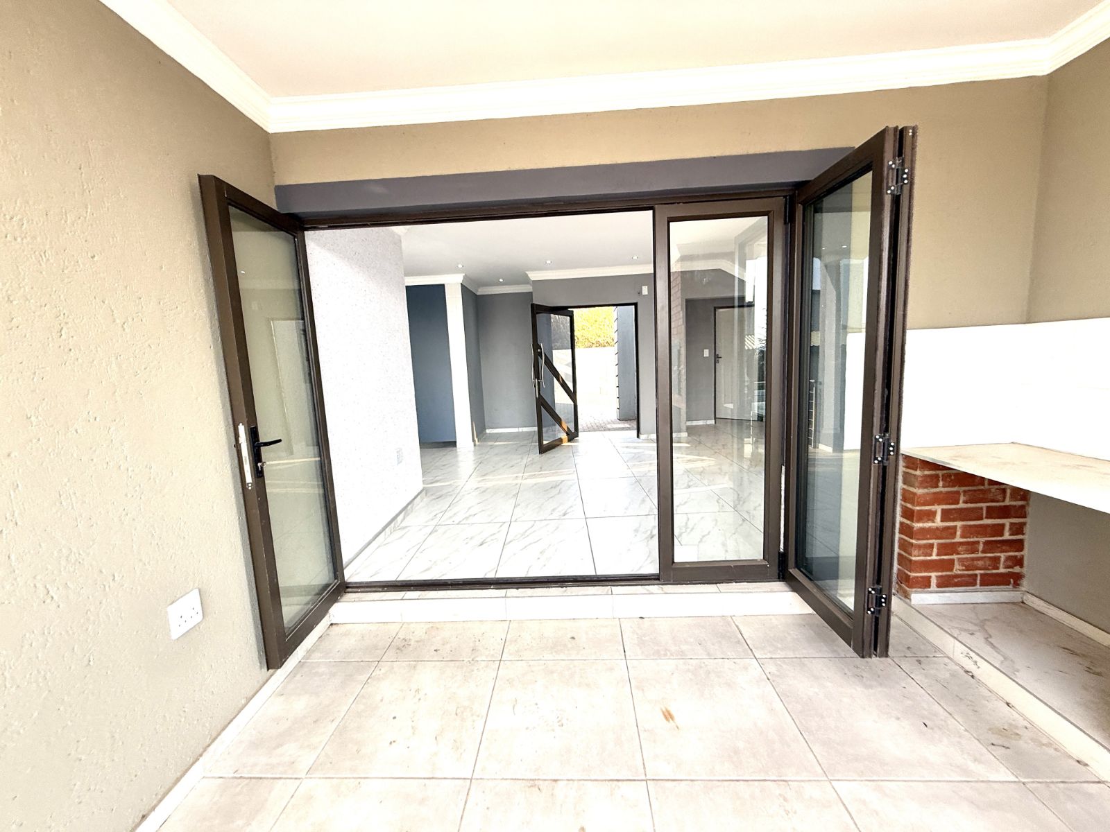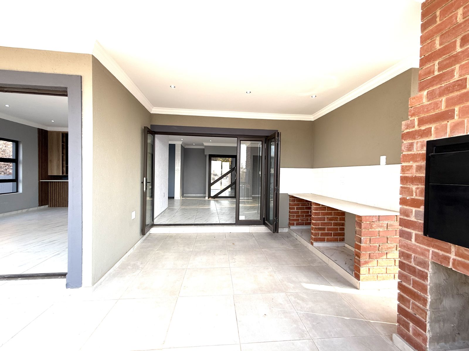 -As you open the sliding doors of your lounge you are welcomed with a jacuzzi on the one sliding door and a braai place on the other.