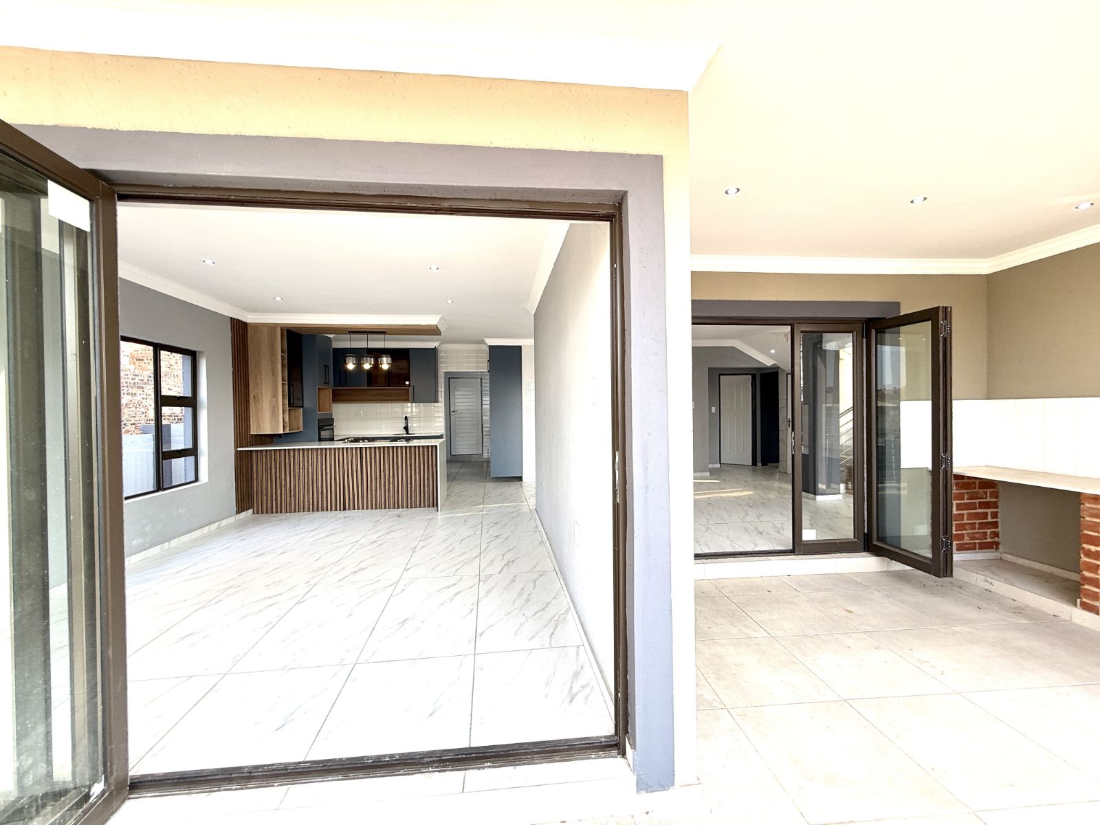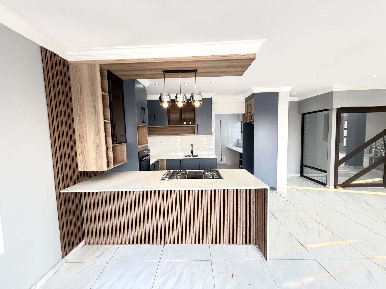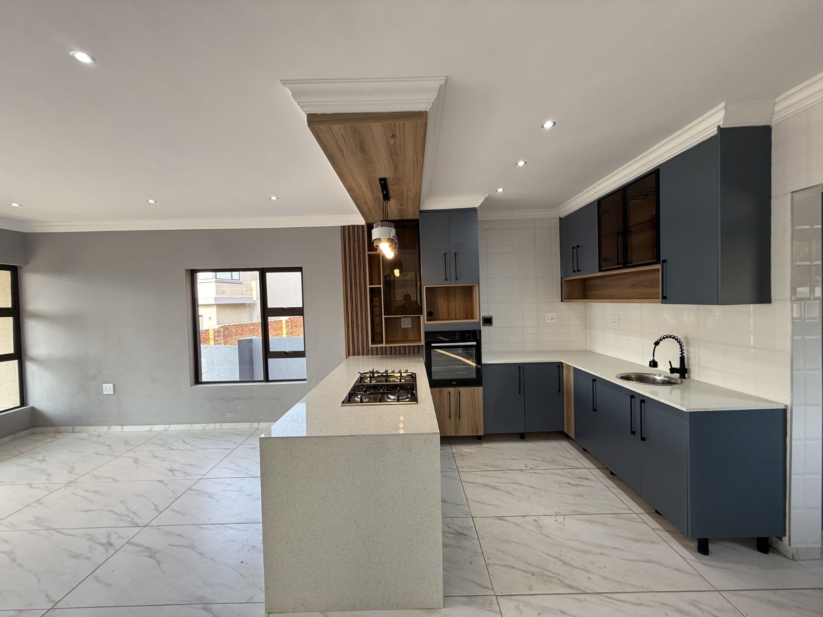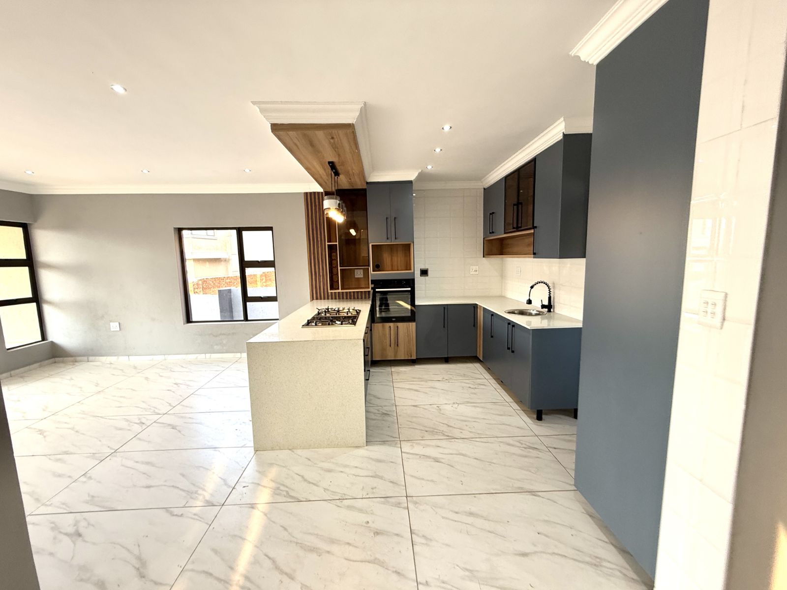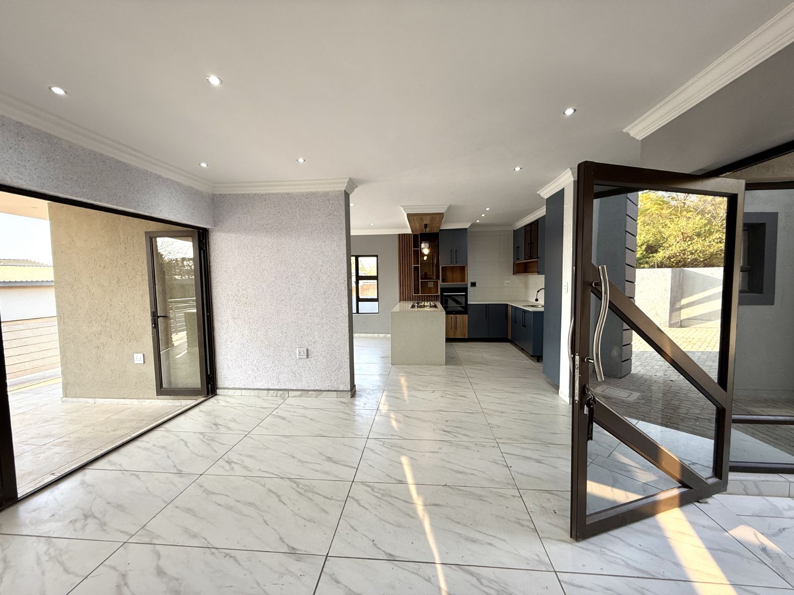 -The entrance of the home welcomes you with an open plan living two lounges with a guest bathroom and bedroom , a modern kitchen with stunning breathe-taking finishes.