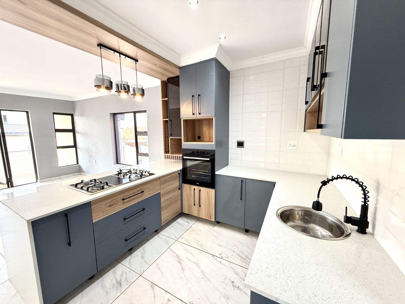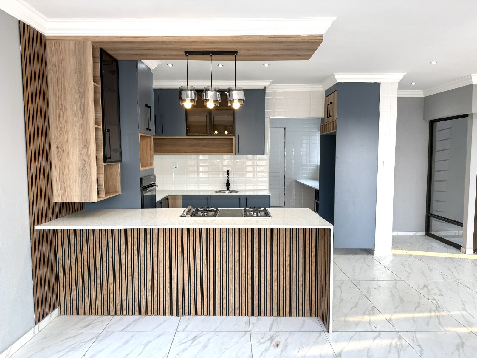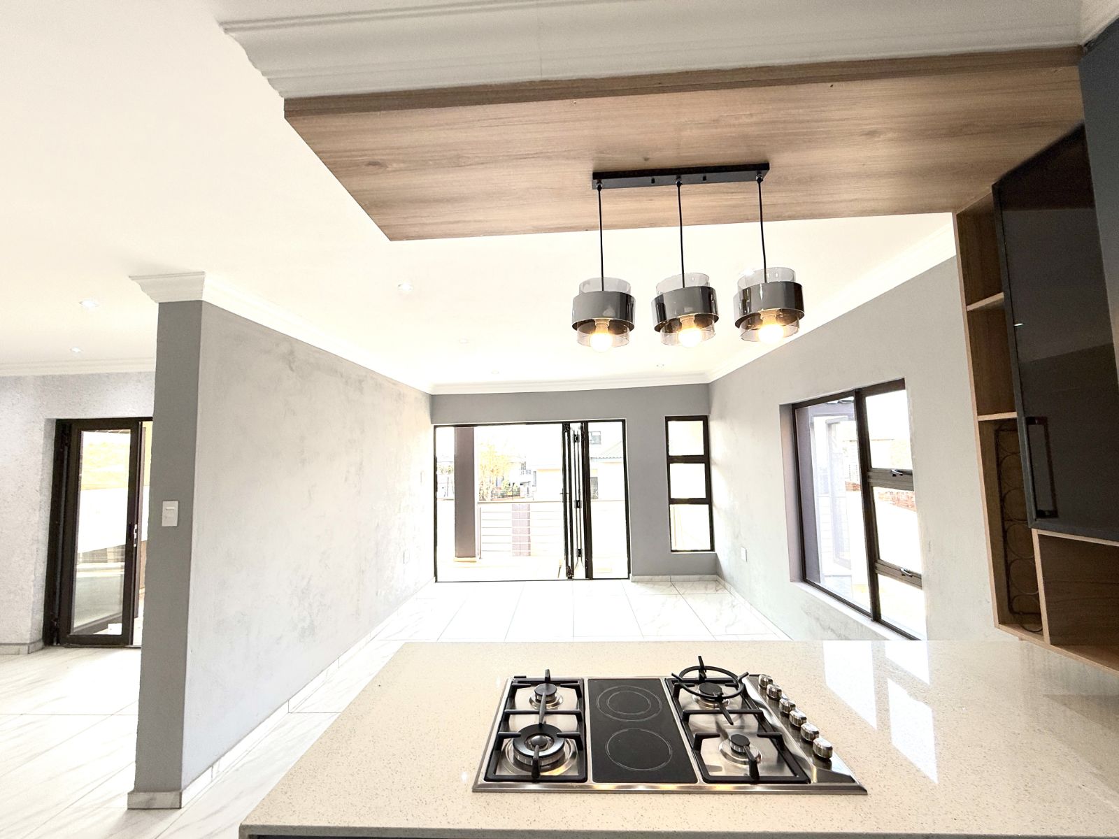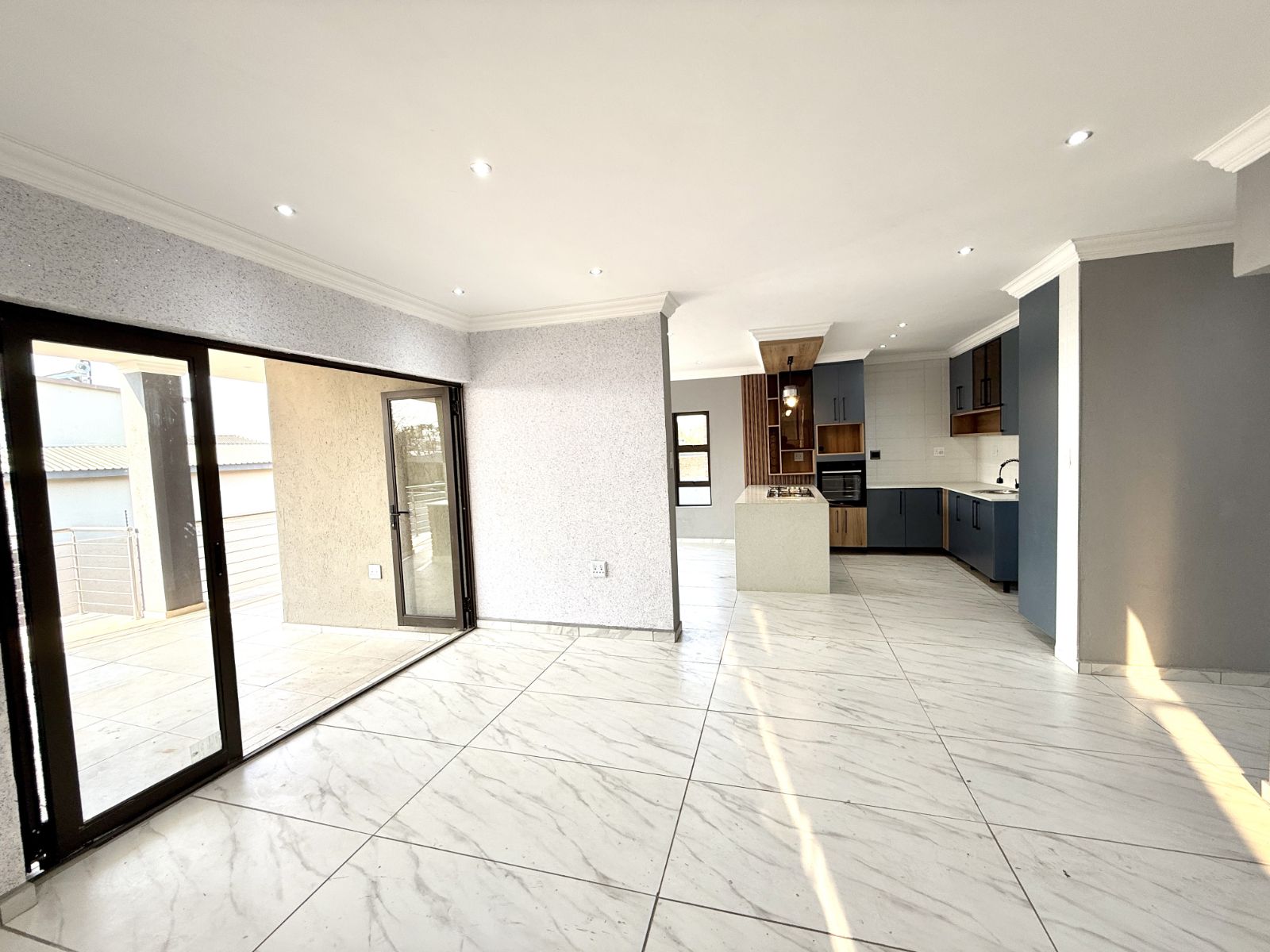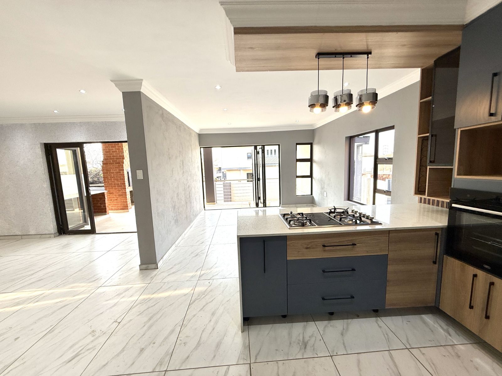 -The entrance of the home welcomes you with an open plan living two lounges with a guest bathroom and bedroom , a modern kitchen with stunning breathe-taking finishes.