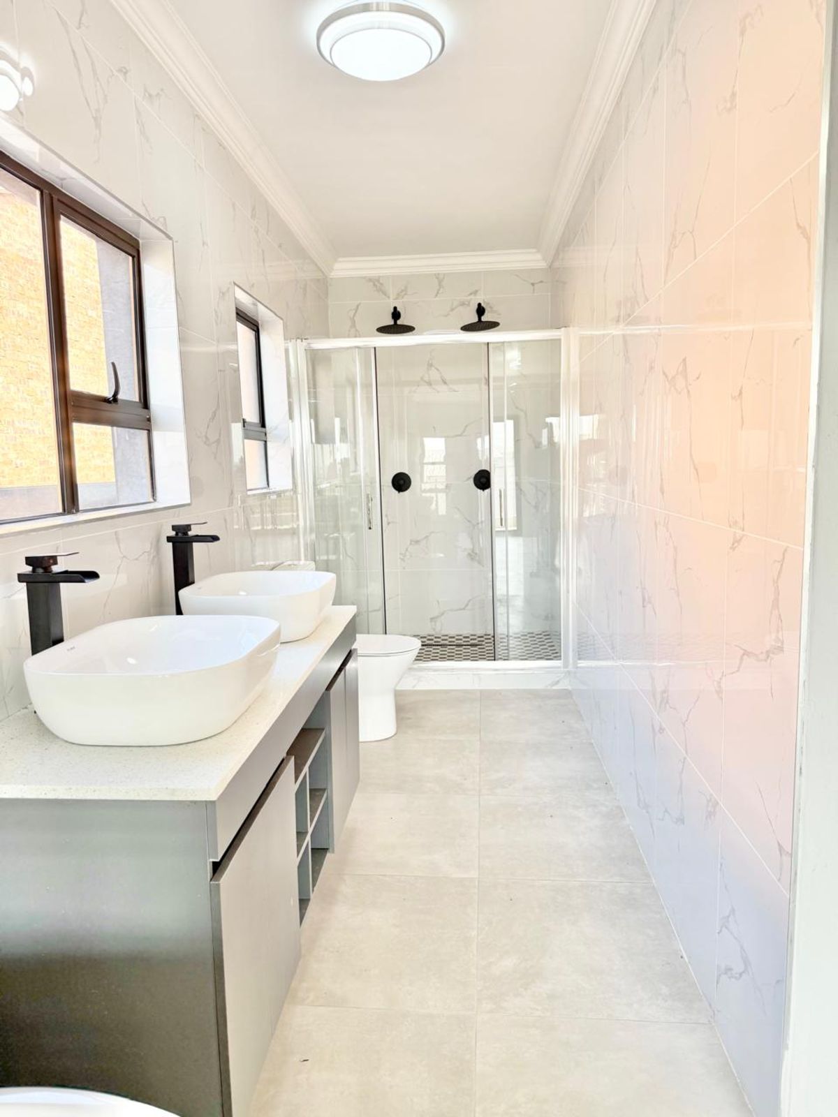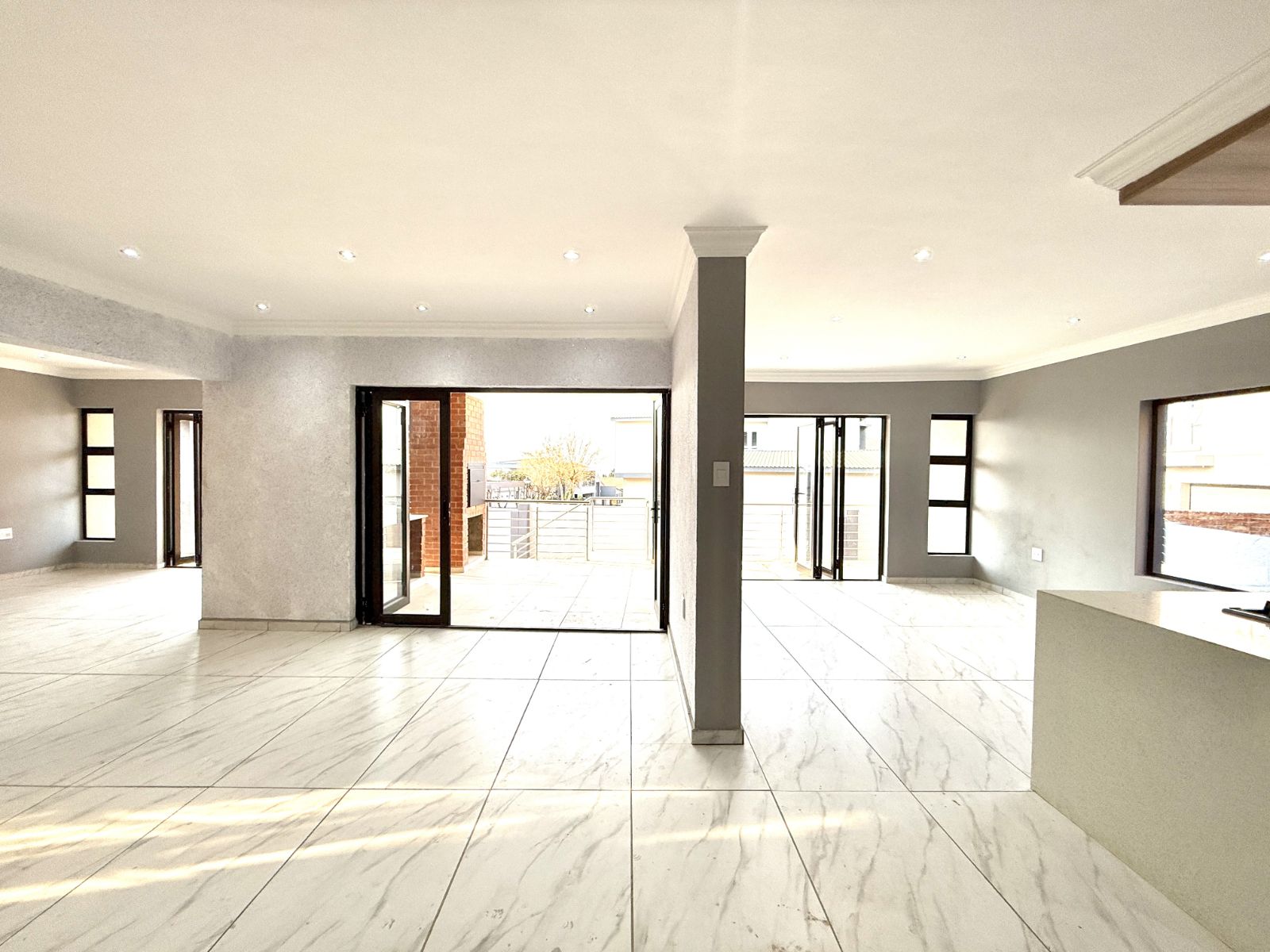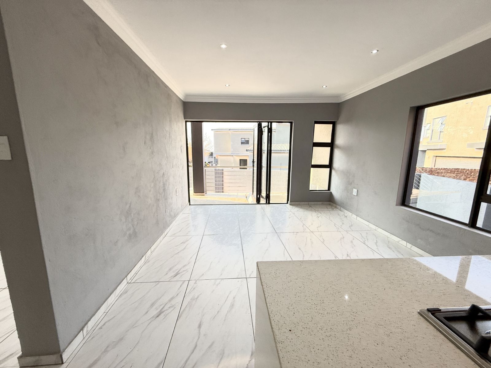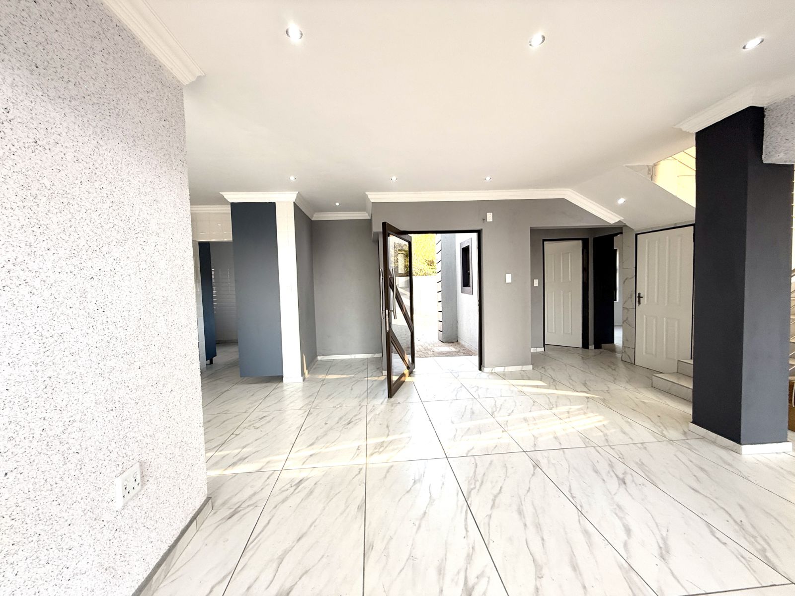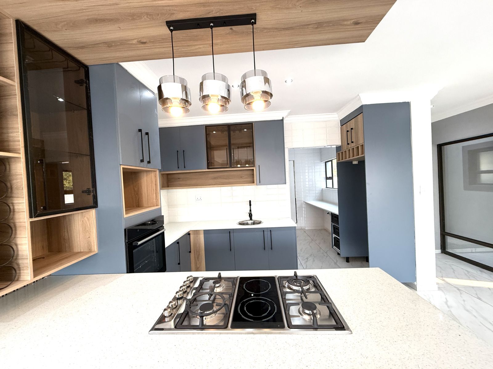 -The entrance of the home welcomes you with an open plan living two lounges with a guest bathroom and bedroom , a modern kitchen with stunning breathe-taking finishes.