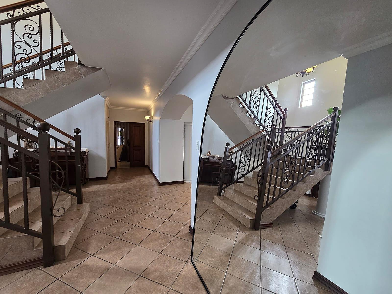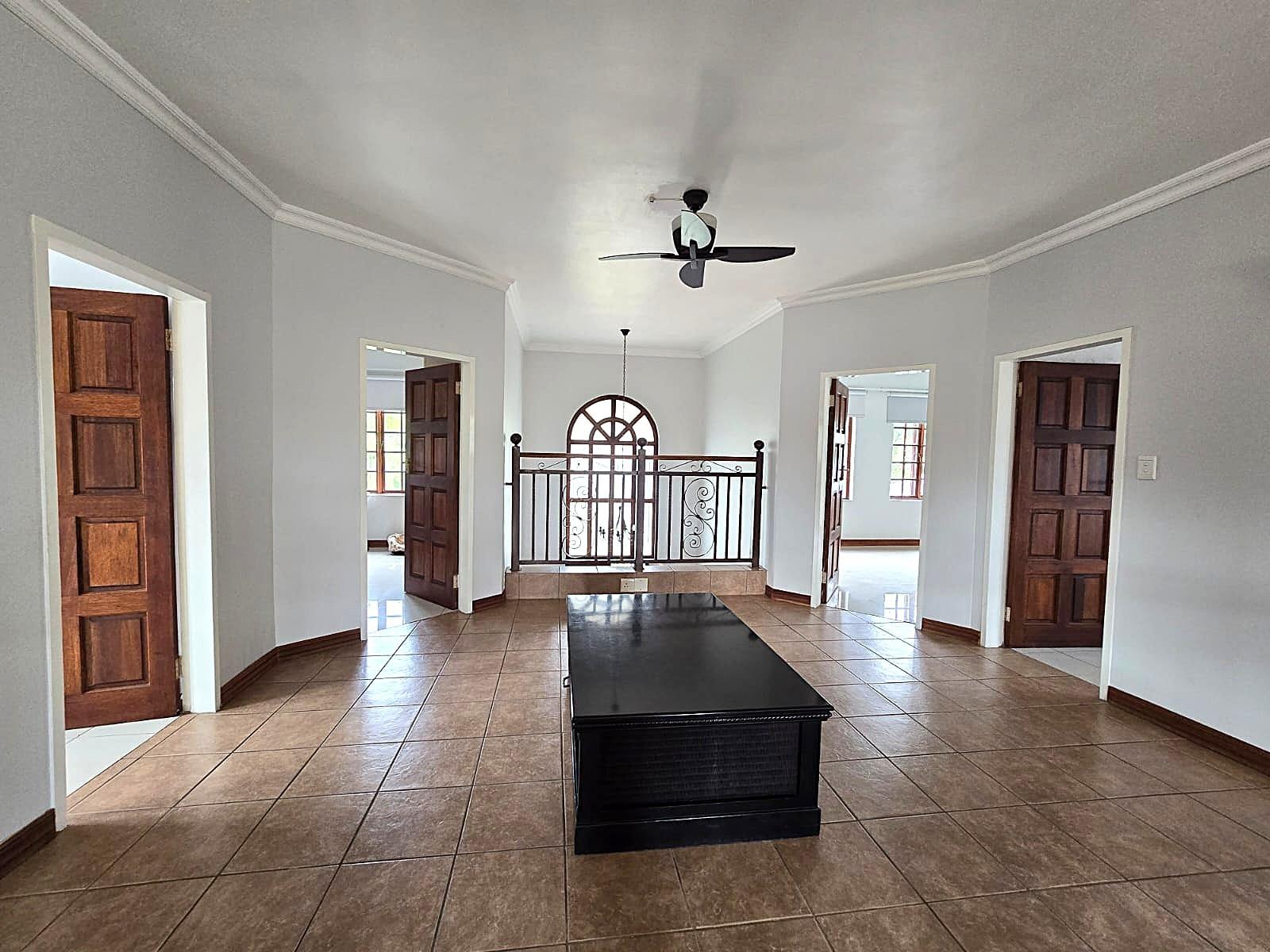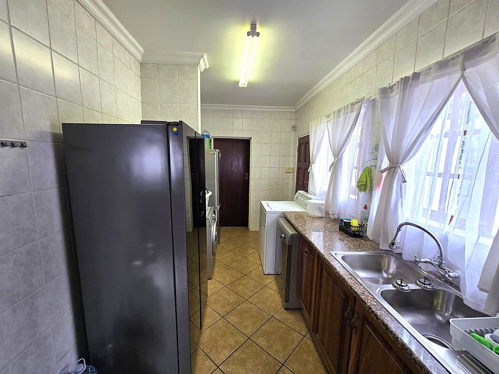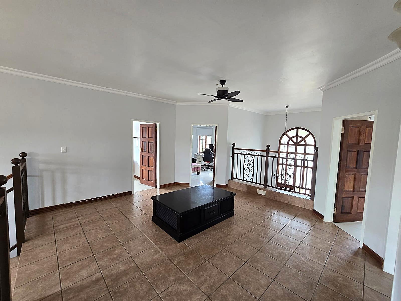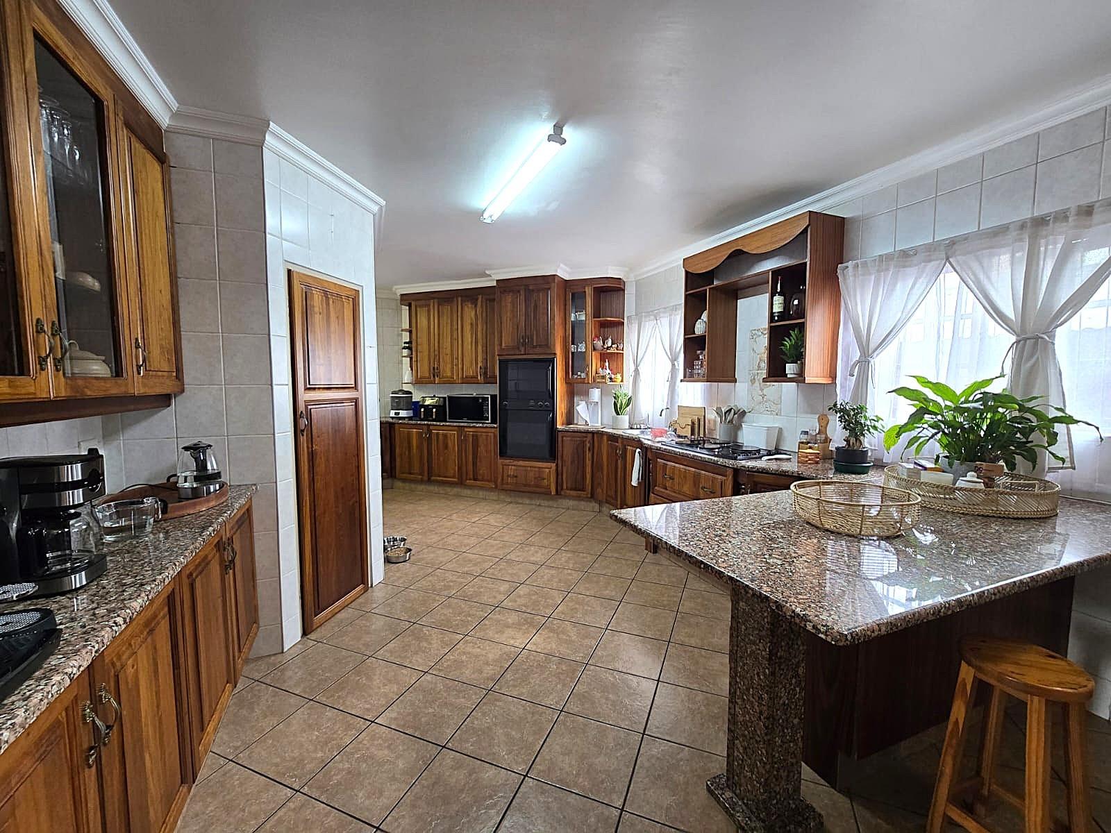 Additional features include double automated garages, extra guest parking, a domestic bathroom, built-in braai, fibre connectivity, irrigation system, tiled floors, built-in cupboards, and excellent security throughout.