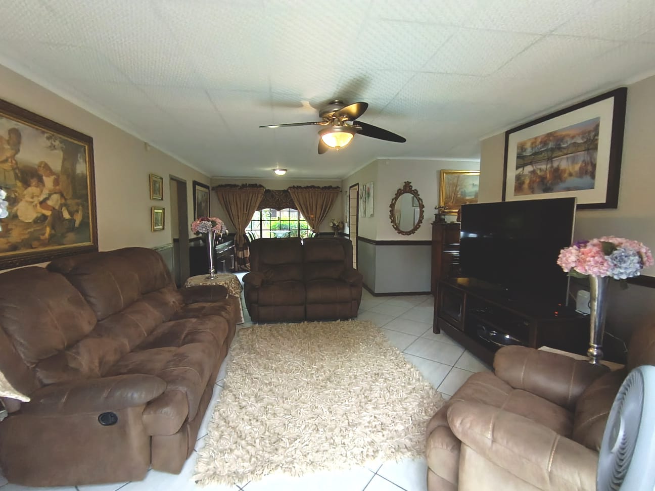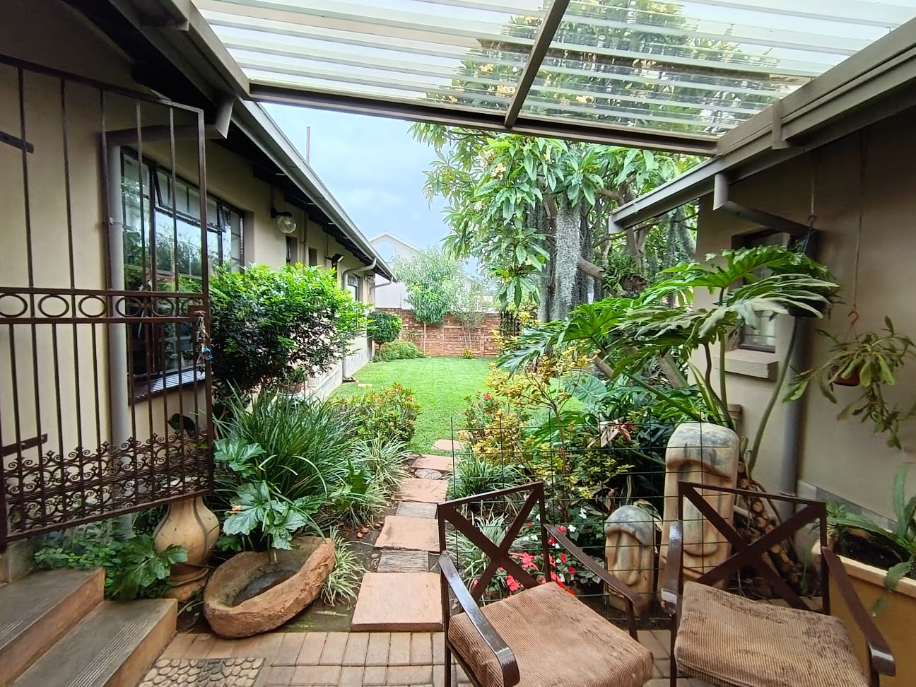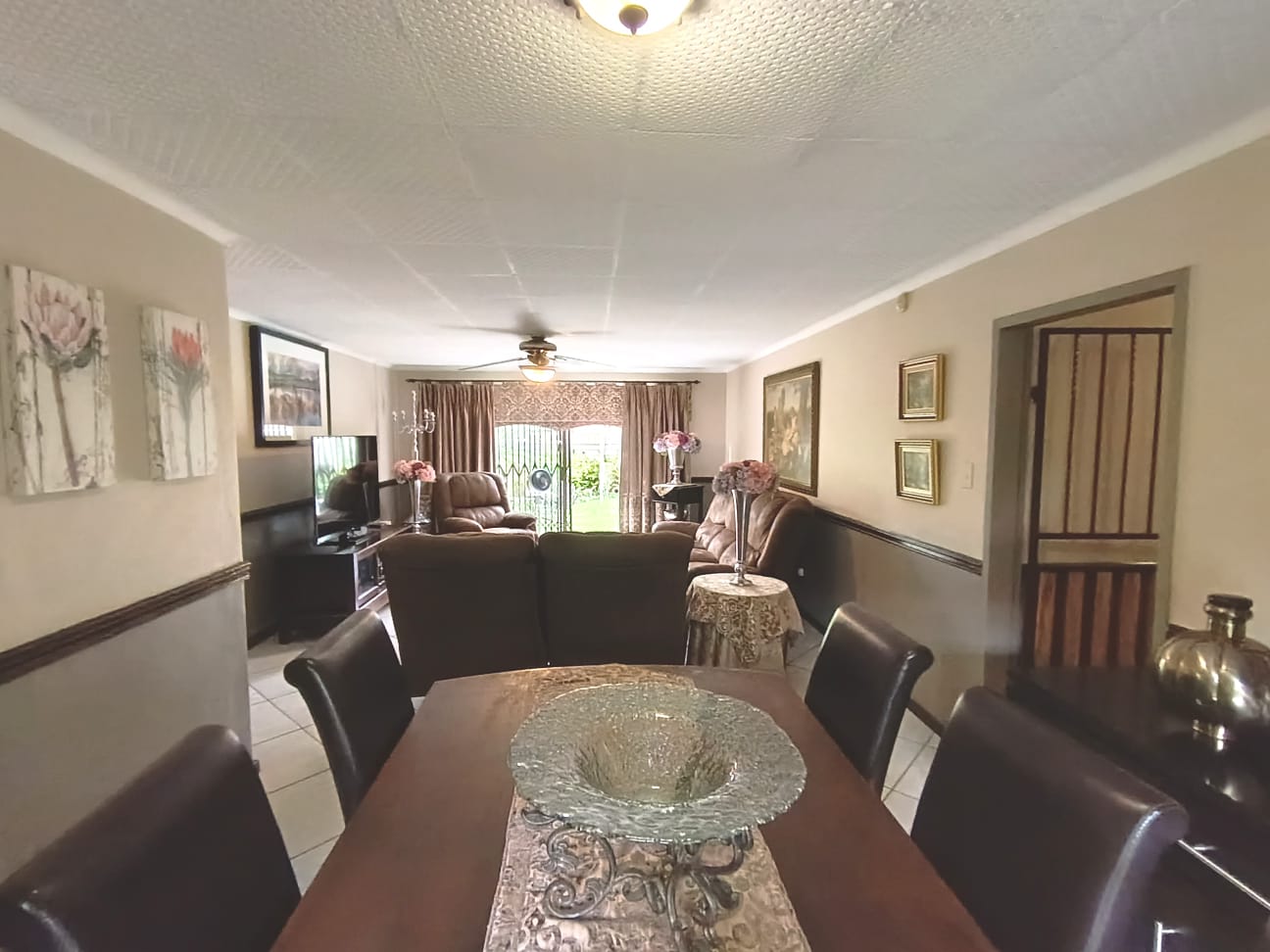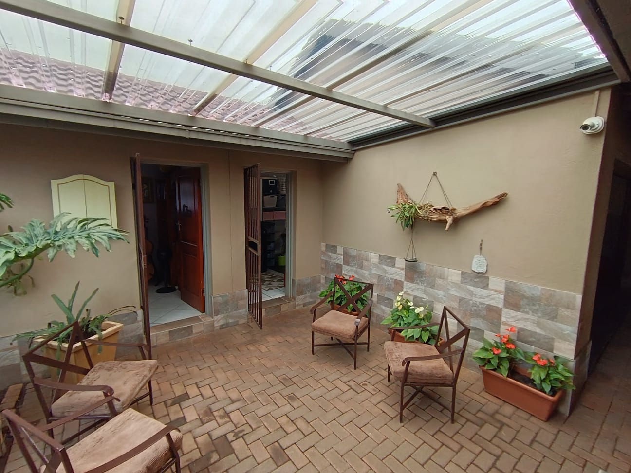 Designed for relaxed family living and easy entertaining, two of the bedrooms open onto an enclosed patio that extends the living area and overlooks a sparkling swimming pool. The outdoor space is complete with a built-in braai, making it ideal for hosting and everyday enjoyment. Additional extras include a Wendy hut for garden storage, a borehole with certified drinking water supplying the home, and excellent parking with a double garage and double carport. This is a home filled with warmth, pride of ownership, and a lifestyle that invites you to stay.