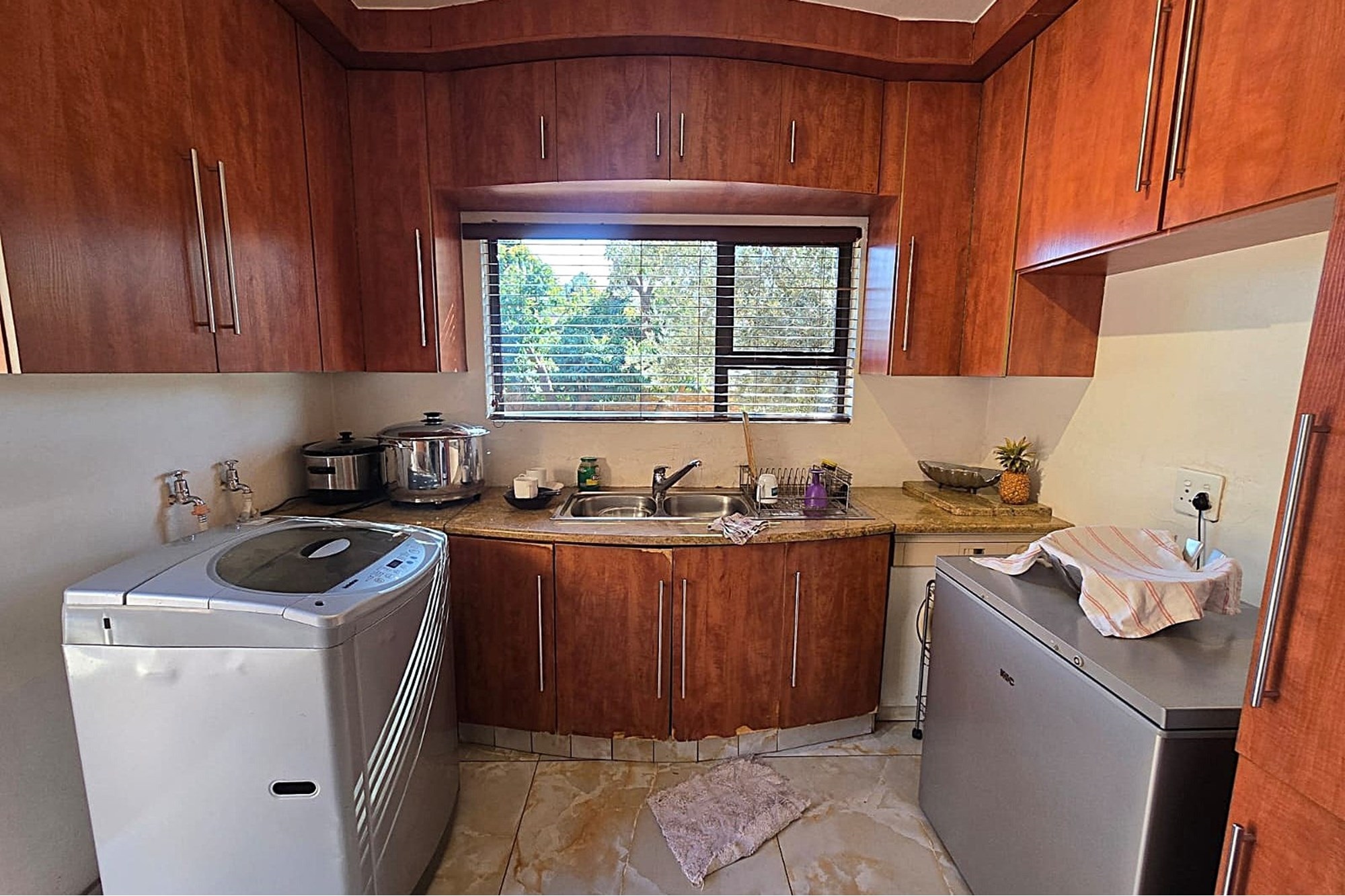 Bedroom & separate Bathroom: One spacious bedroom with a separate bathroom, ideal for guests.