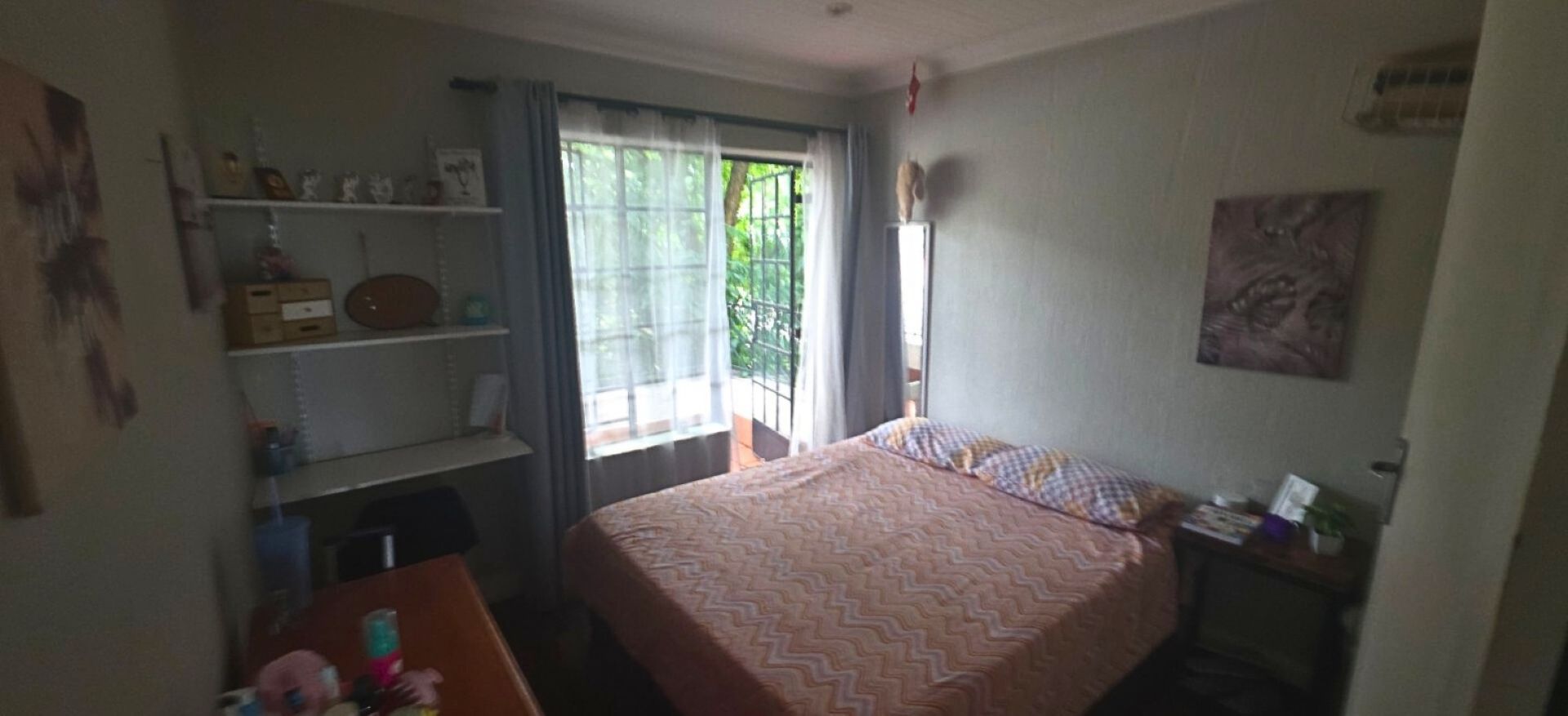 The main bedroom is a true retreat, complete with air conditioning, a walk-in closet, an en-suite bathroom, and a private balcony. Two additional well-sized bedrooms are serviced by a second bathroom, ensuring comfort for family and guests alike.