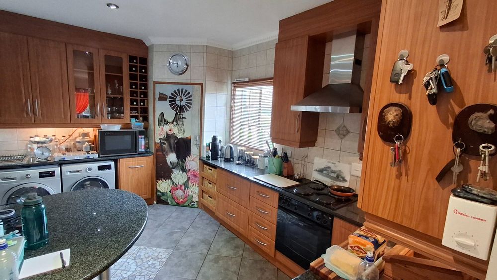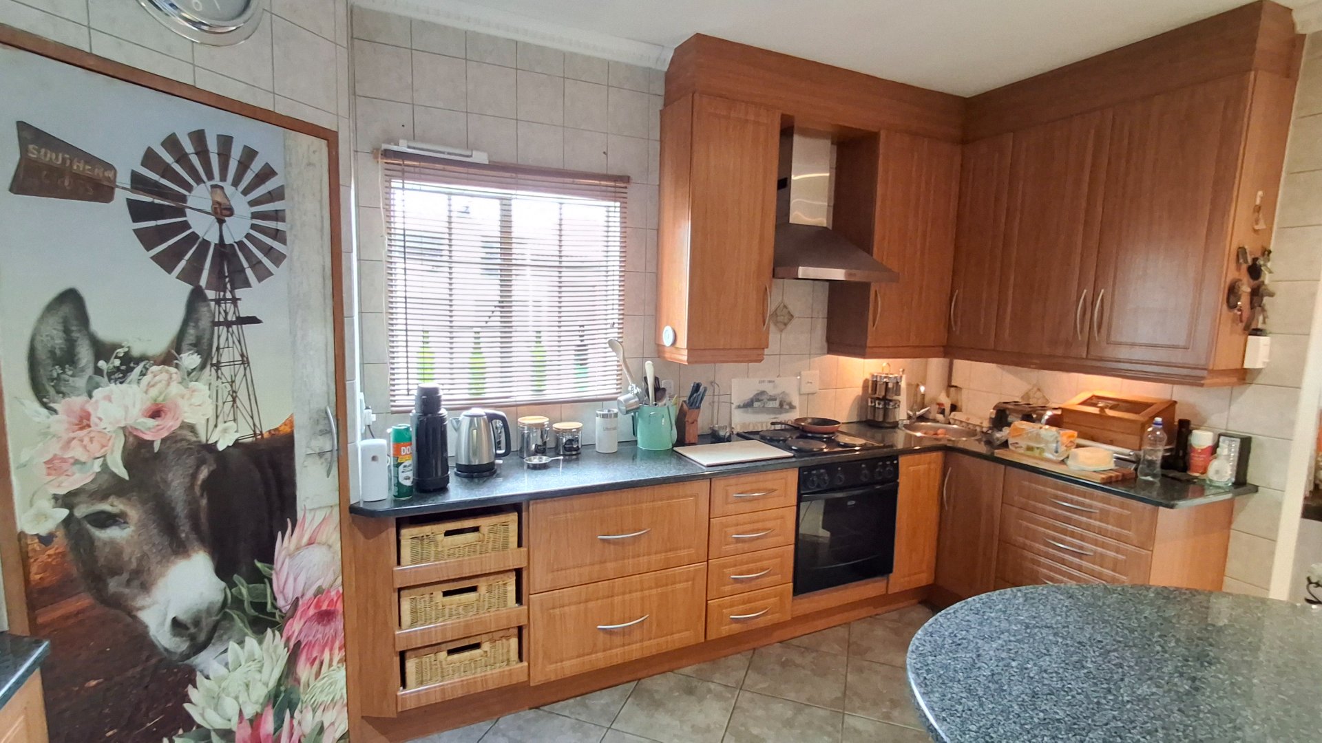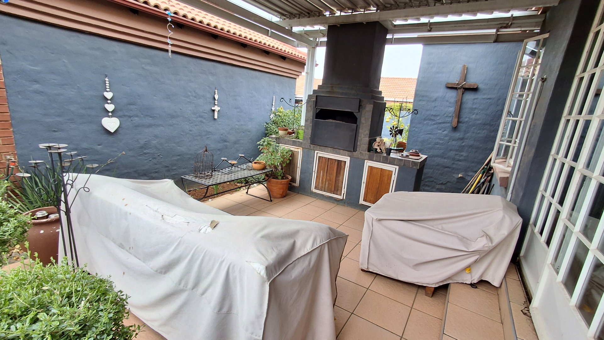 As you enter the expansive living areas, you'll be greeted by the seamless connection to a cozy patio, perfect for alfresco dining and outdoor entertaining. The louvre deck roof provides the perfect shelter, while the built-in braai invites you to gather with friends and family for memorable gatherings.