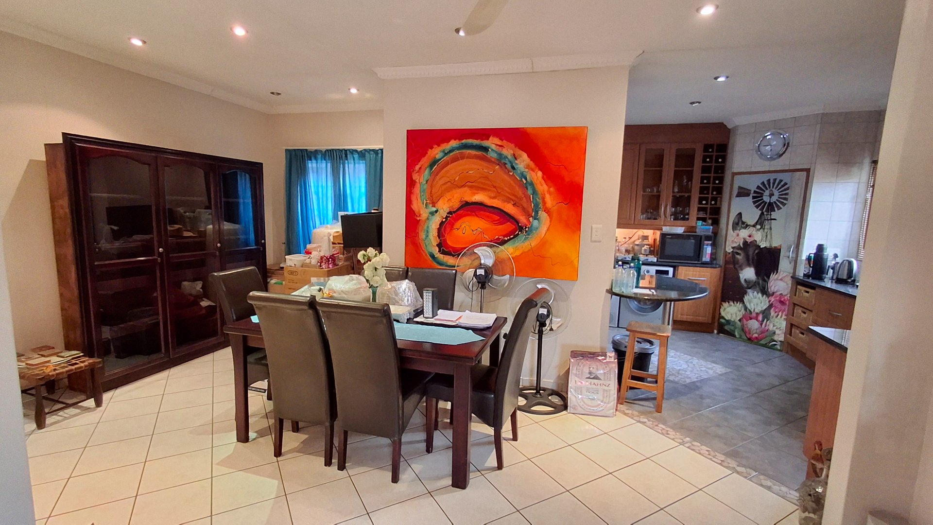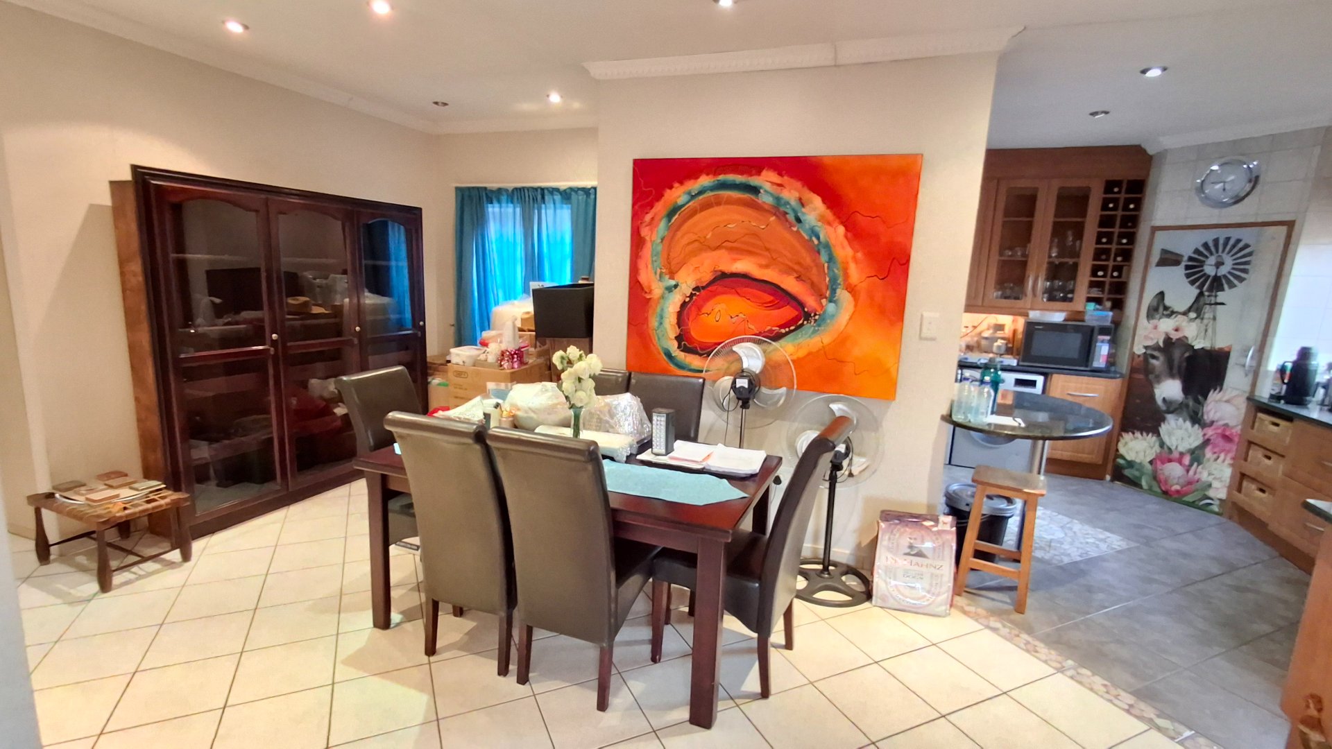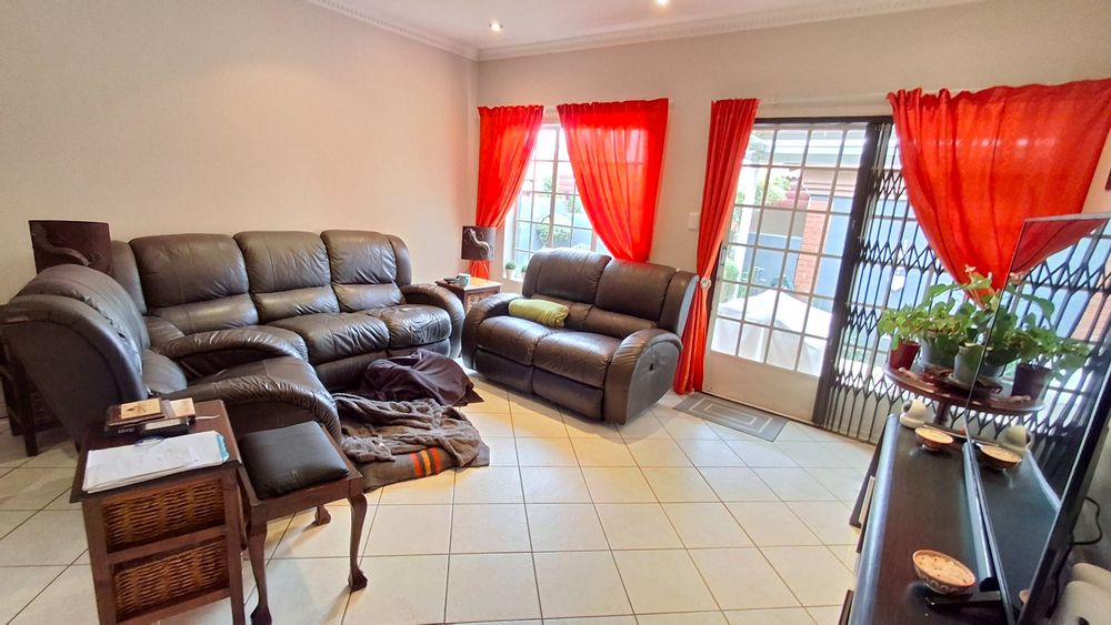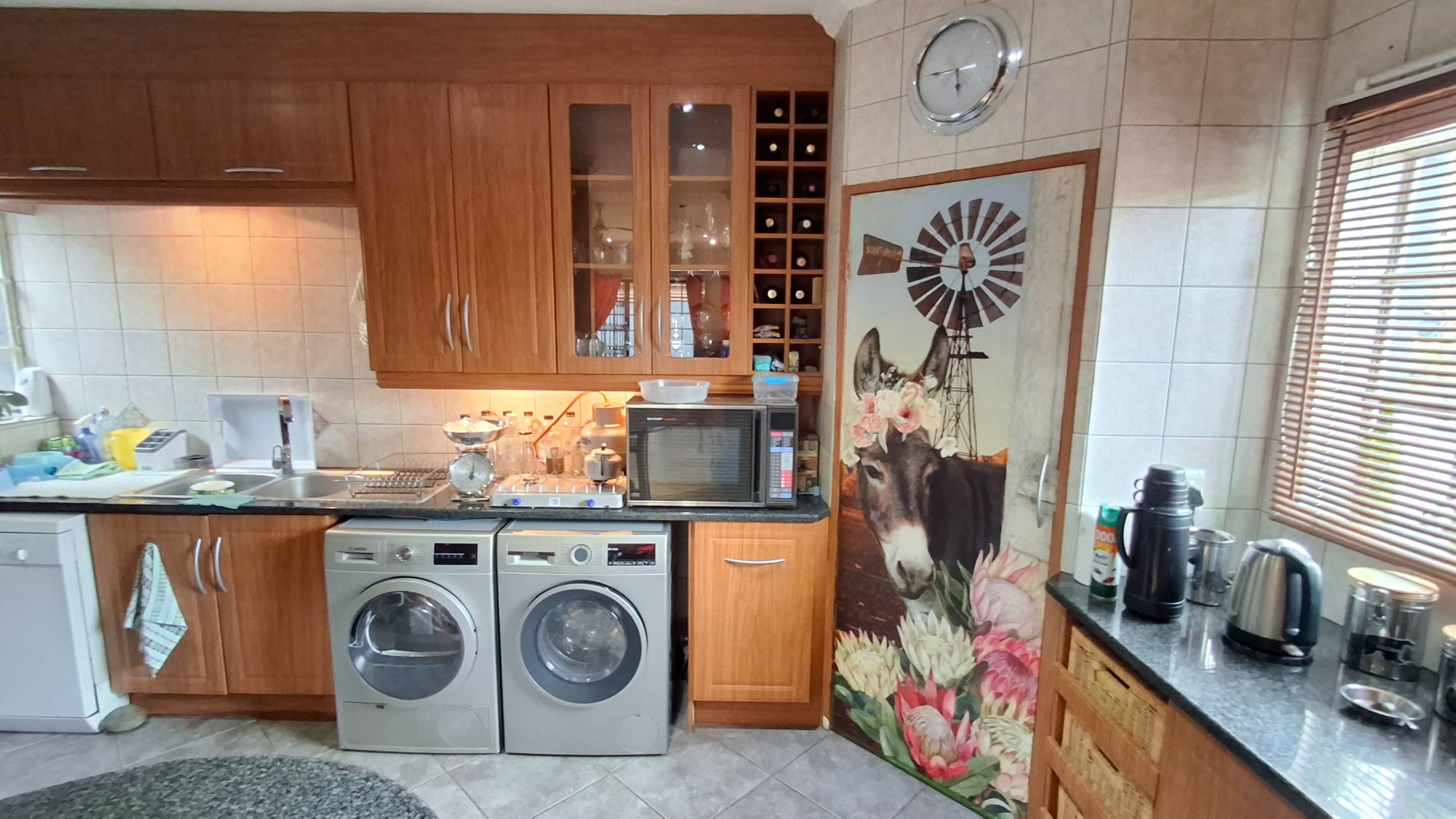 As you enter the expansive living areas, you'll be greeted by the seamless connection to a cozy patio, perfect for alfresco dining and outdoor entertaining. The louvre deck roof provides the perfect shelter, while the built-in braai invites you to gather with friends and family for memorable gatherings.