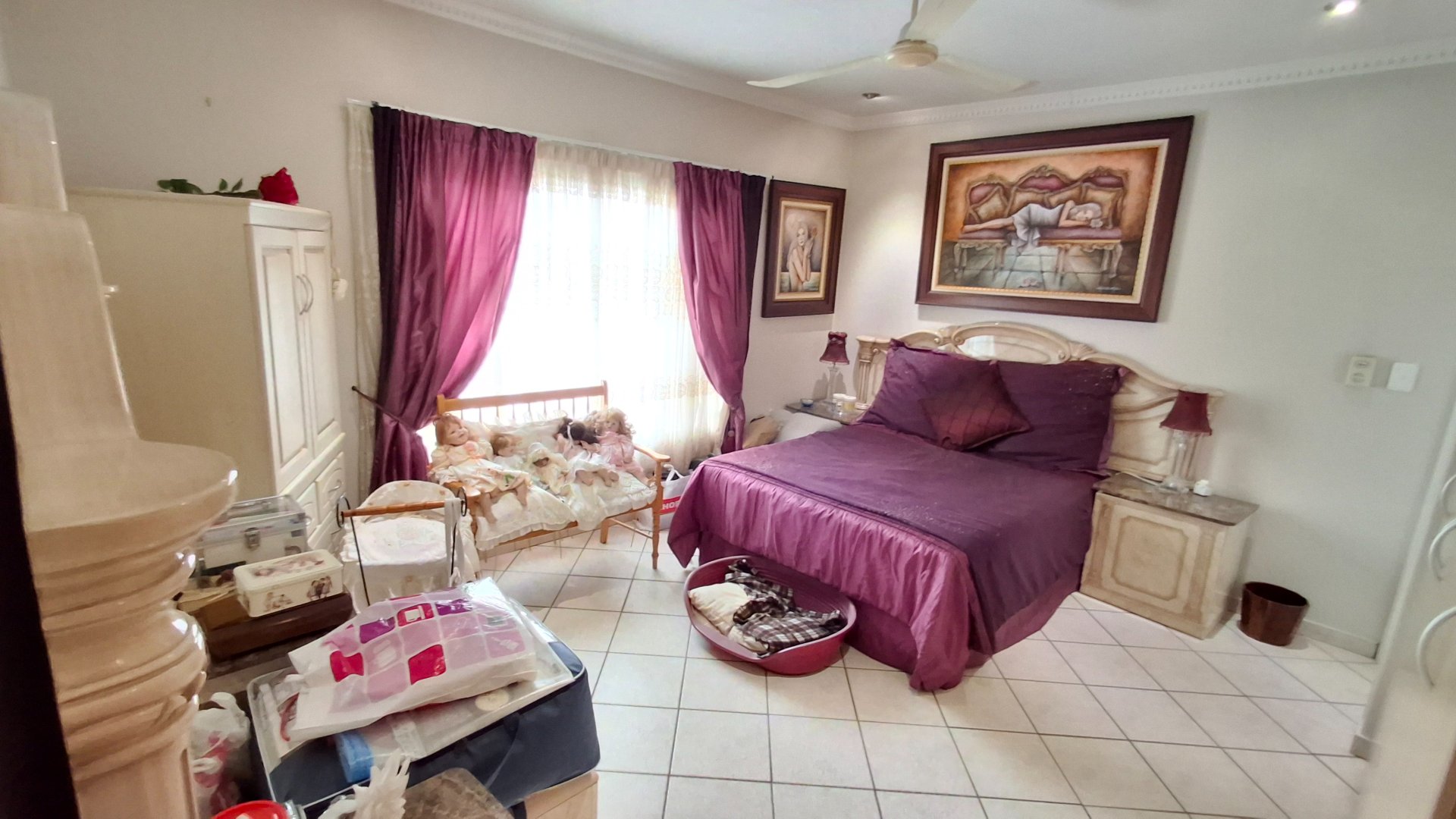 The three generously sized bedrooms offer ample space for family members, with the master bedroom boasting an en-suite bathroom featuring his-and-hers shower basins and toilet. Two bathrooms ensure that everyone has their own space.